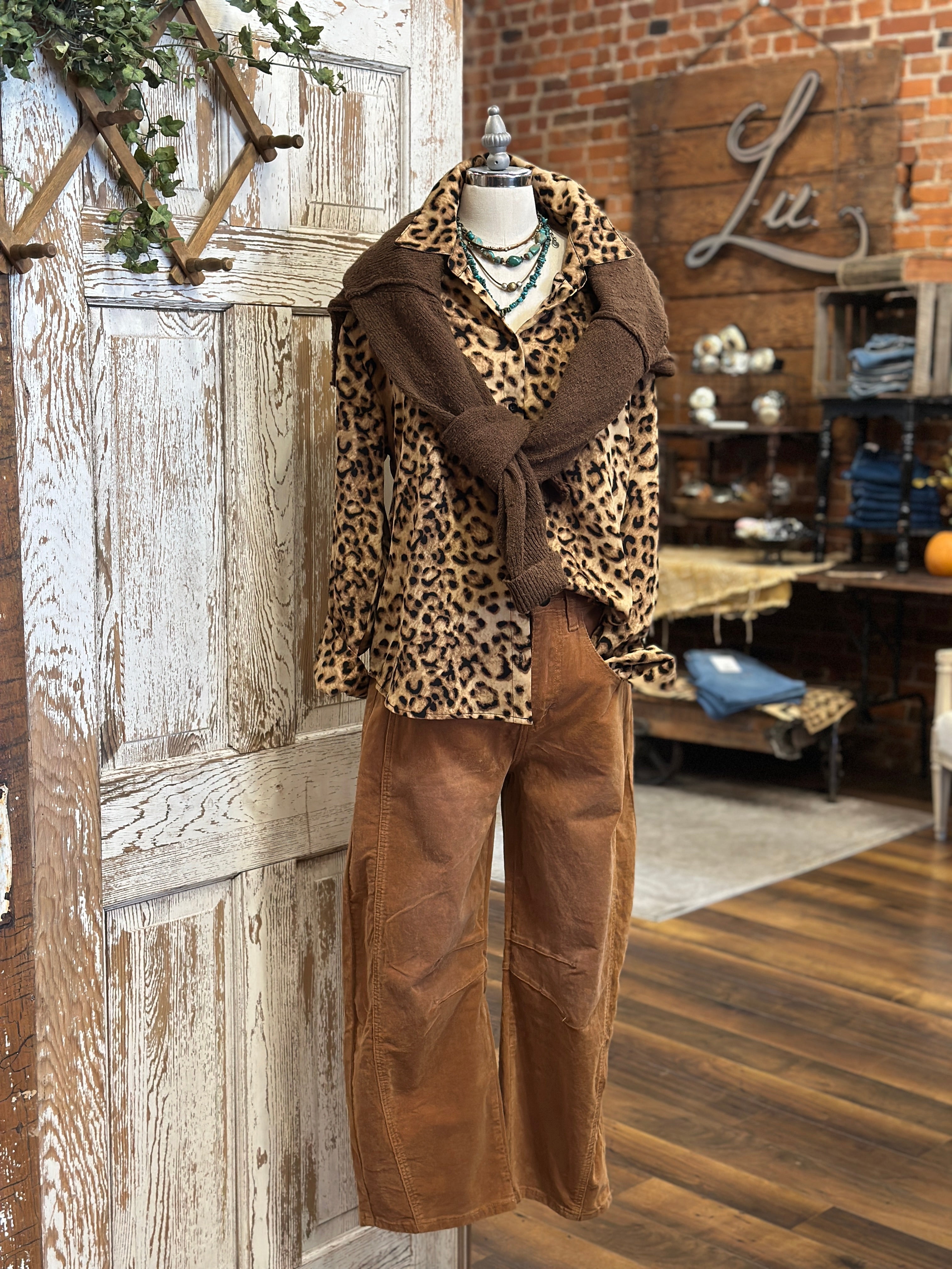Leopard & Corduroy Mixed Media Shacket: Small-XL