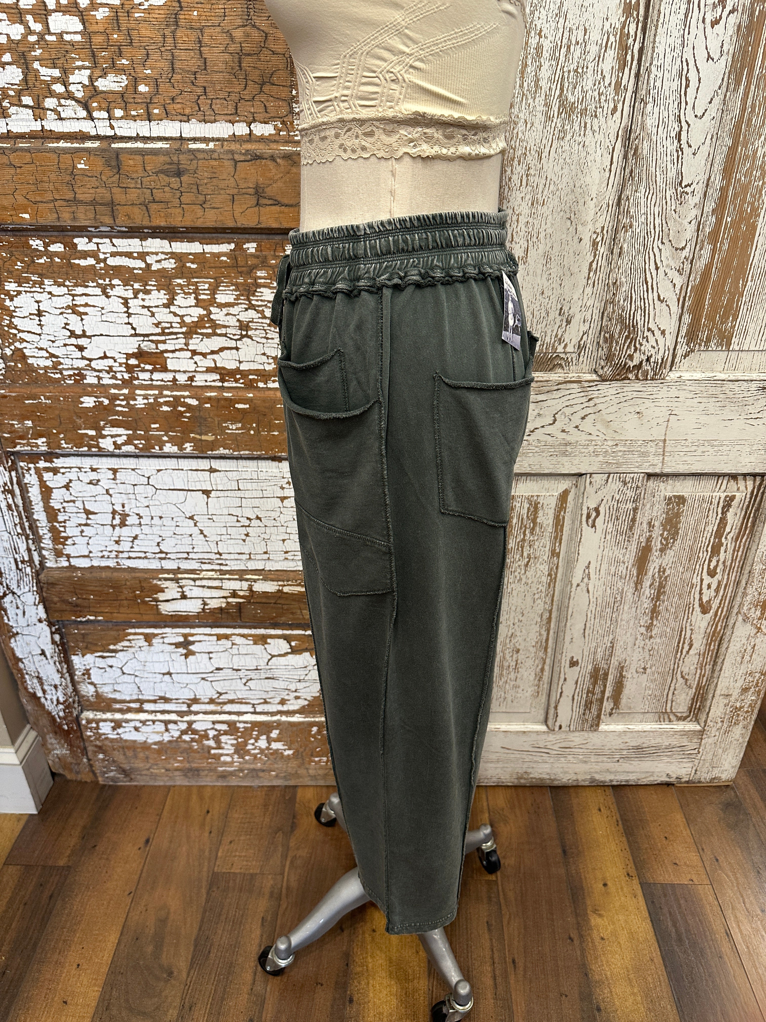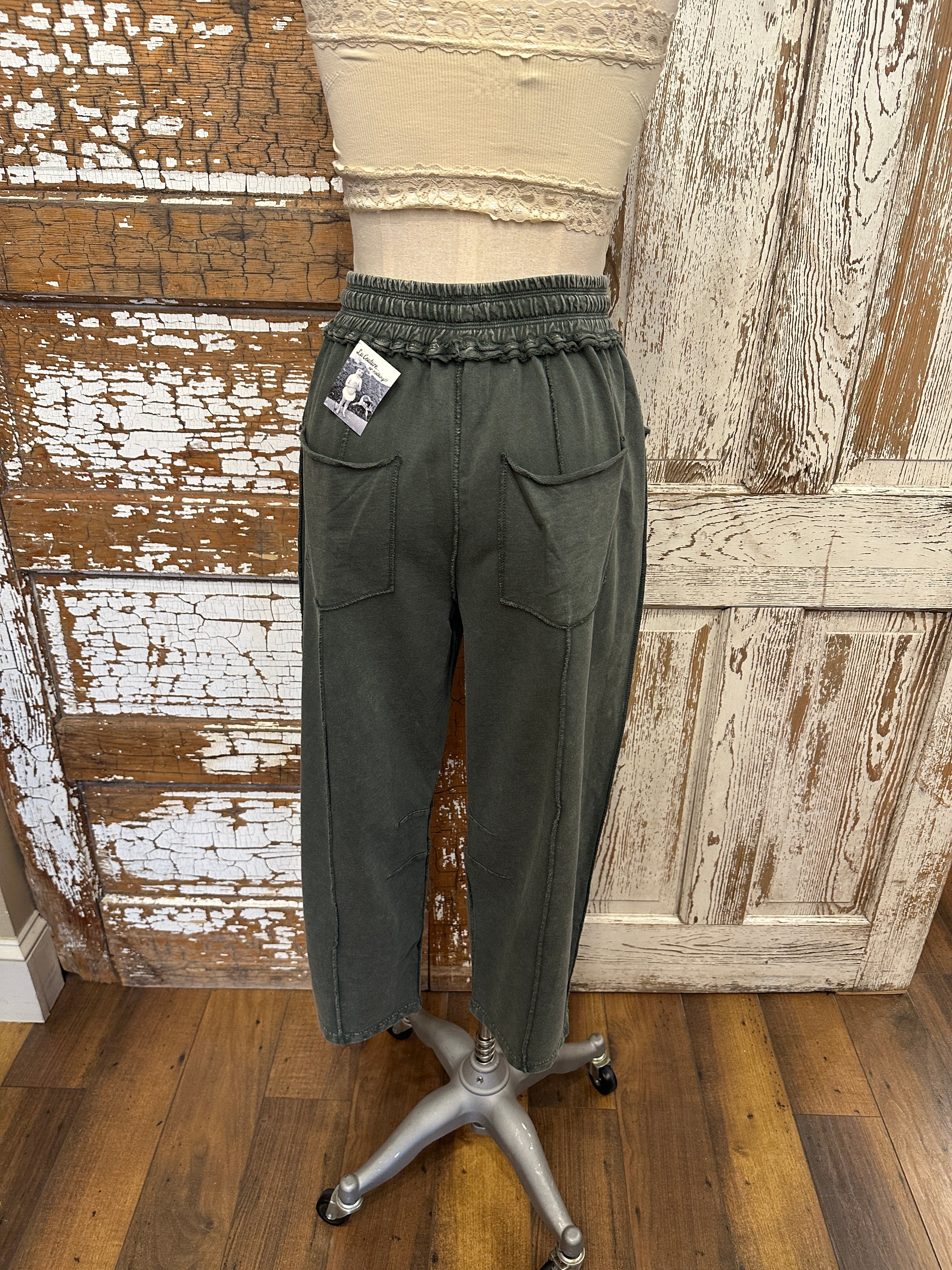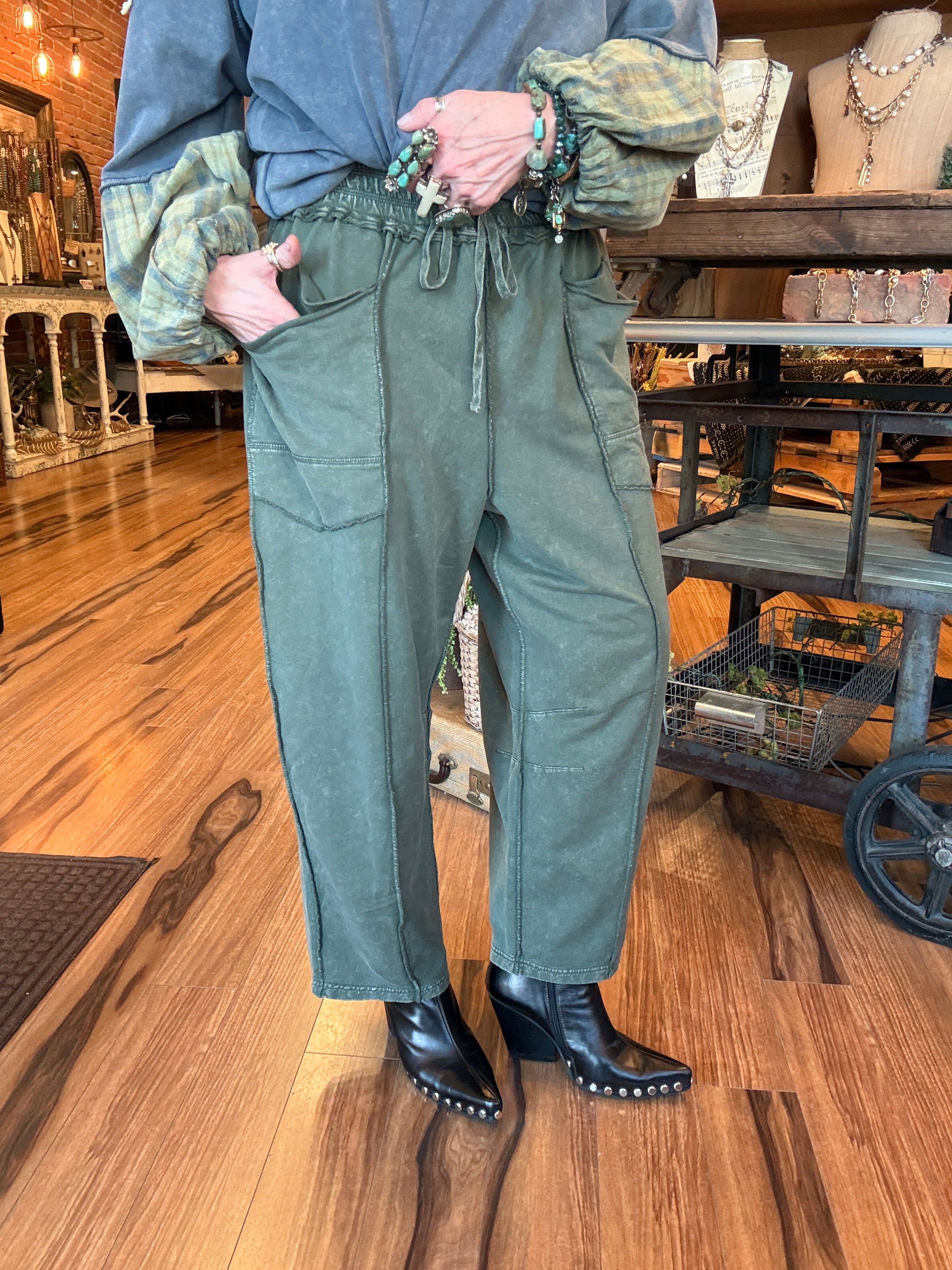 Pine Green Double Pocket Lu Leisure Barrel Pants