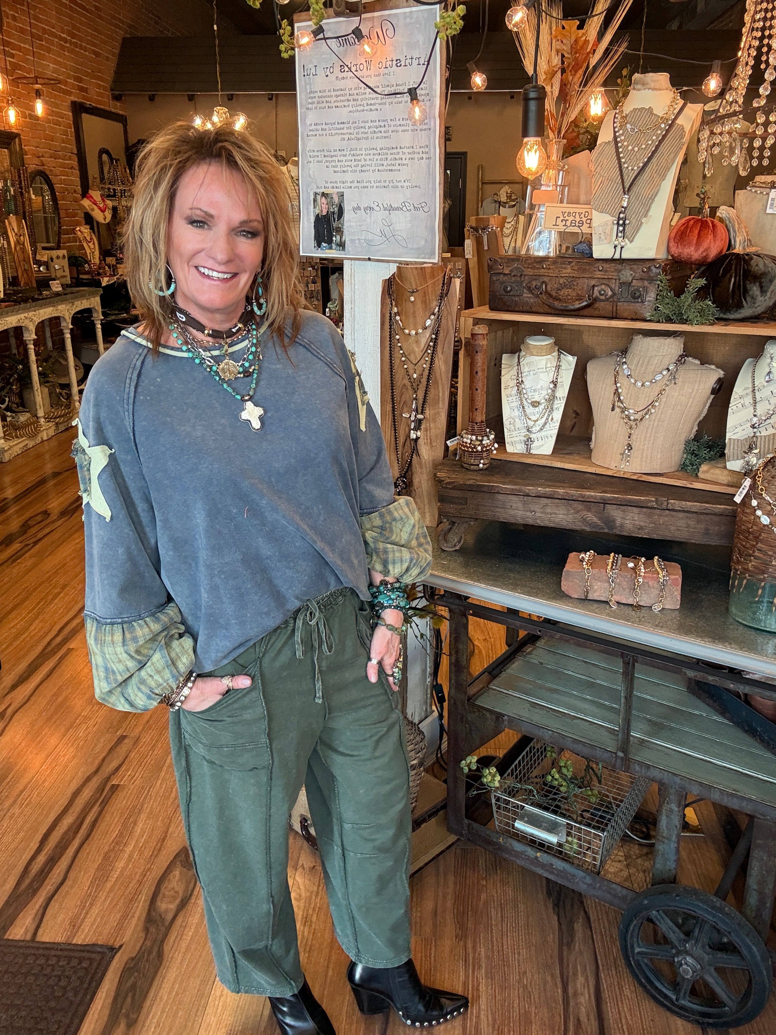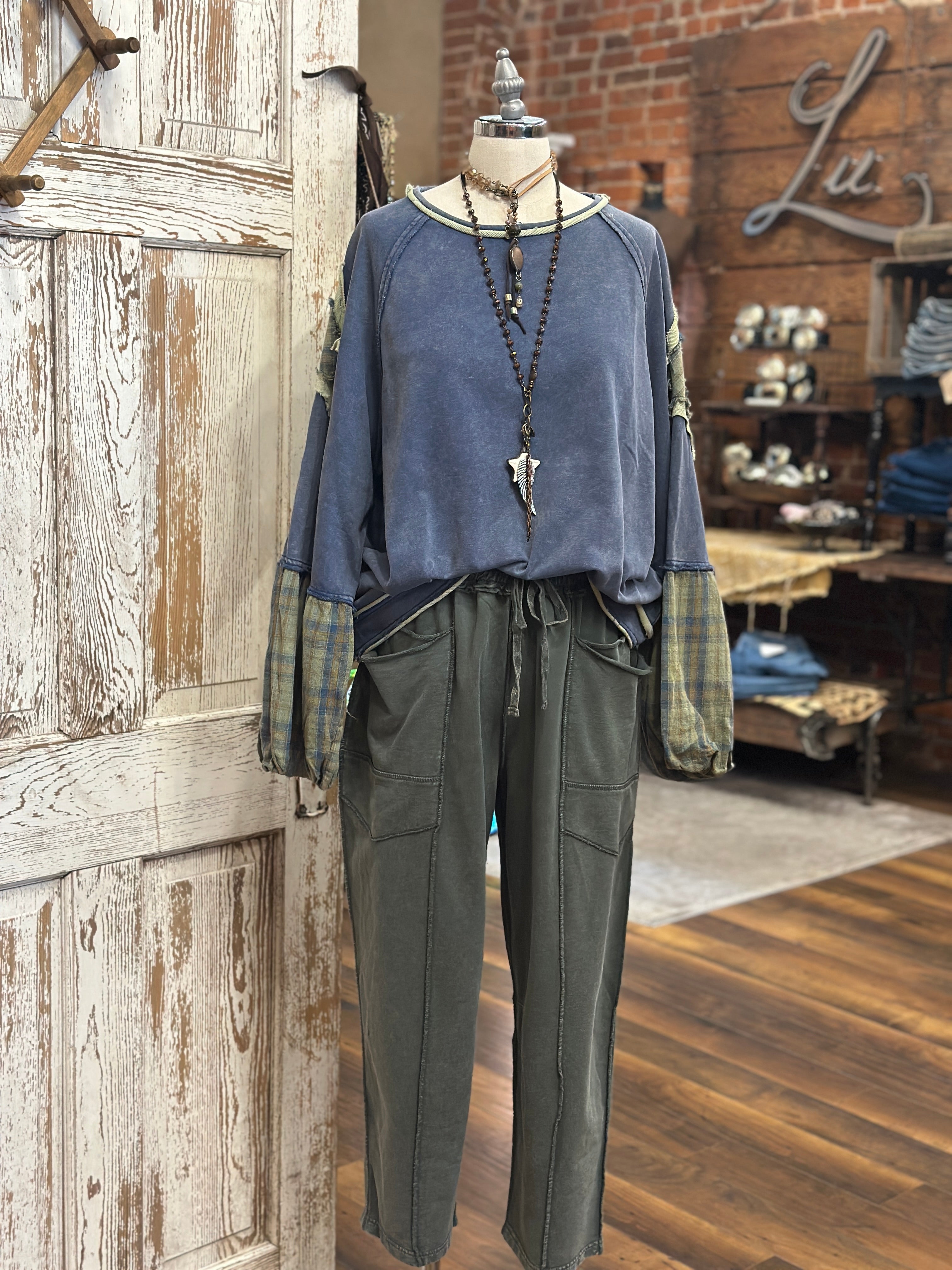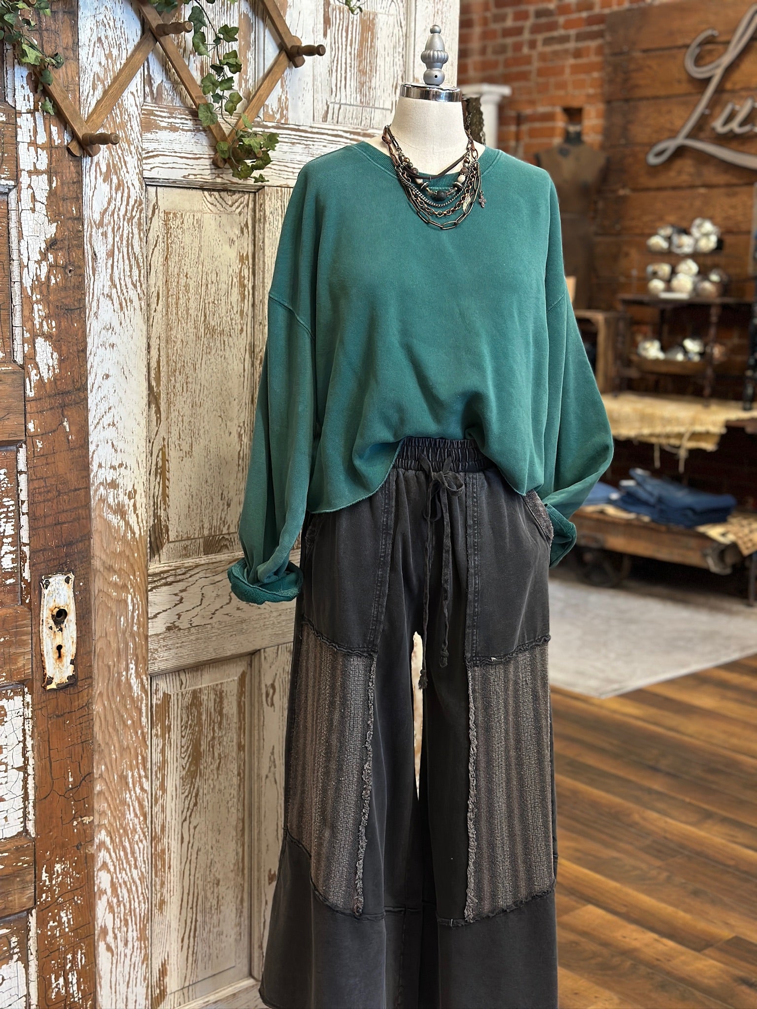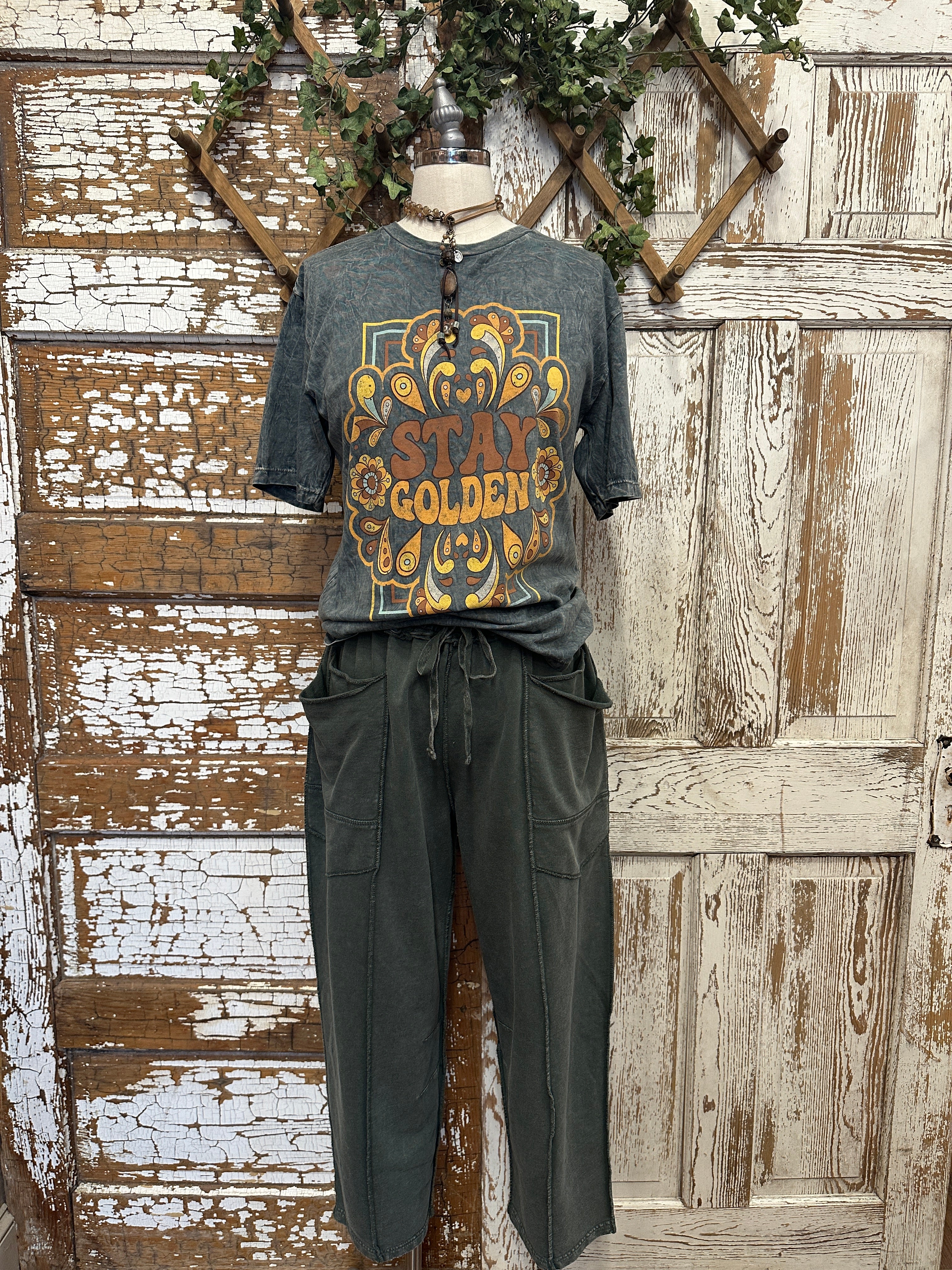 Pine Green Double Pocket Lu Leisure Barrel Pants