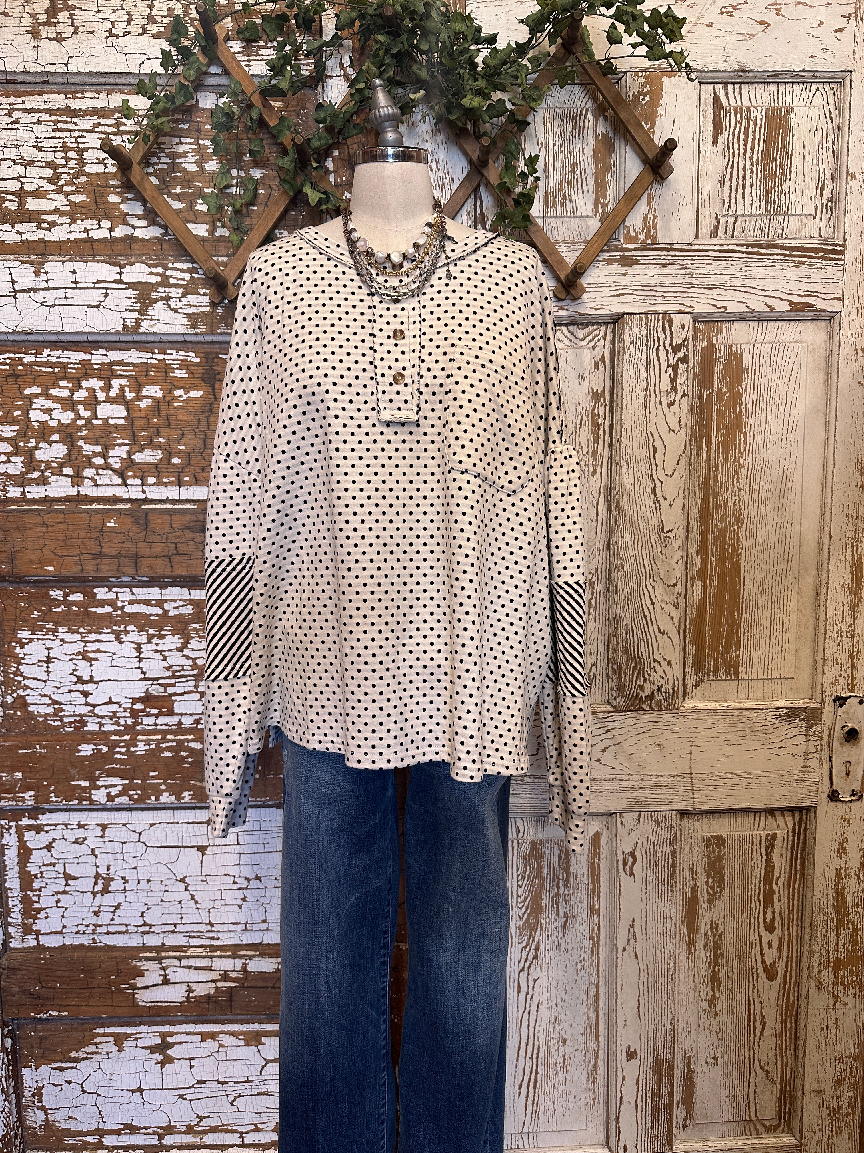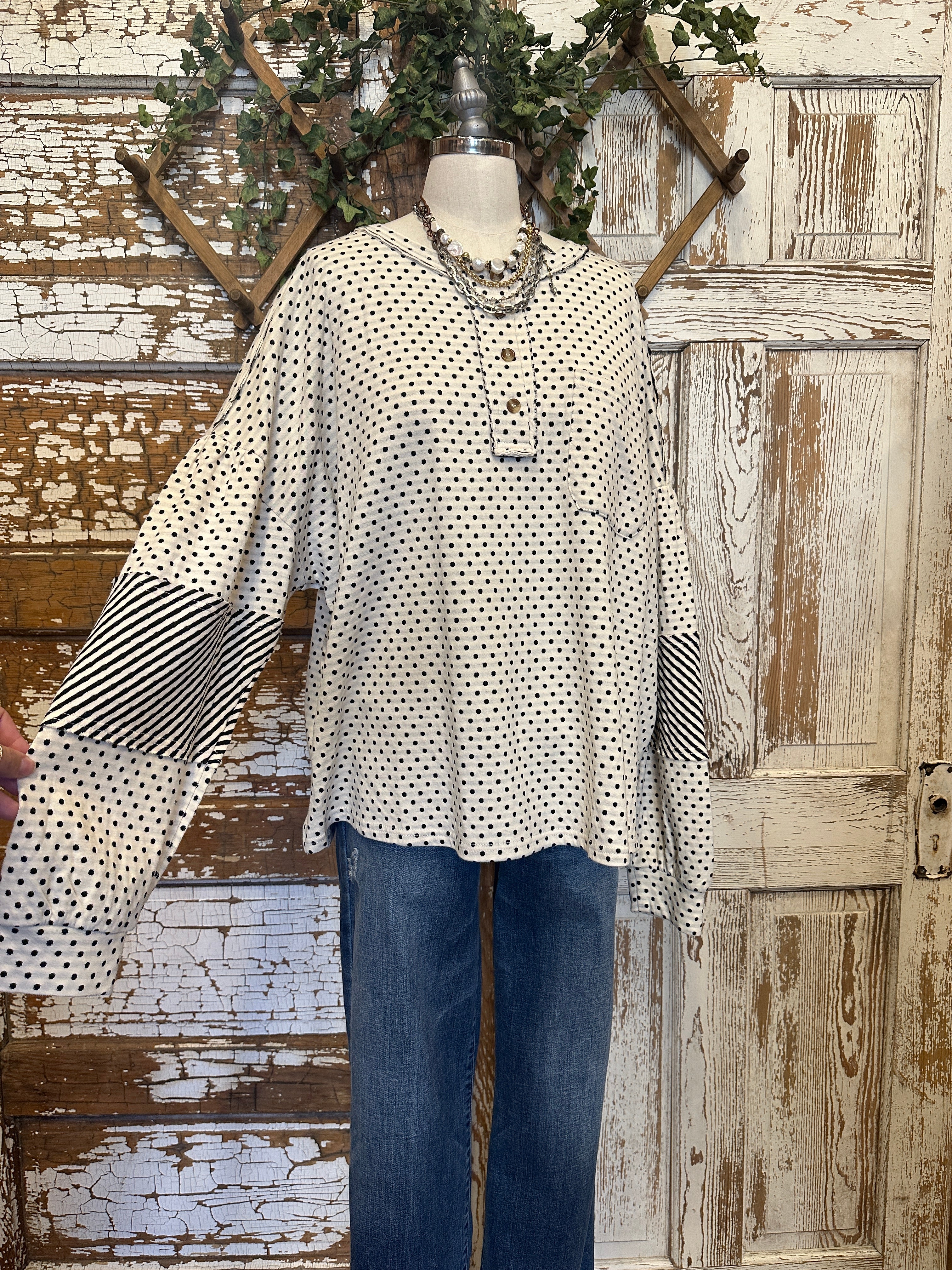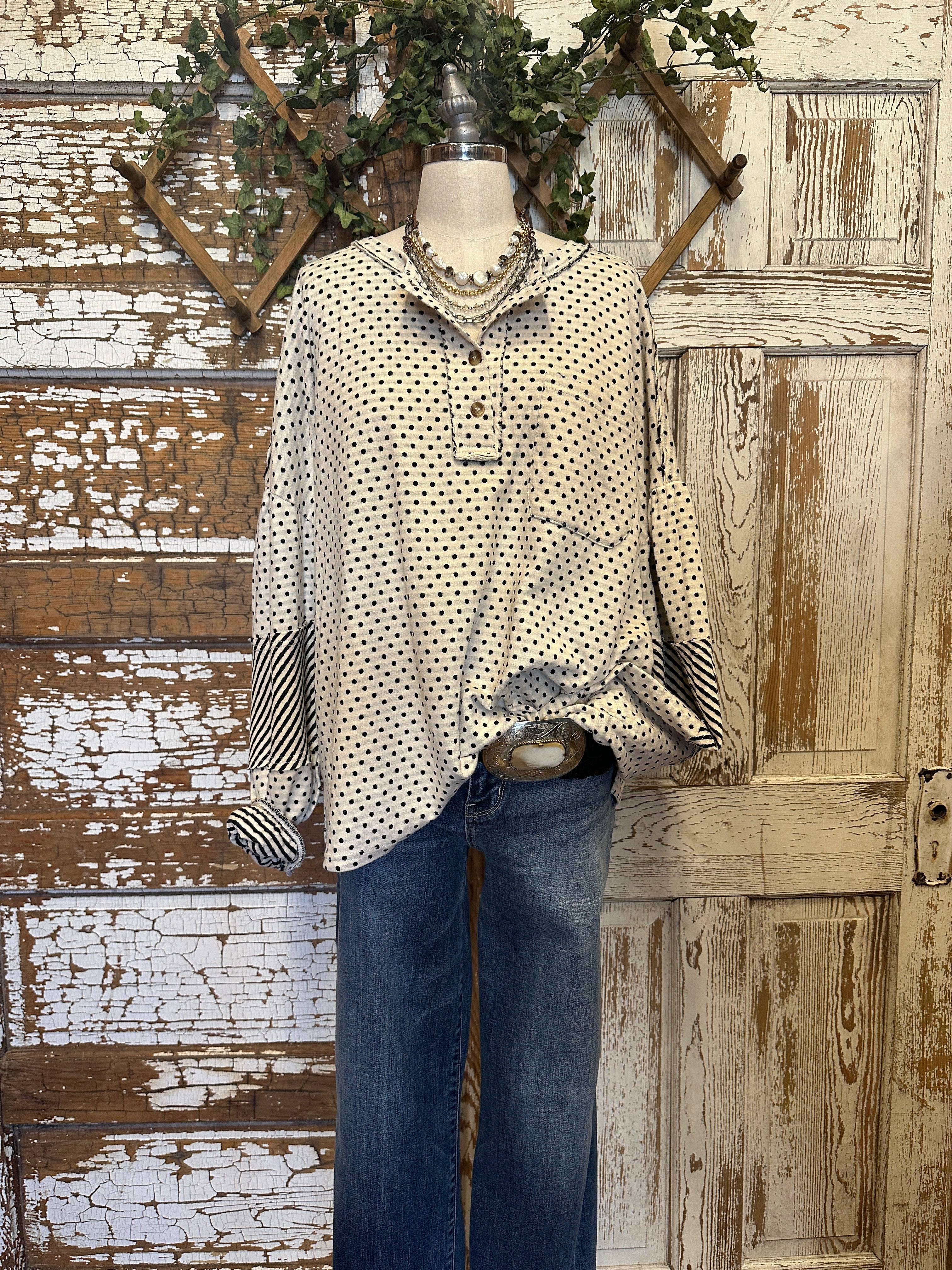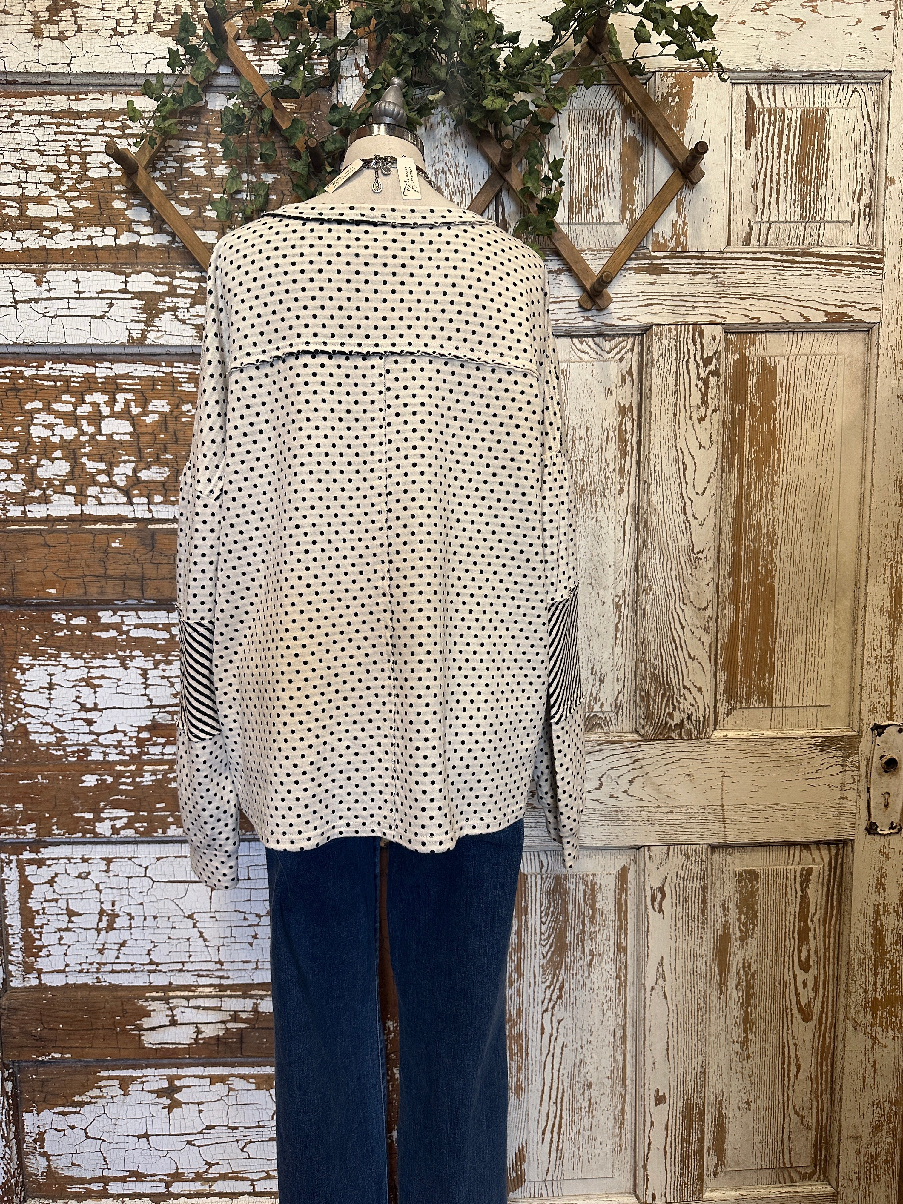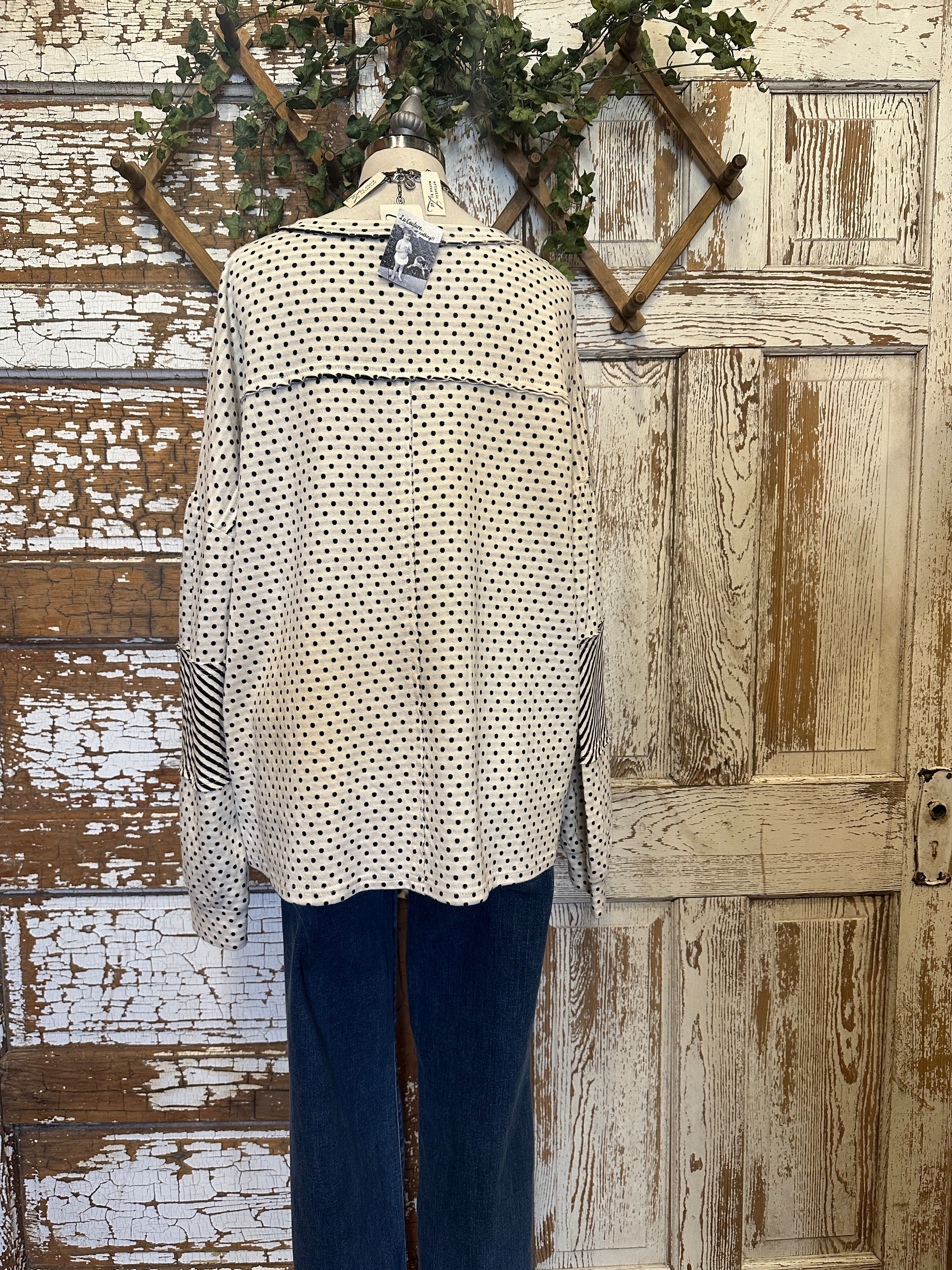 Polka Dot & Stripe Mixed Media Relaxed Top