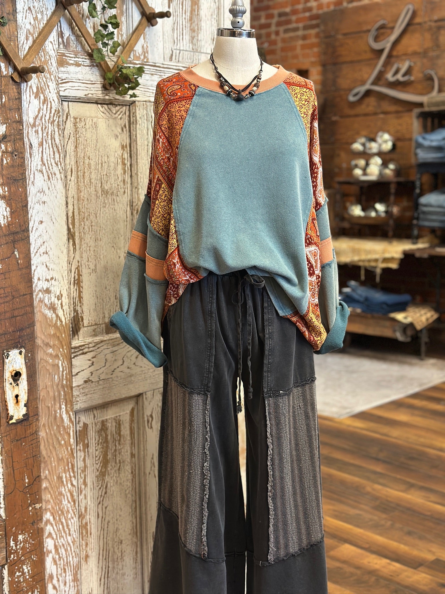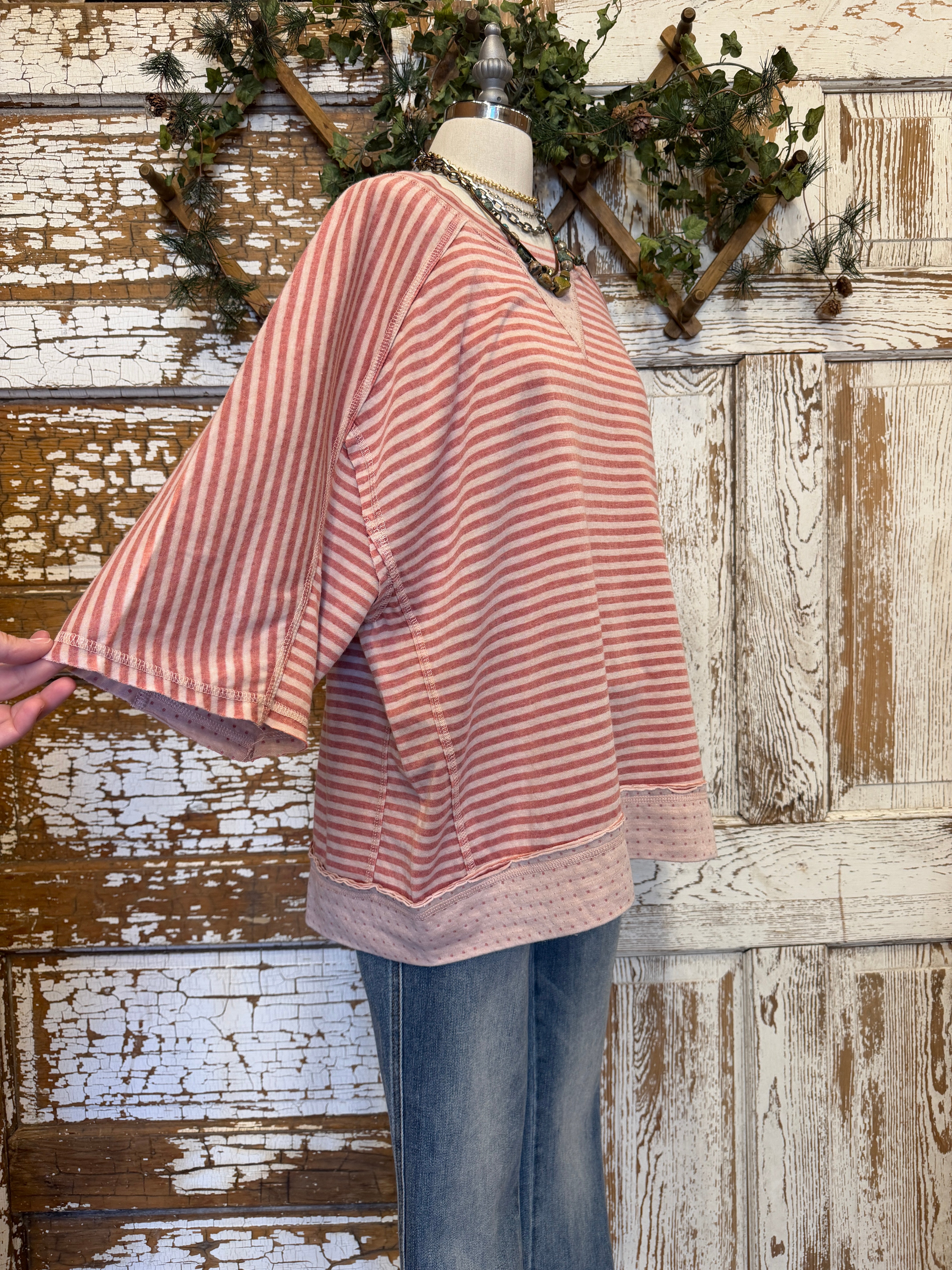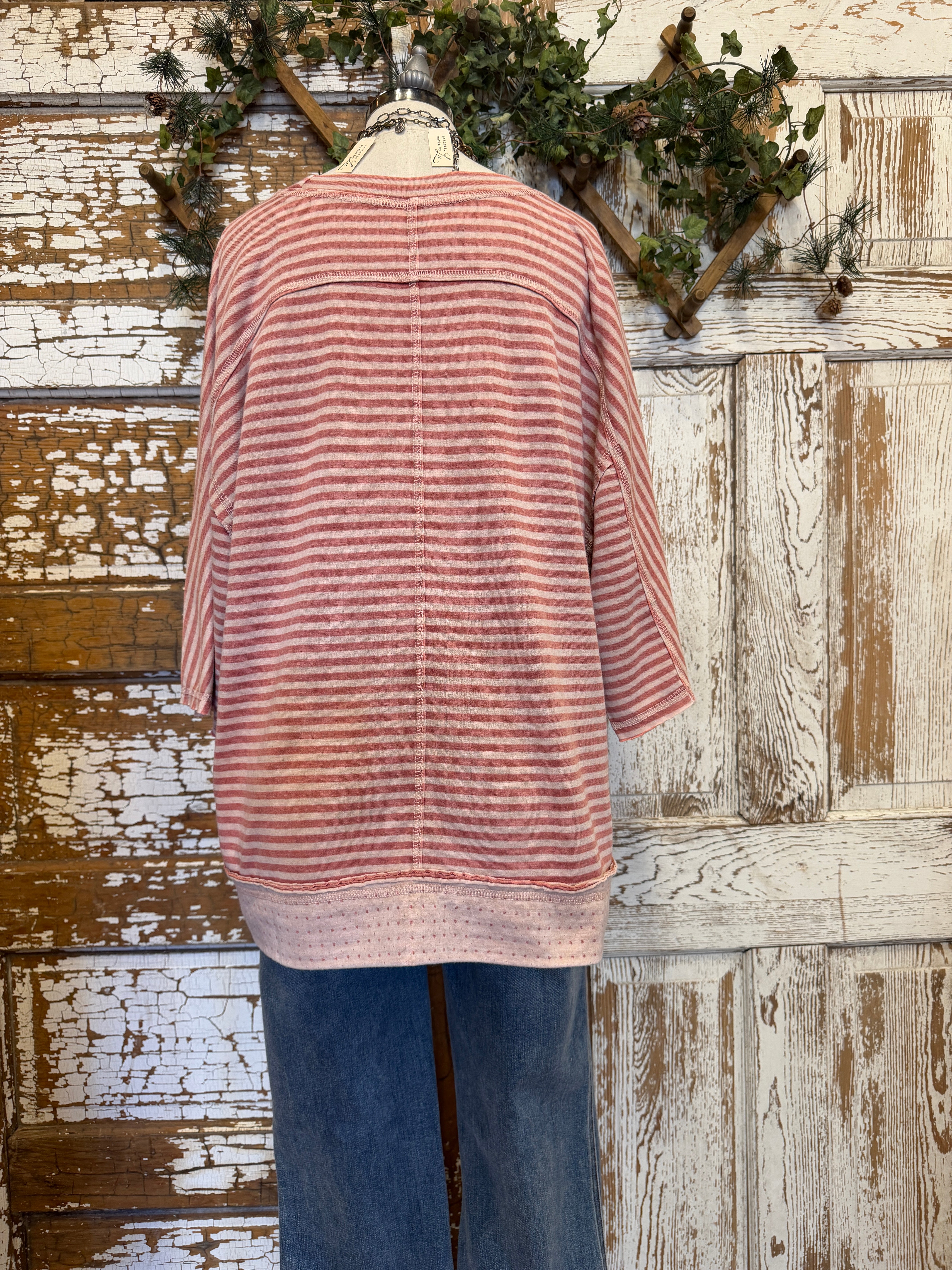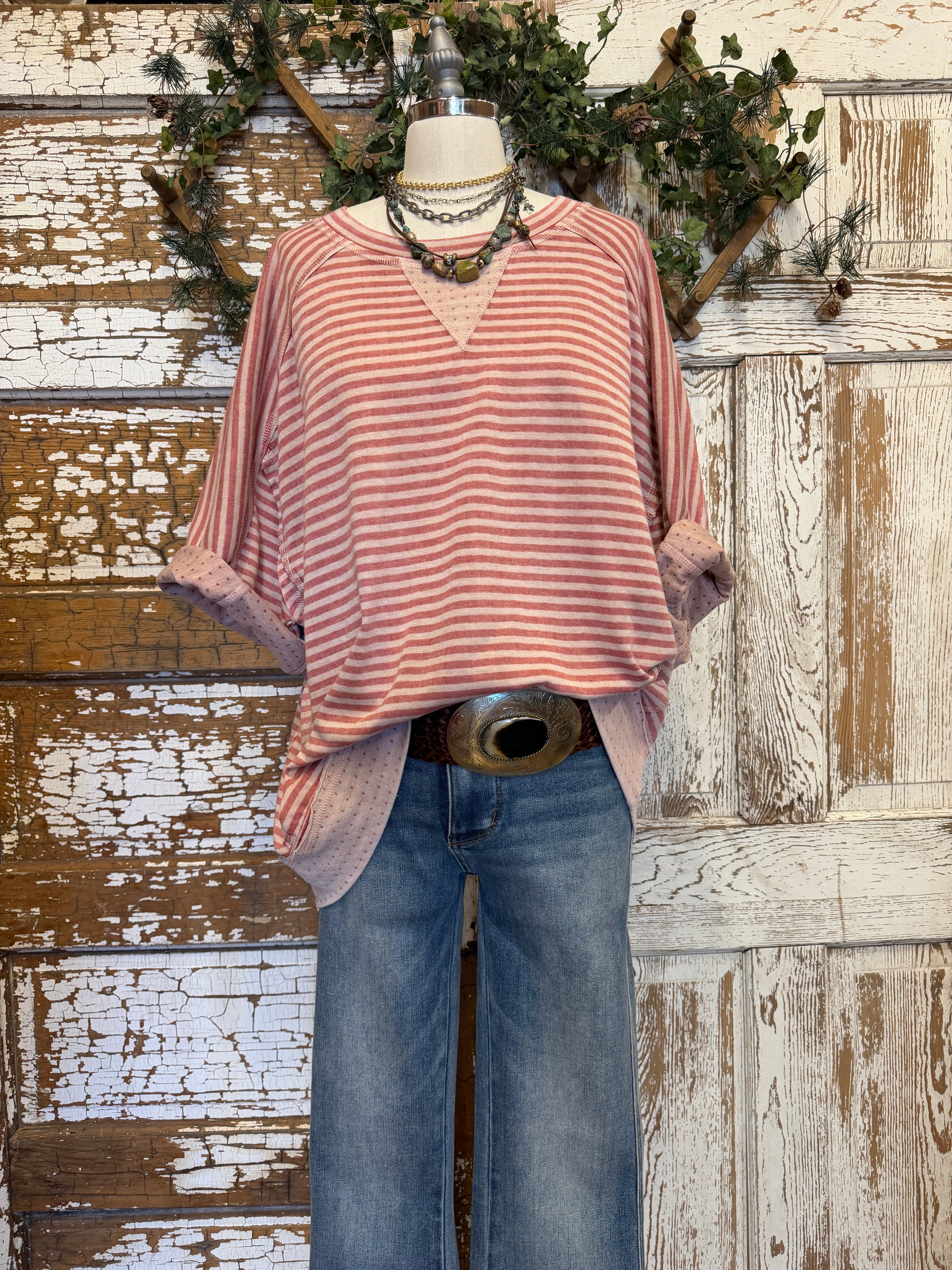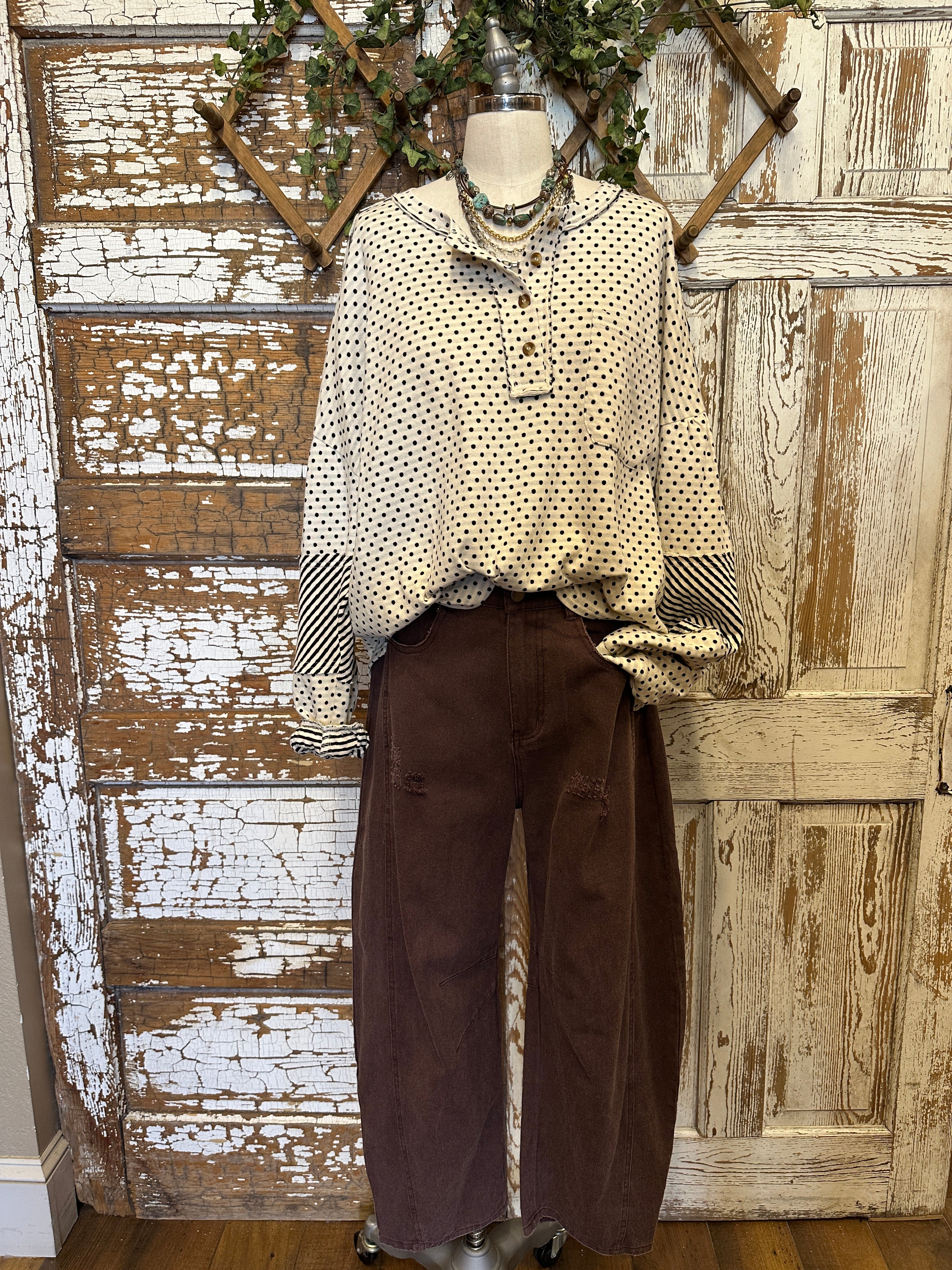 Polka Dot & Stripe Mixed Media Relaxed Top