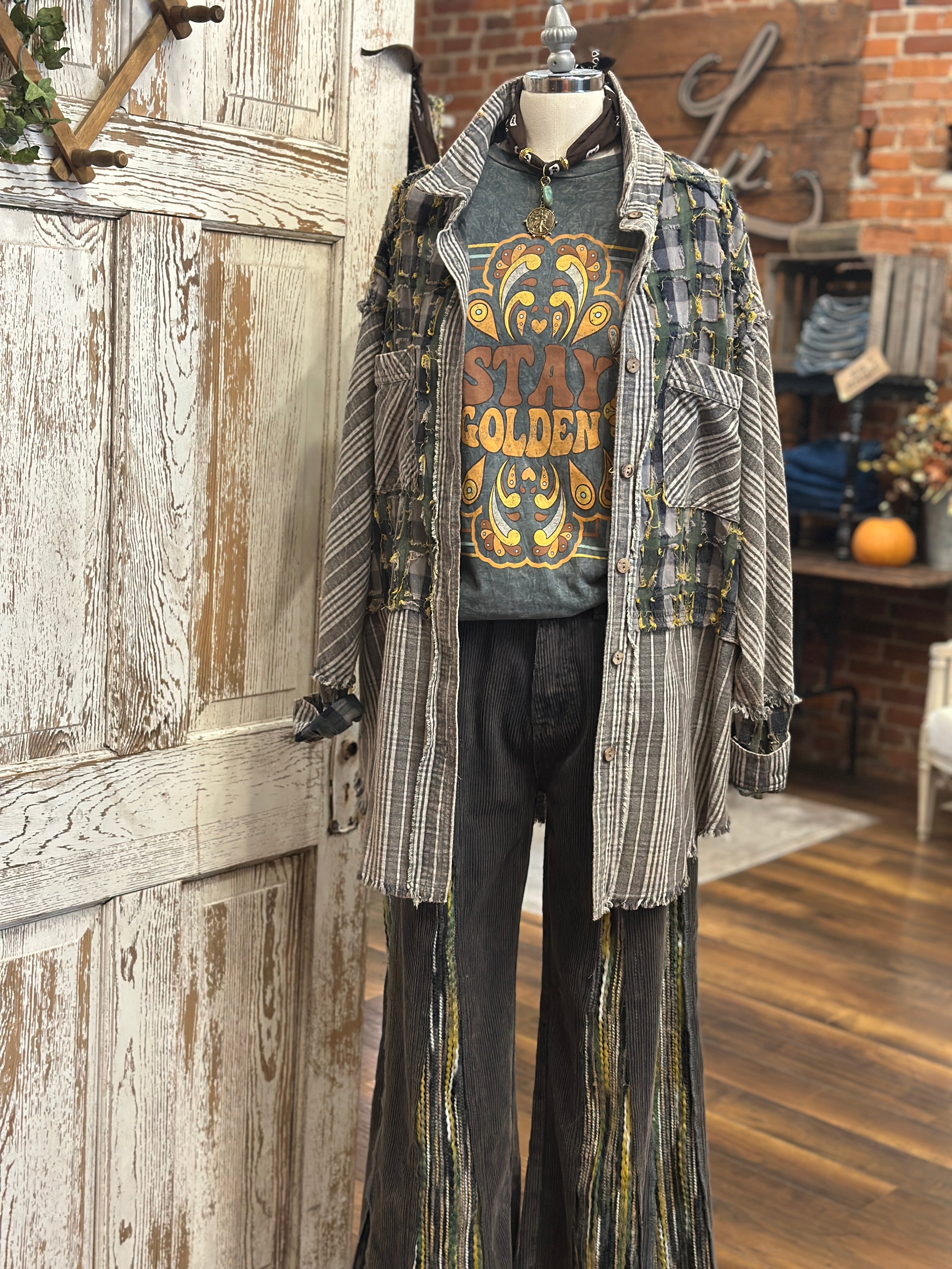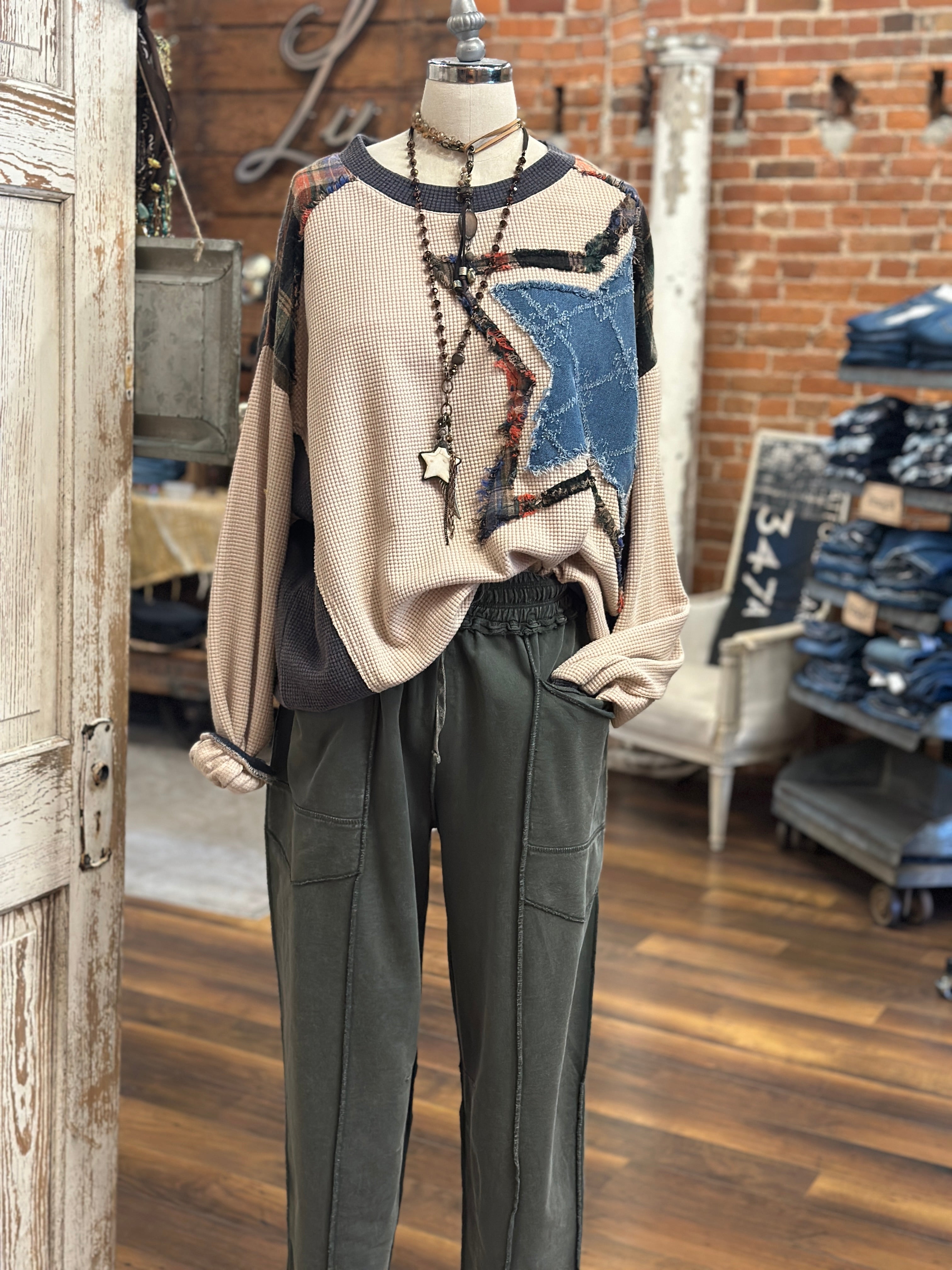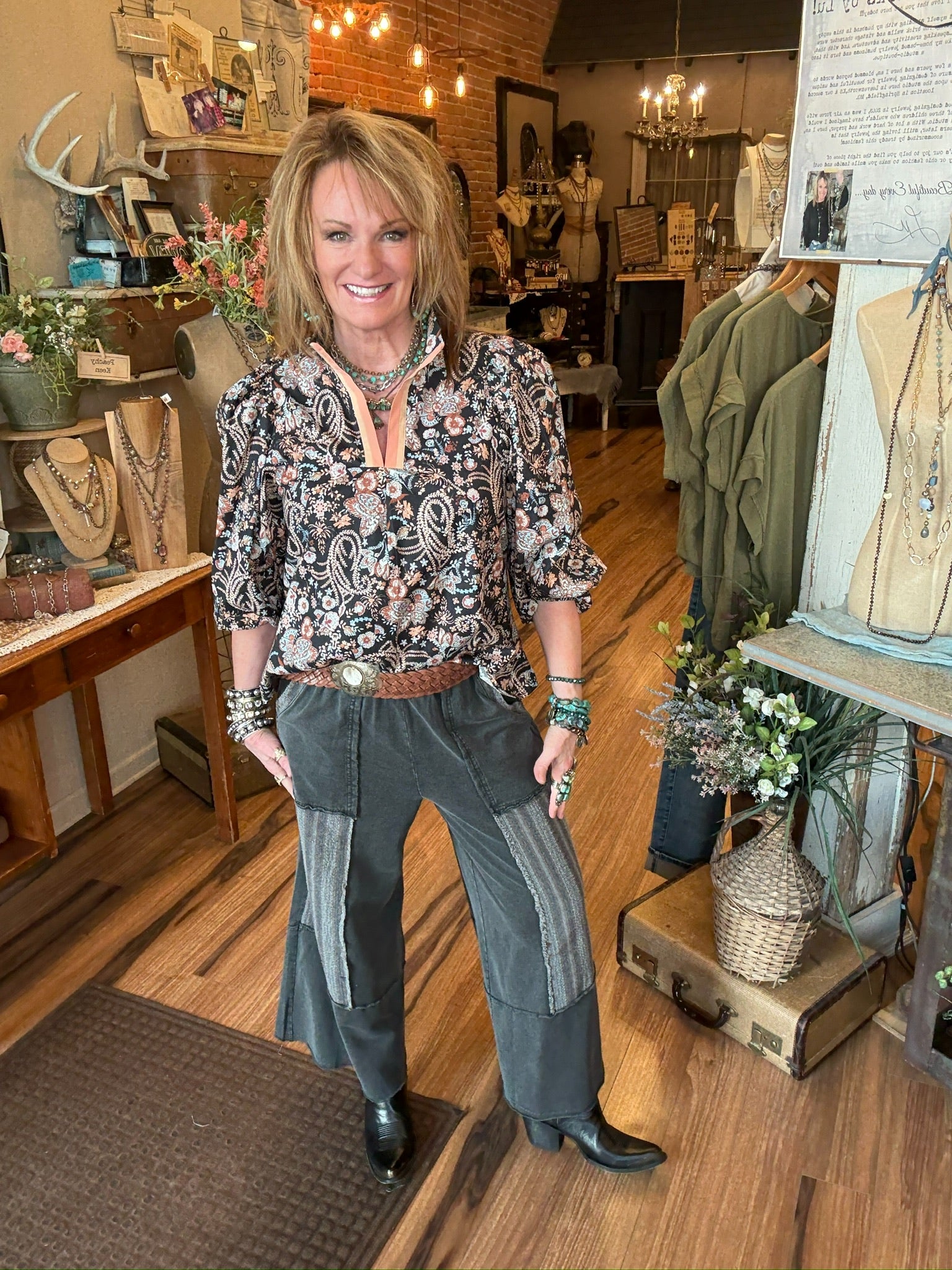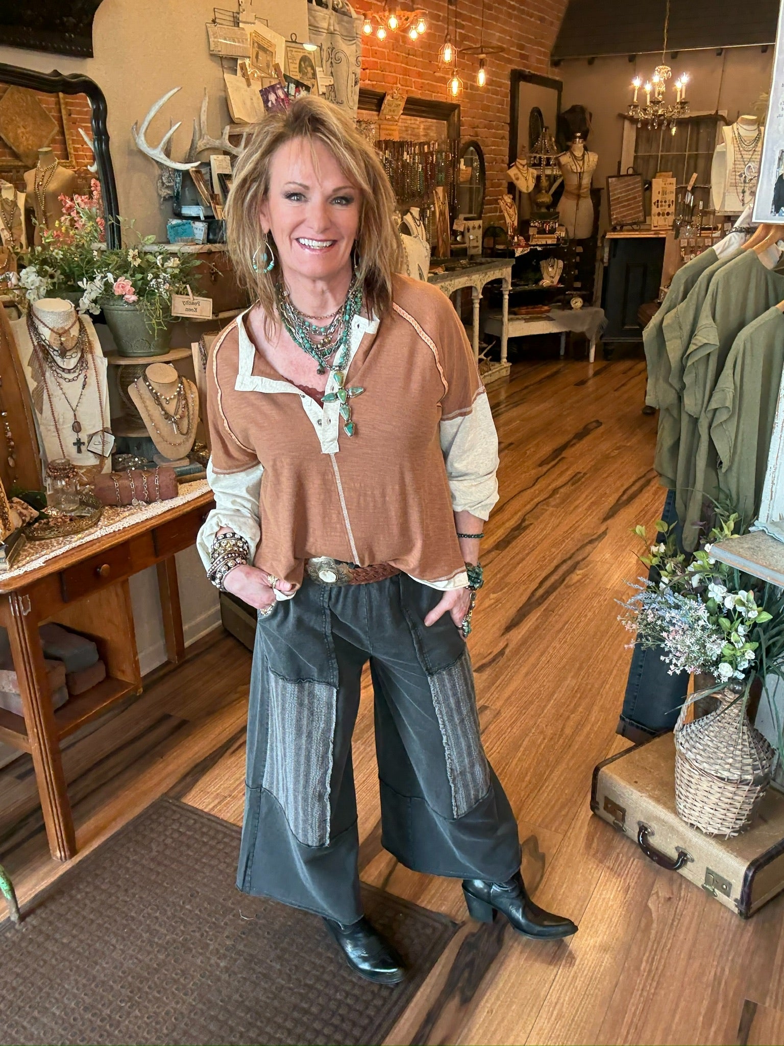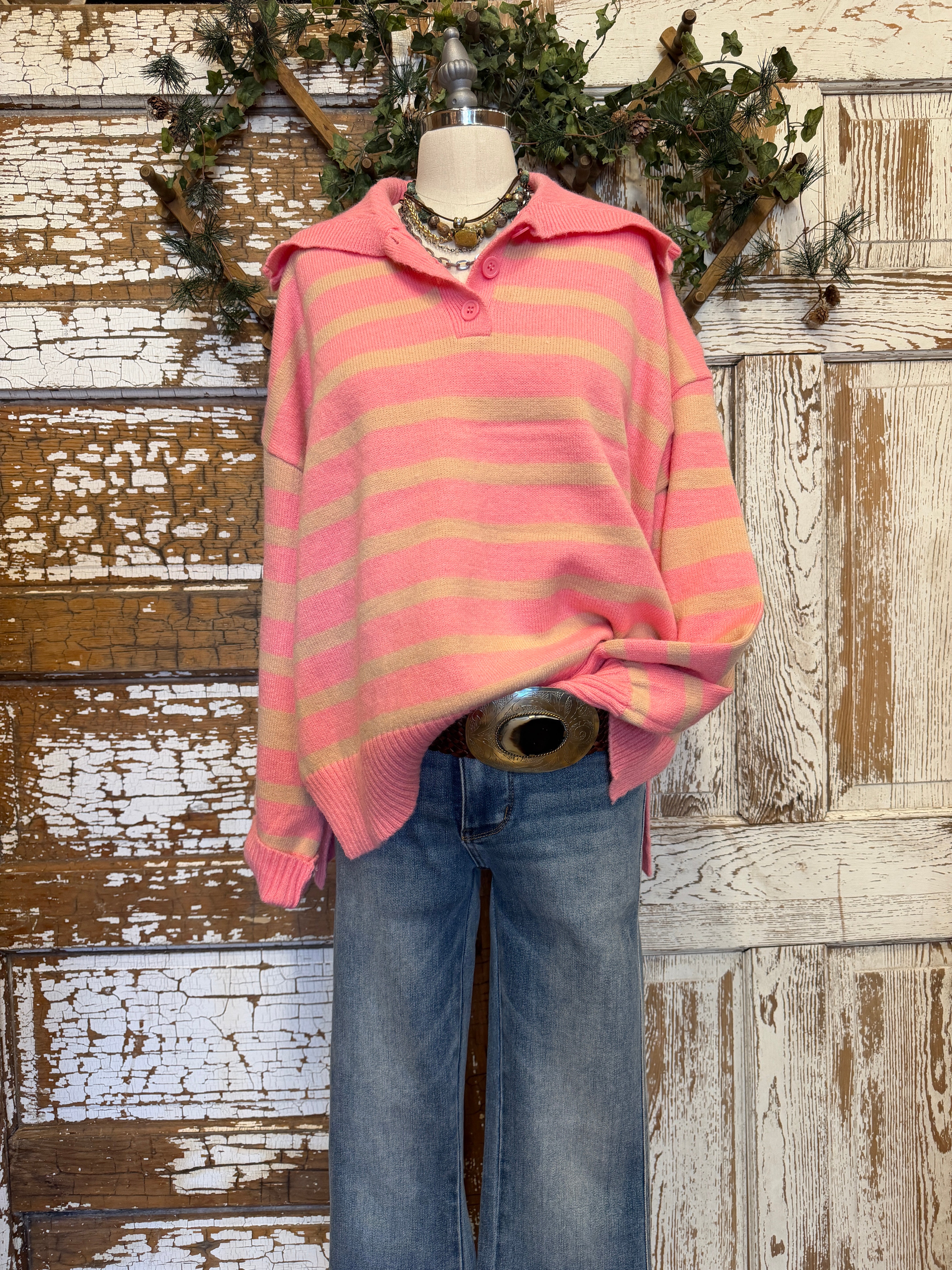 Polka Dot & Stripe Mixed Media Relaxed Top
