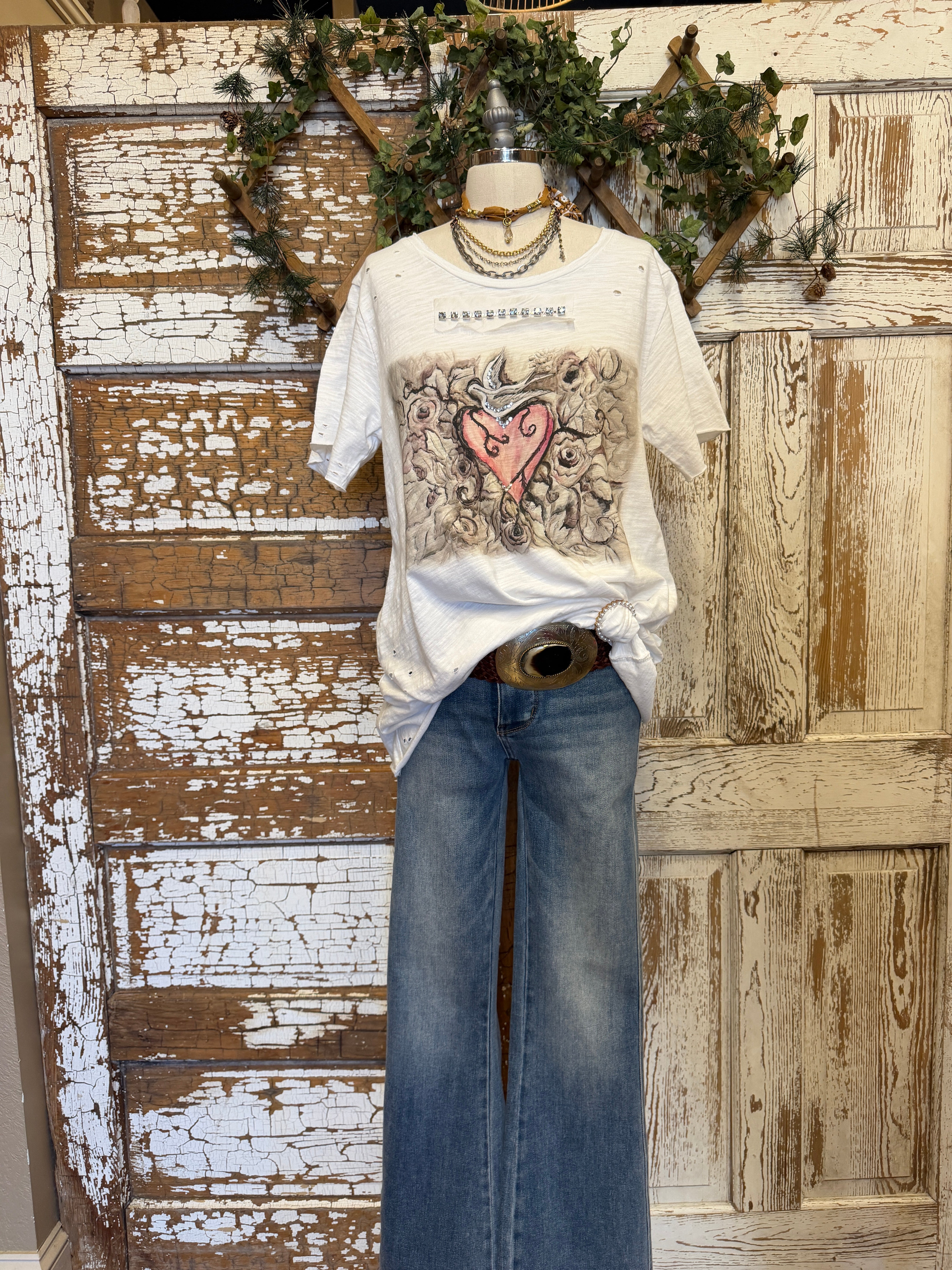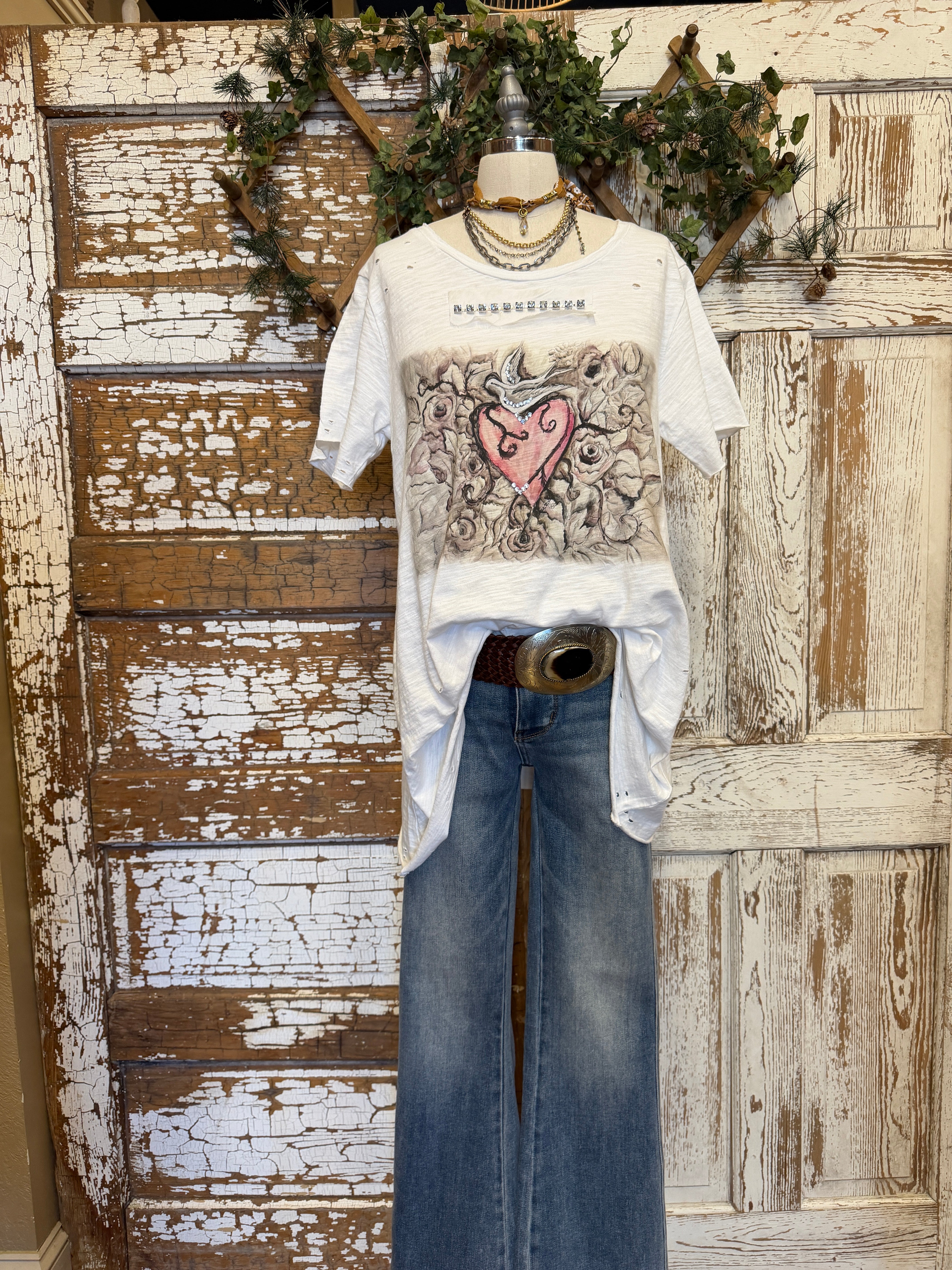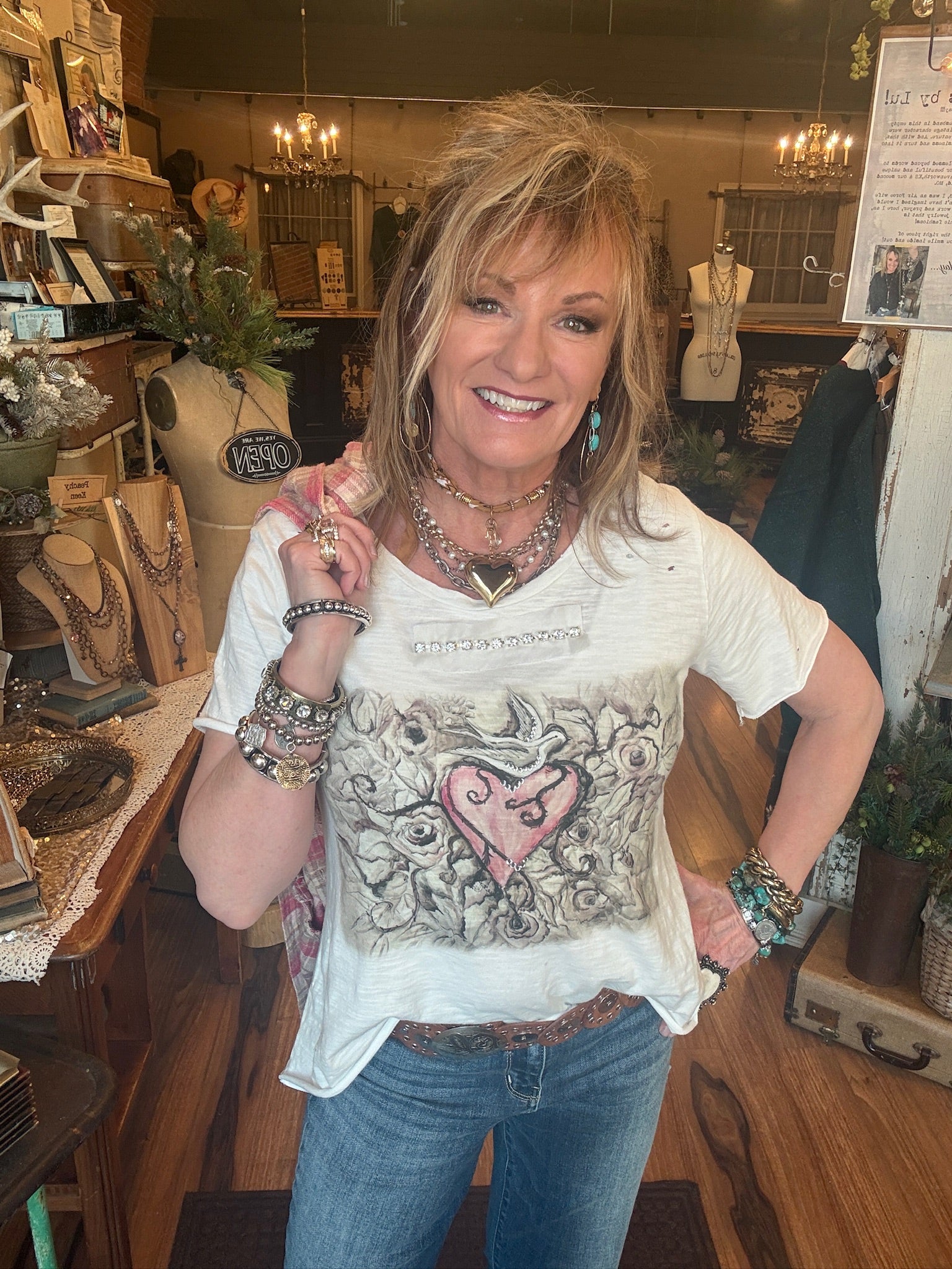 Rare Bird Heart Rhinestone Graphic T-Shirt