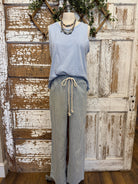 This Washed Sky Blue Tank features a high neck and a bra-friendly design, with a hemline that Lu personally cropped for a playful, shorter style.
