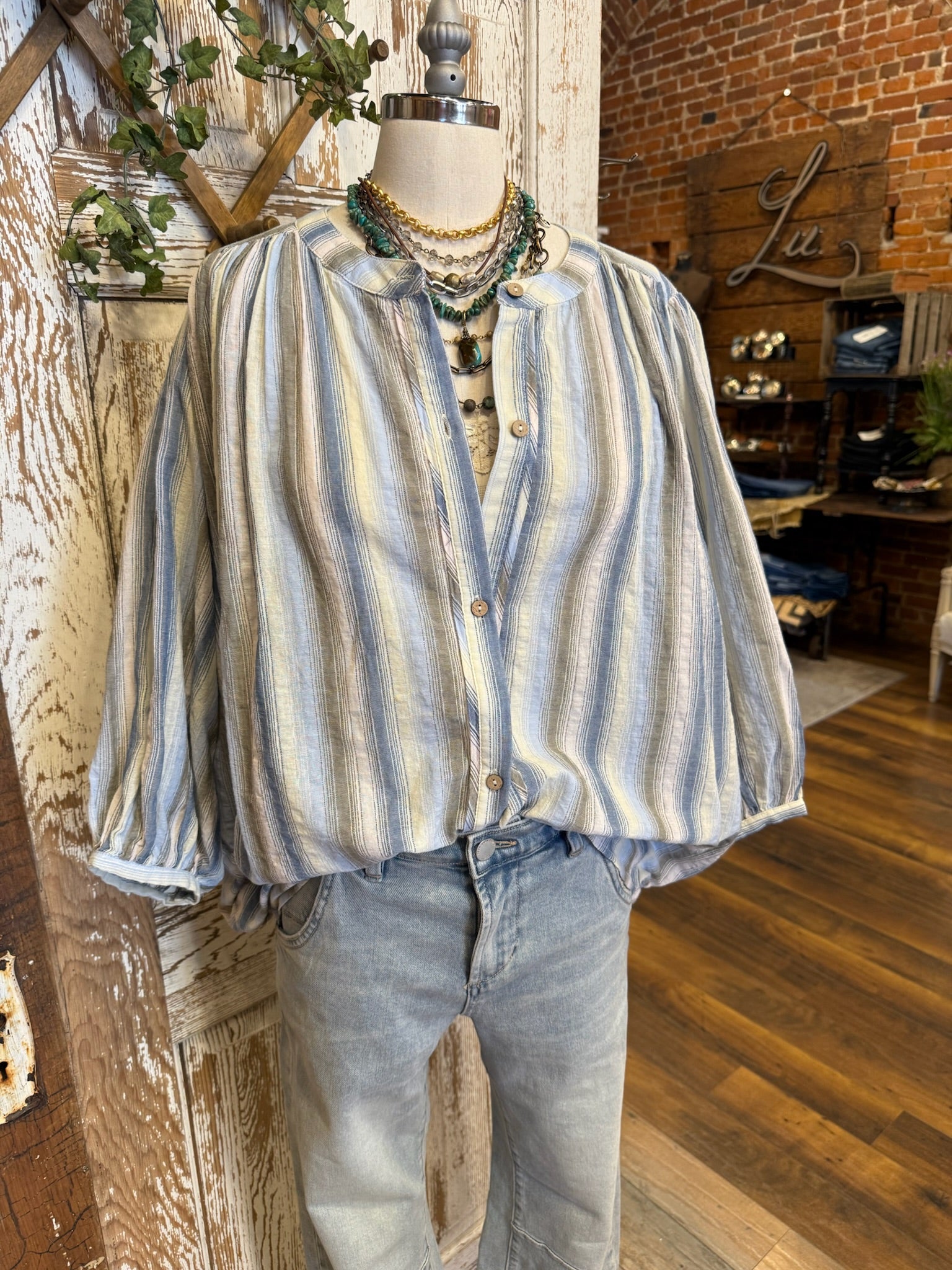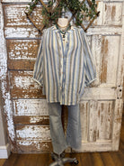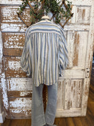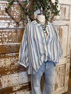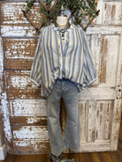 Blue Stripe Button Front Boho Top