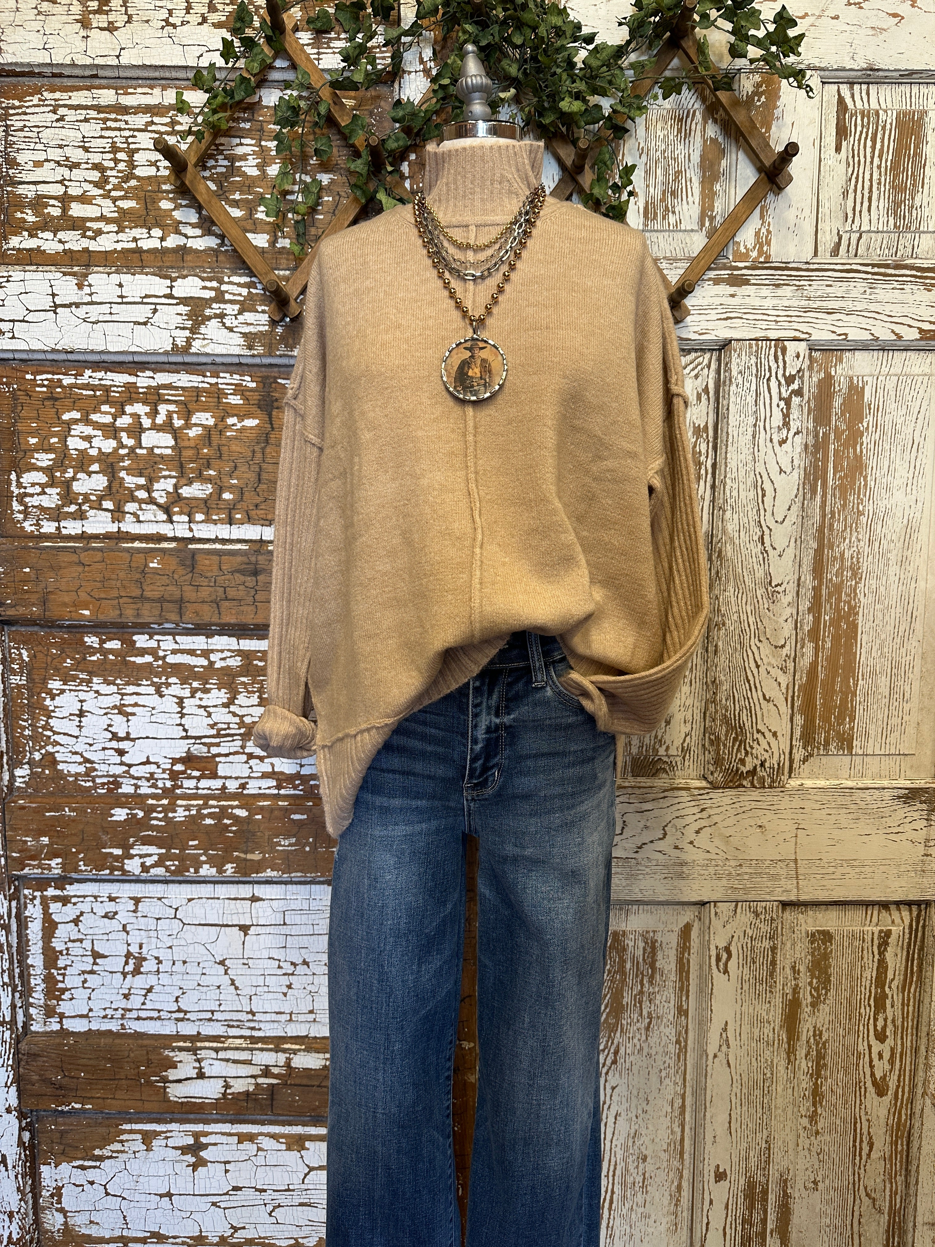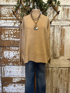 Wrap yourself in unparalleled comfort and style with our Women's Cozy Camel Oversized Knit Sweater/tunic. This luxurious pullover is designed for those who appreciate relaxed elegance, offering a warm and inviting feel perfect for cooler days. Its versatile camel hue makes it an indispensable staple for any wardrobe, easily pairing with everything from casual jeans to more dressed-up skirts. Embrace the season in comfort and sophistication.