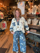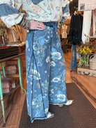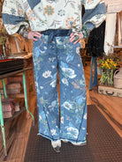 Bring comfort and creativity together with these floral denim wide-leg pants...the perfect blend of casual charm and artistic flair! Designed for the woman who loves to look effortlessly stylish, these lightweight denim bottoms feature a dreamy floral print and a relaxed, flowy fit that moves with you. Whether you’re headed to brunch, strolling through the market, or lounging in style, these pants are made to make you feel confident and beautiful.