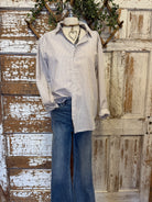 This long-sleeve woven shirt features a classic button front and a chic collar, ideal for elevating any casual ensemble.