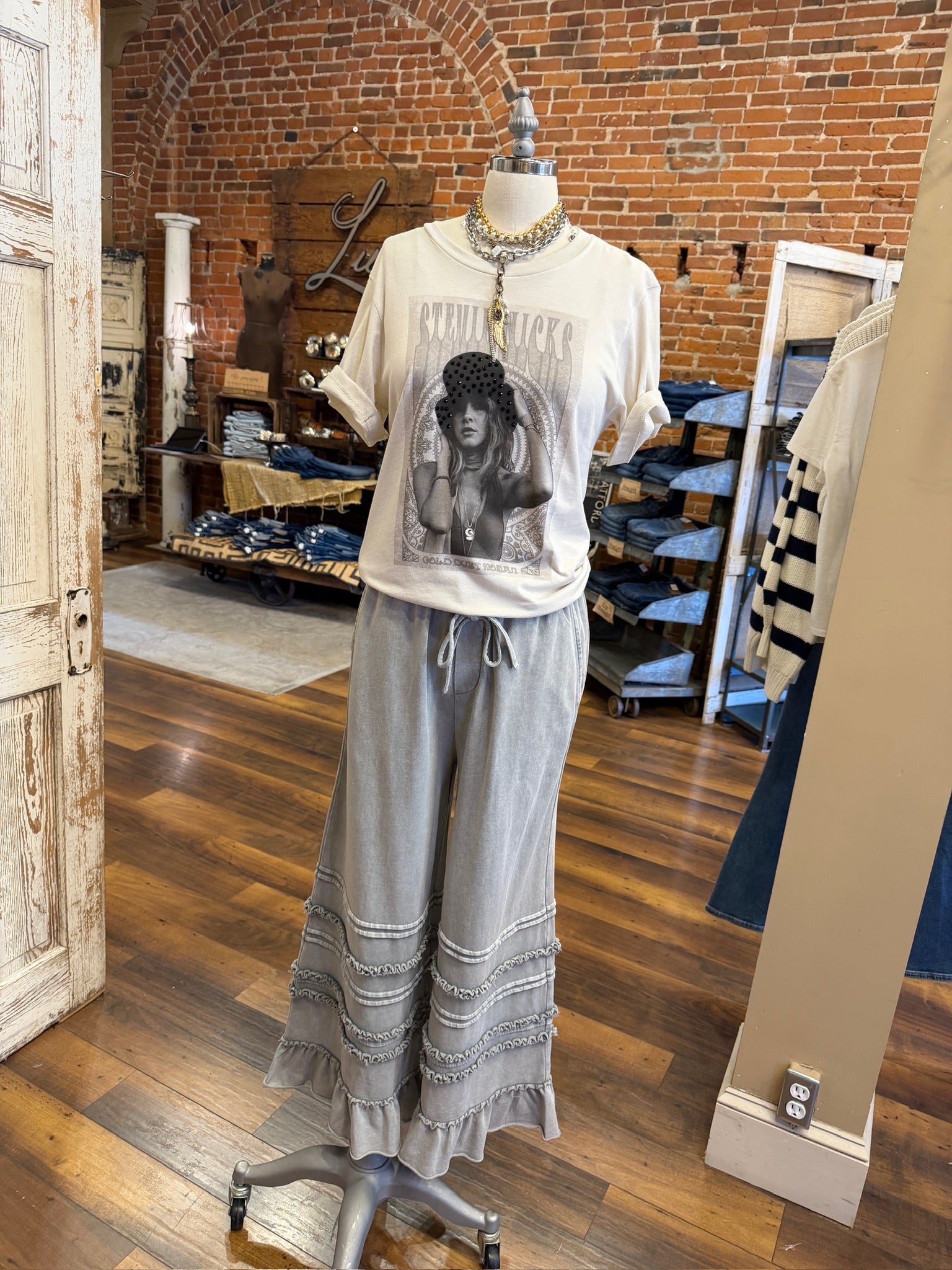 Transform your daily look with these gray-toned wide-leg pants featuring a whimsical multi-tiered ruffle hem. The adjustable drawstring waist and soft, breathable fabric deliver a flawless blend of boho-chic style and effortless comfort.