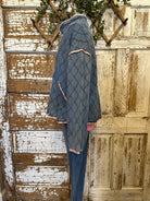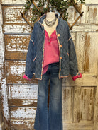 The Quilted Denim Jacket combines comfort and structure with an artistic twist. Featuring soft quilted denim, floral-trim detailing, and a relaxed fit, and snap front...it’s your go to outer layer for cozy boutique clothing style. Wear it over graphic tees or thermal tops for that layered Artistic Works by Lu look.