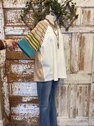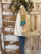 Where comfort meets artistic detail. The Sandstone Stripe Raglan features a soft neutral body with multi-tone striped sleeves and a bold teal cuff that adds unexpected personality. The relaxed fit offers all-day comfort while still feeling styled and intentional.