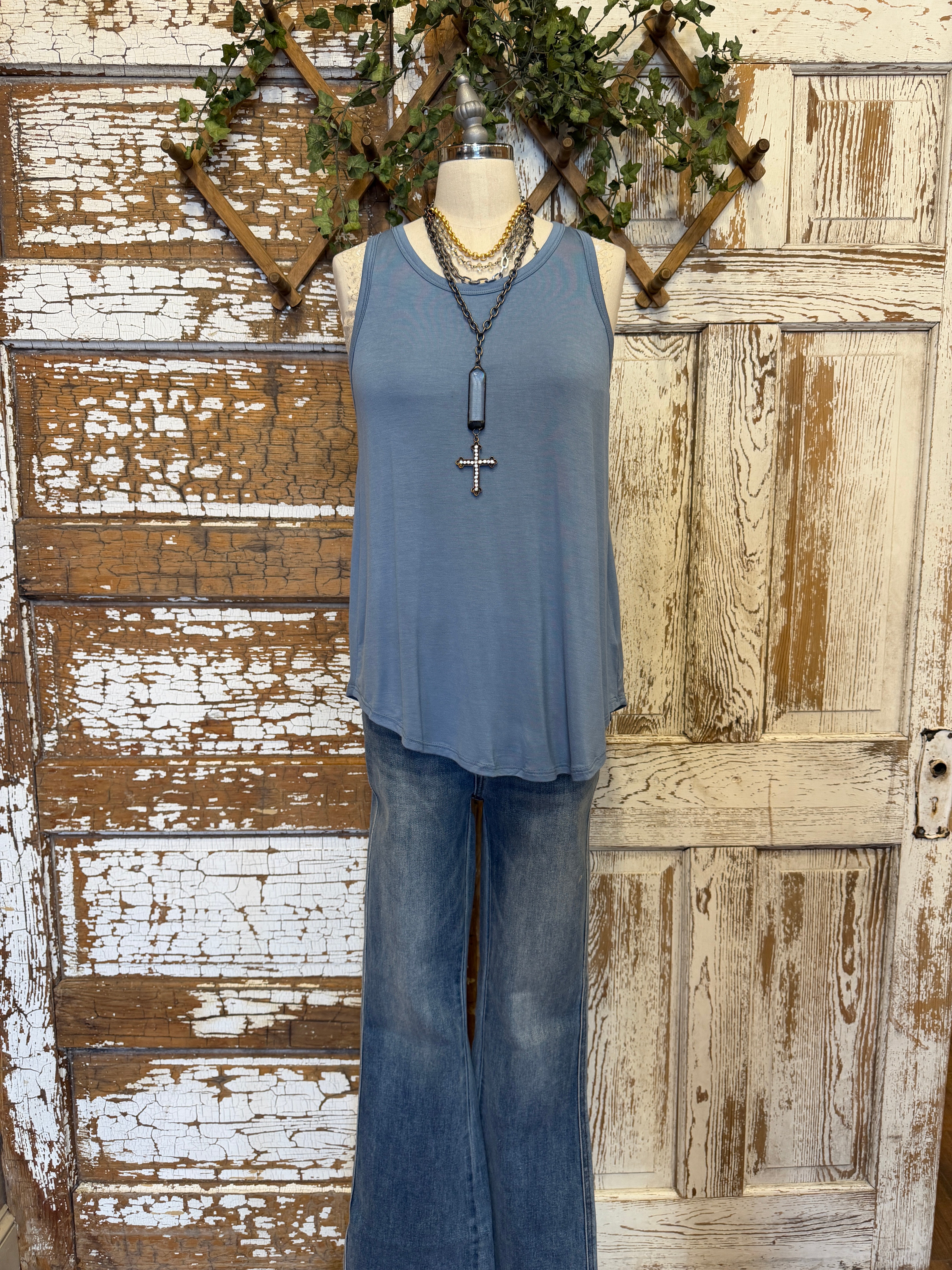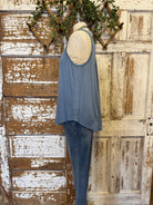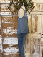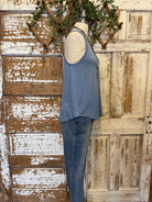 This denim blue bamboo racerback tank is a wardrobe staple with a clean, flattering silhouette. Lightweight and breathable, it drapes beautifully and pairs effortlessly with denim, relaxed pants, or layered under jackets. A perfect neutral with a hint of color for everyday wear.