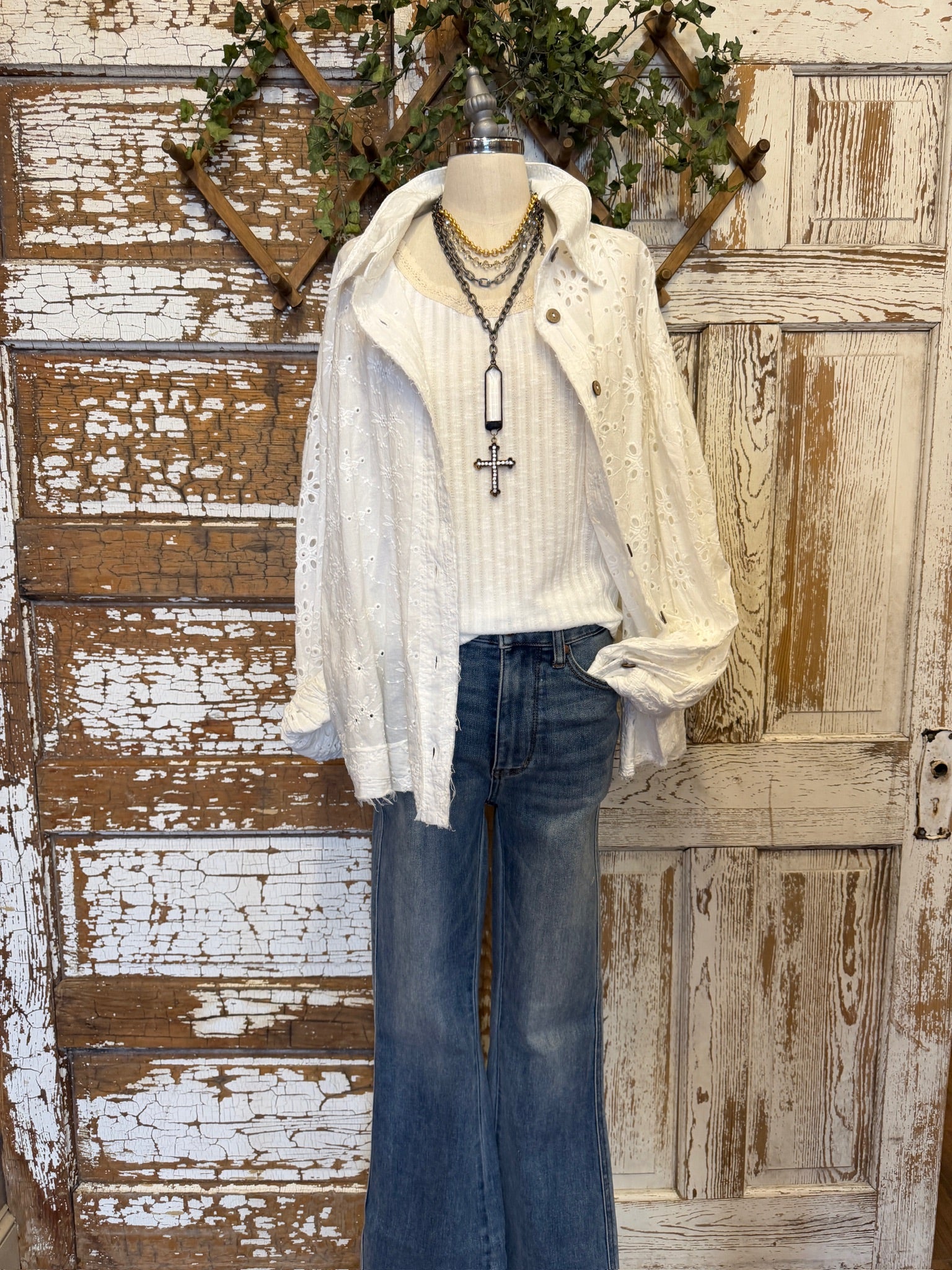 Experience effortless romance with this 100% cotton eyelet jacket, designed with a breathable lace finish and a modern "roomy" silhouette. This versatile layer adds a soft, boho-chic touch to any outfit, transitioning perfectly from sun-drenched days to cool evenings. It’s the ultimate statement piece for those who prioritize both comfort and high-end style.