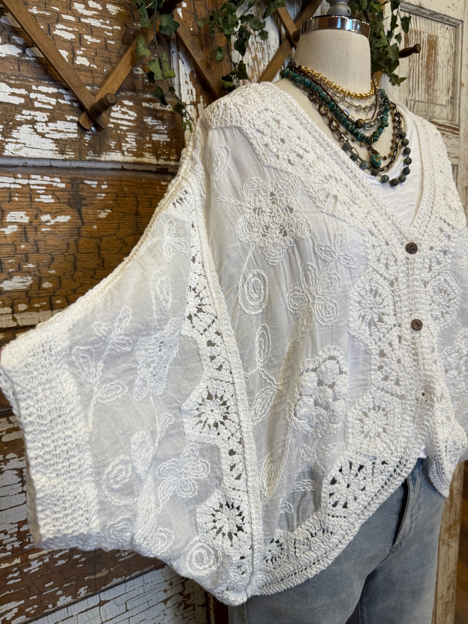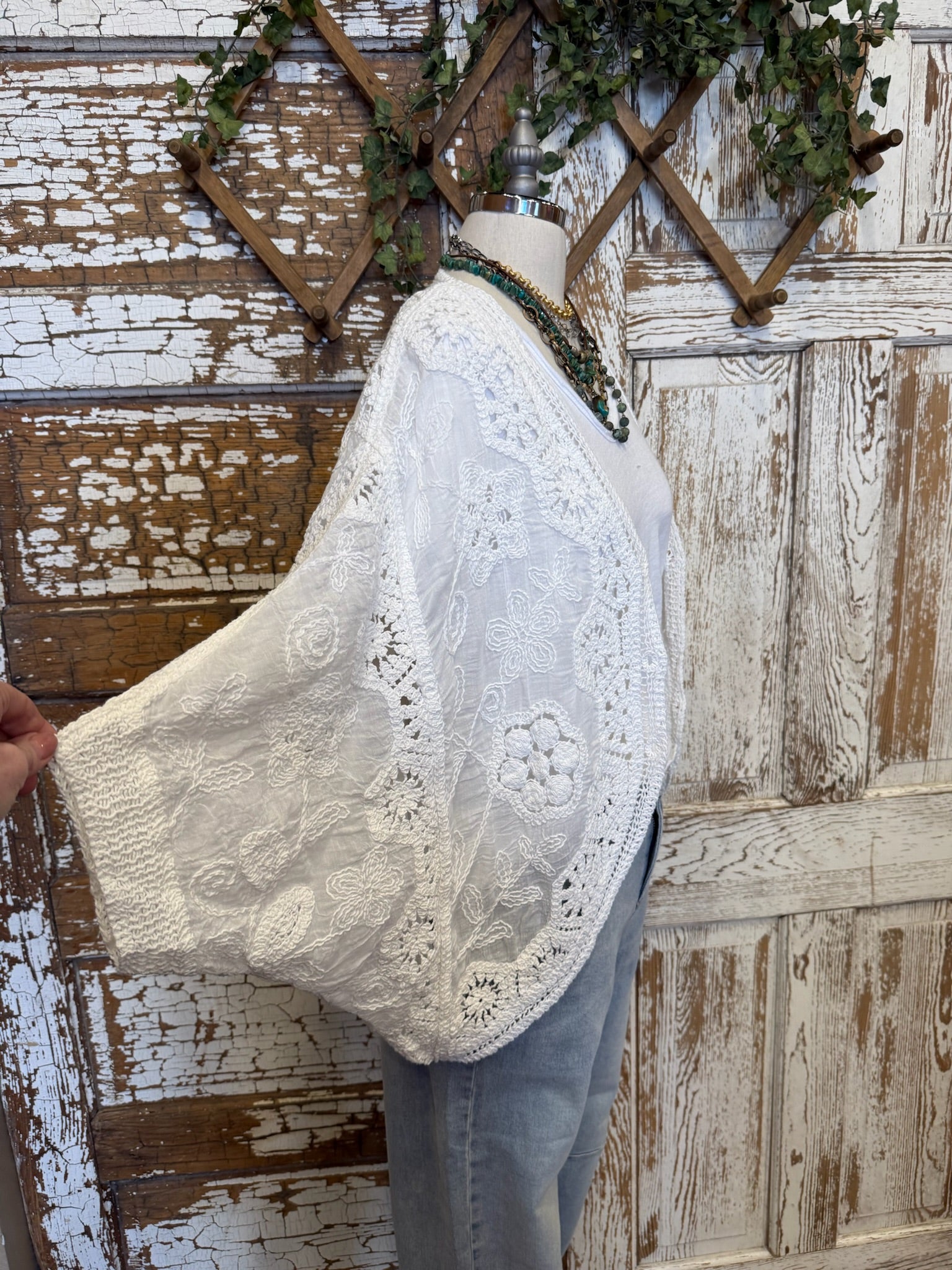 Romantic, timeless, and effortlessly elegant. This lace kimono brings beautiful texture and soft vintage charm to any outfit.