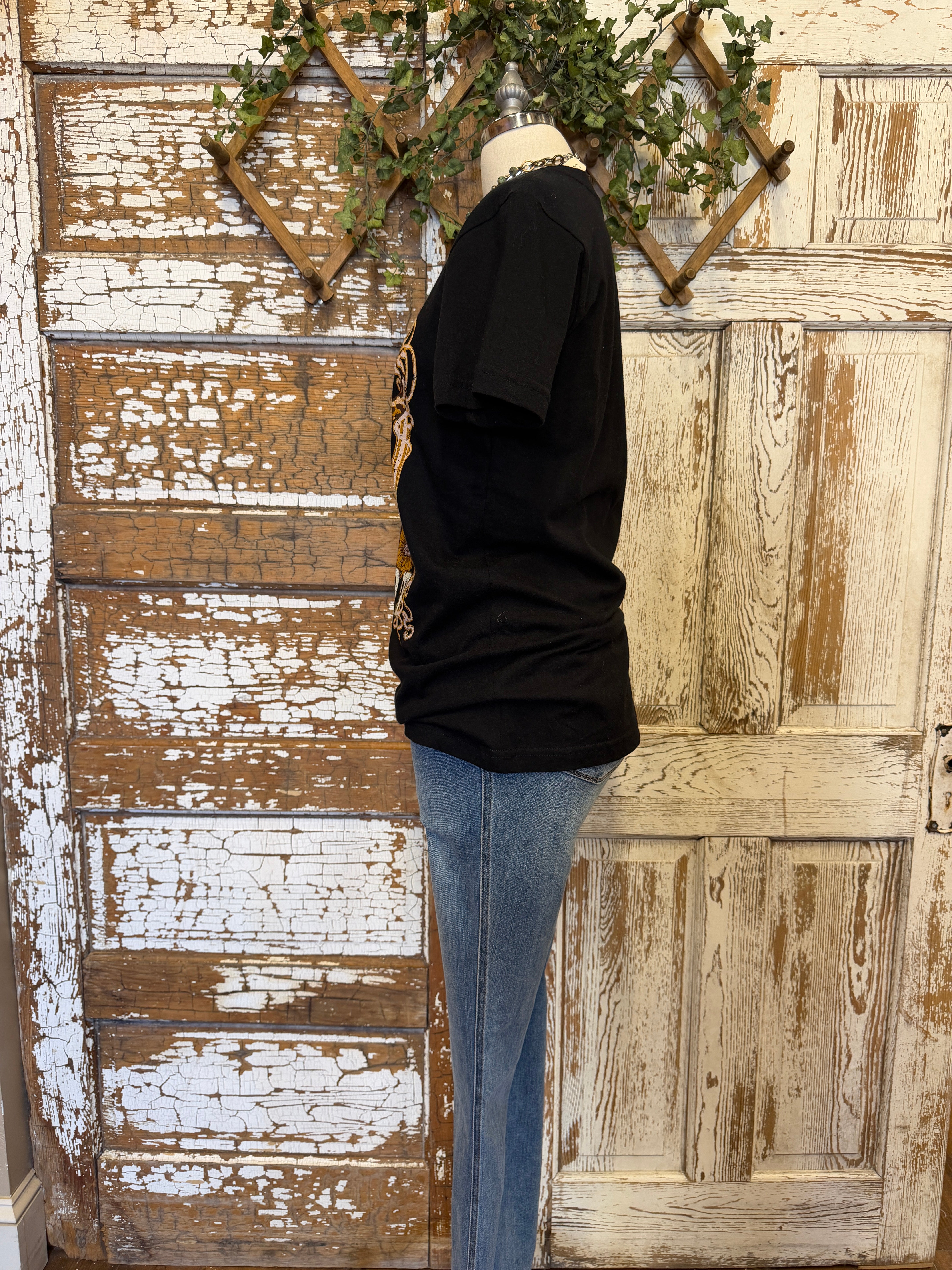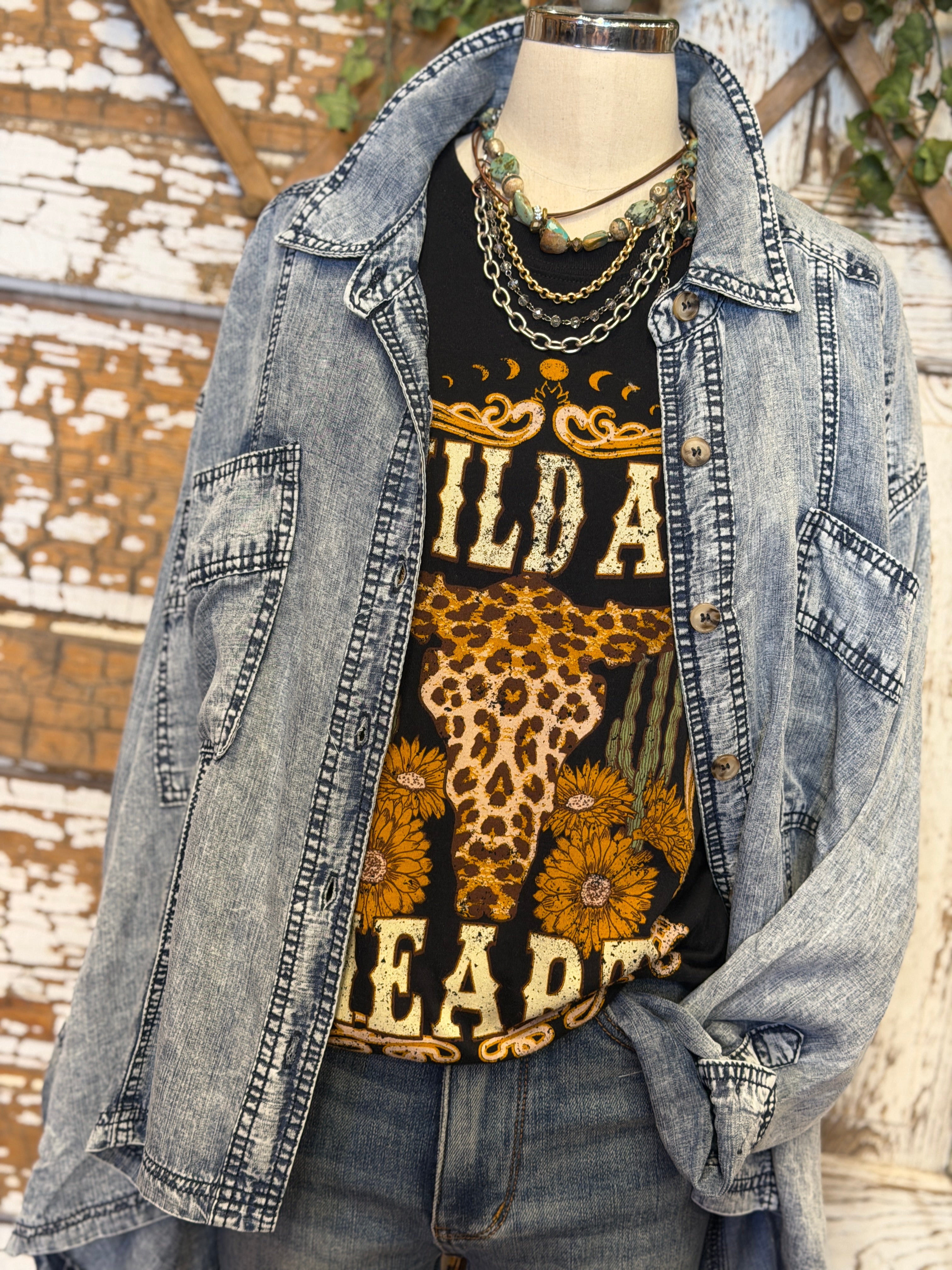 Bold and full of personality, the “Wild at Heart” graphic tee brings a boho edge to your everyday look. Designed with a soft feel and eye-catching artwork, it pairs perfectly with denim, relaxed pants, or layered under jackets for an effortless statement