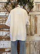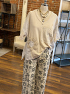Effortless with a little edge—this neutral knit top mixes textures for that laid-back, boutique feel.