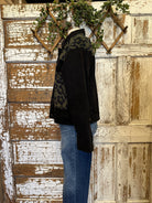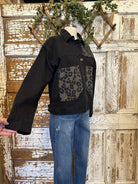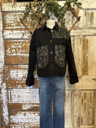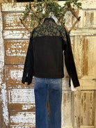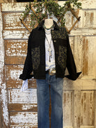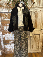 Wild meets chic! This black and olive jacket features bold leopard-print patches for a look that’s equal parts edgy and effortless. Throw it on with denim and jewelry for that signature Lu style.