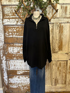 Simple, chic, and endlessly wearable—this black pullover is the go-to for cozy casual days. The quarter-zip neckline adds a sporty edge, while the relaxed fit keeps it comfy.