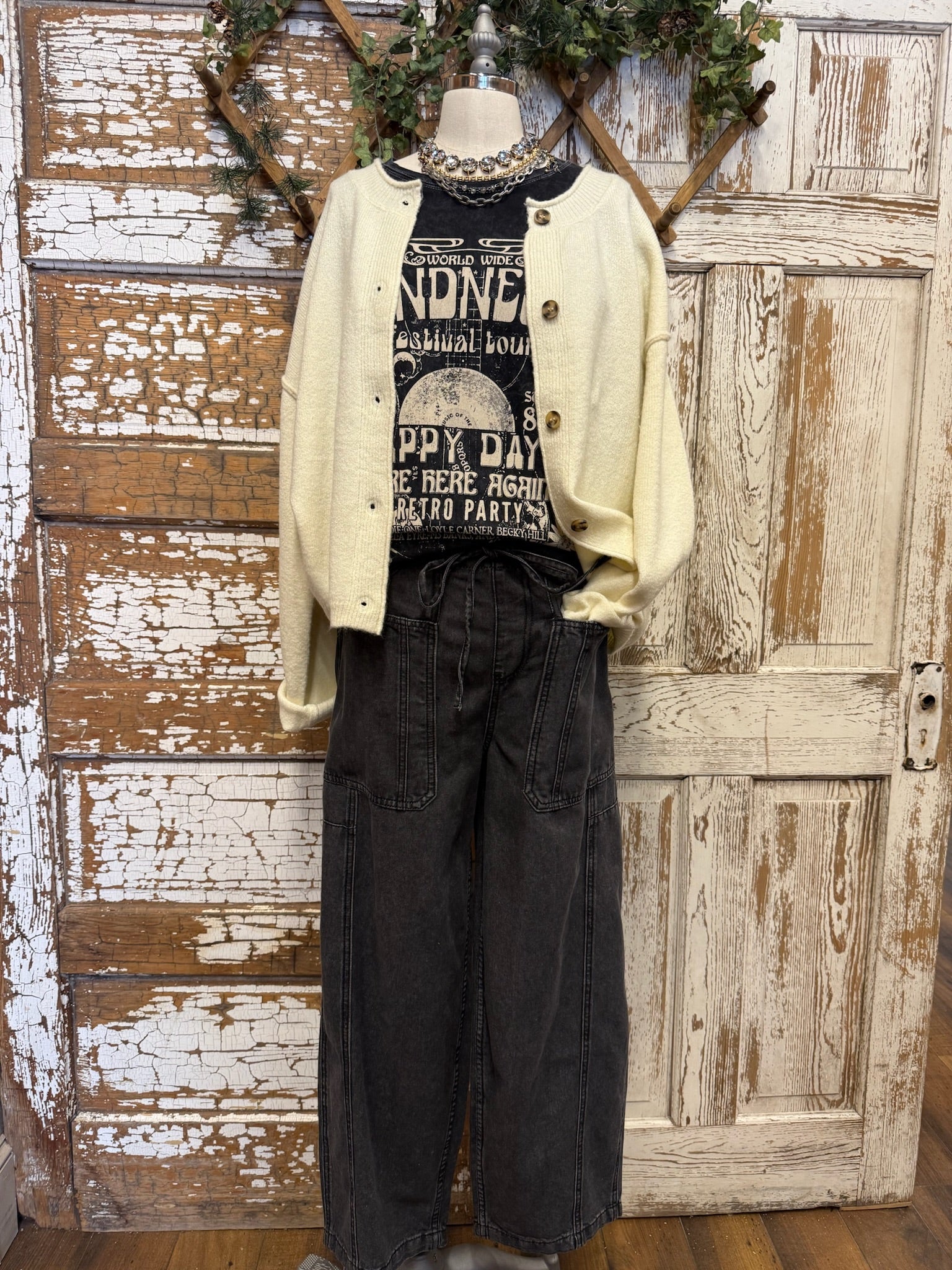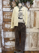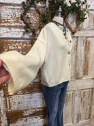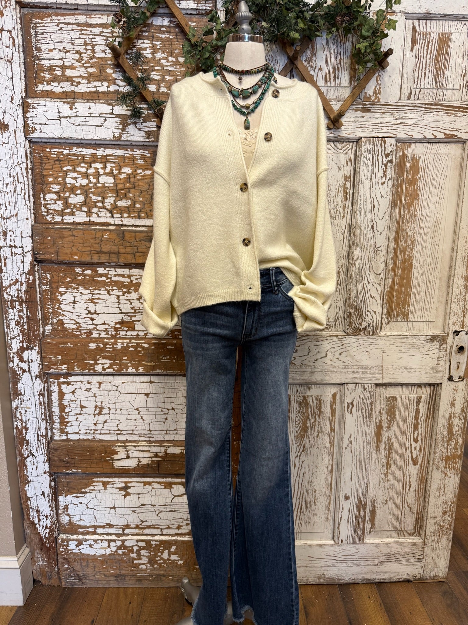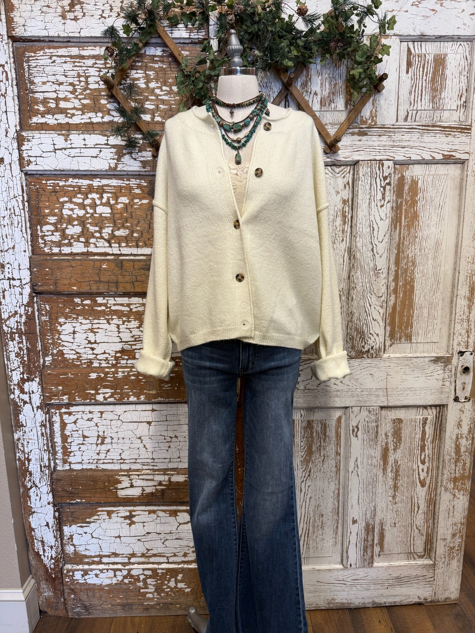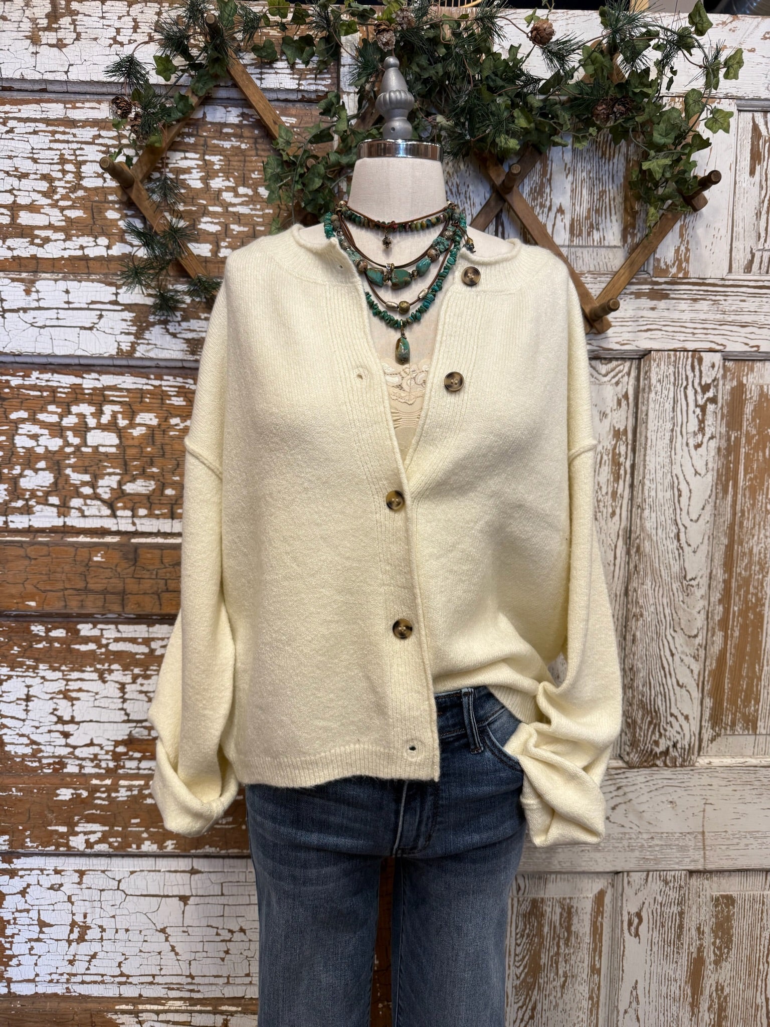Slip into effortless elegance with this creamy ivory cardigan, complete with charming tortoise shell buttons that add a touch of vintage-inspired flair. Perfect for layering over your favorite tee or dress, this versatile piece transitions seamlessly from casual coffee runs to cozy evenings at home. The soft, comfortable fit makes it an instant wardrobe essential that you'll reach for again and again. Style it your way—buttoned up for polished sophistication or draped open for relaxed charm.