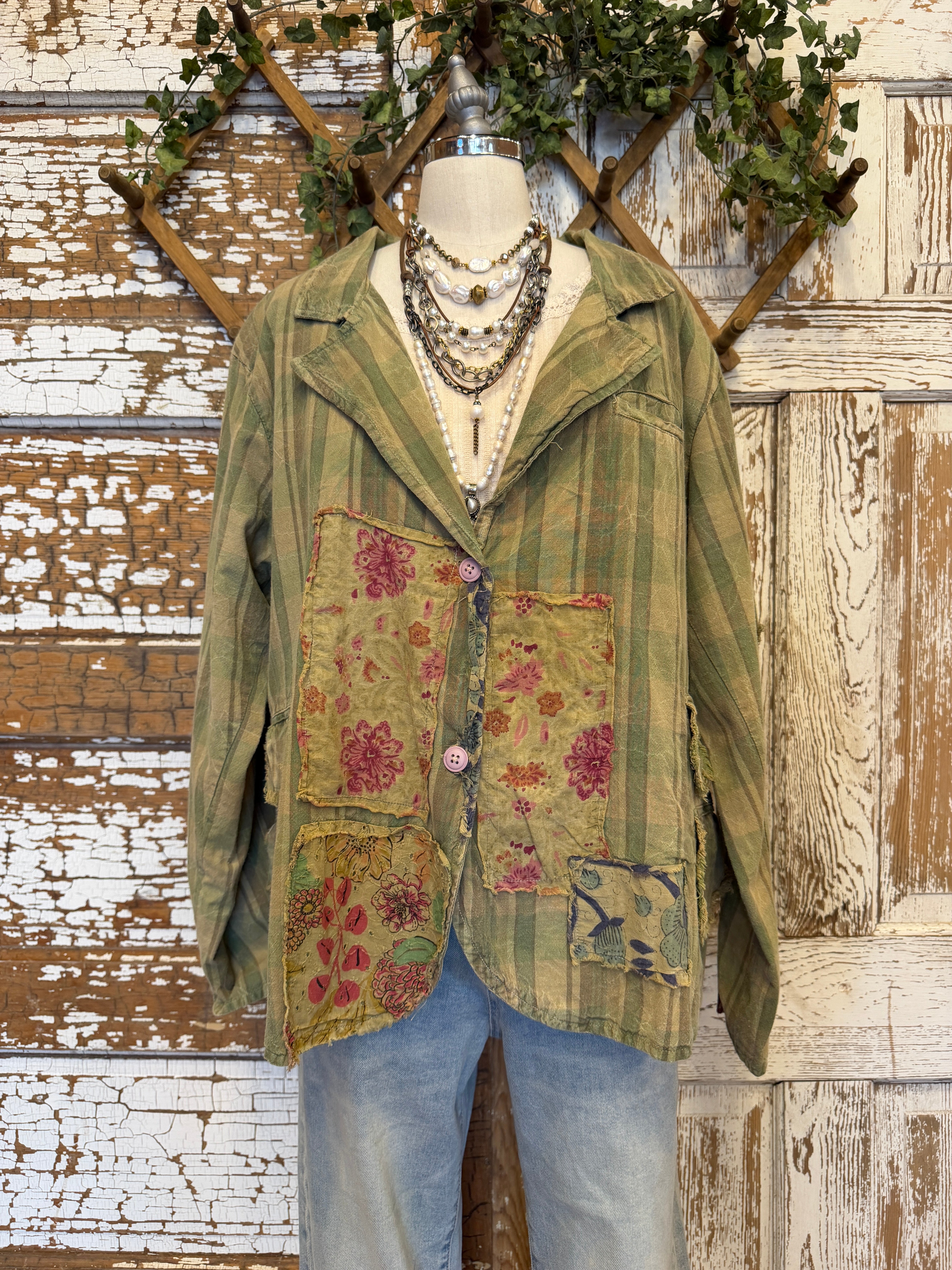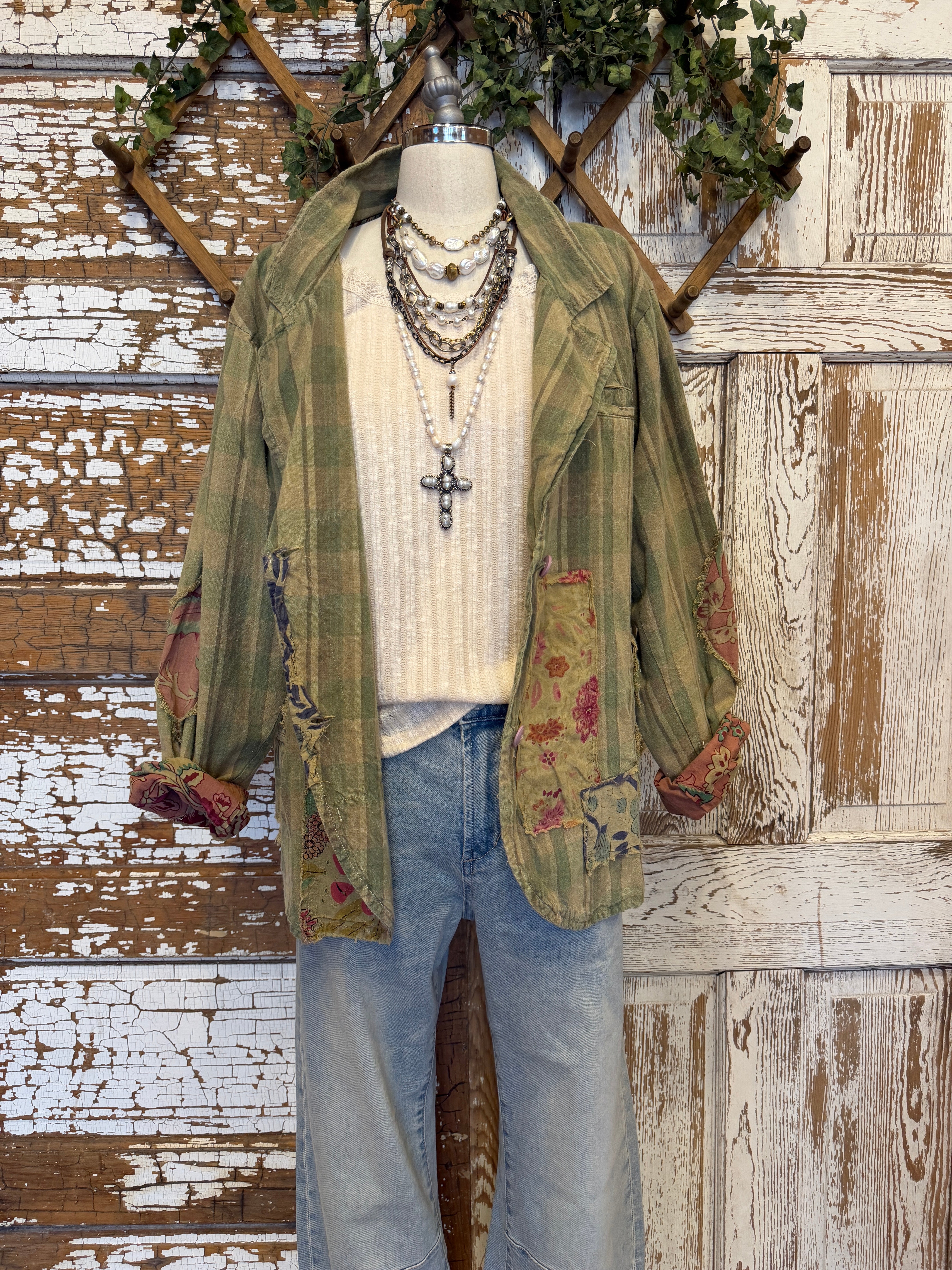 A must-have layering piece—this vintage-inspired blazer features patchwork details that give it that worn-in, perfectly styled look by Jaded Gypsy