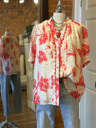 Red & Cream Floral Blouse