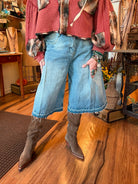 Meet your new statement bottoms—these high-waisted culottes blend comfort with effortless style. Designed with soft front pleats for a flattering fit and a raw hemline for just the right amount of edge, they’re perfect for elevating your everyday look. The wide-leg silhouette creates flowy movement, making them versatile enough to pair with everything from a tucked-in blouse to a cropped sweater.