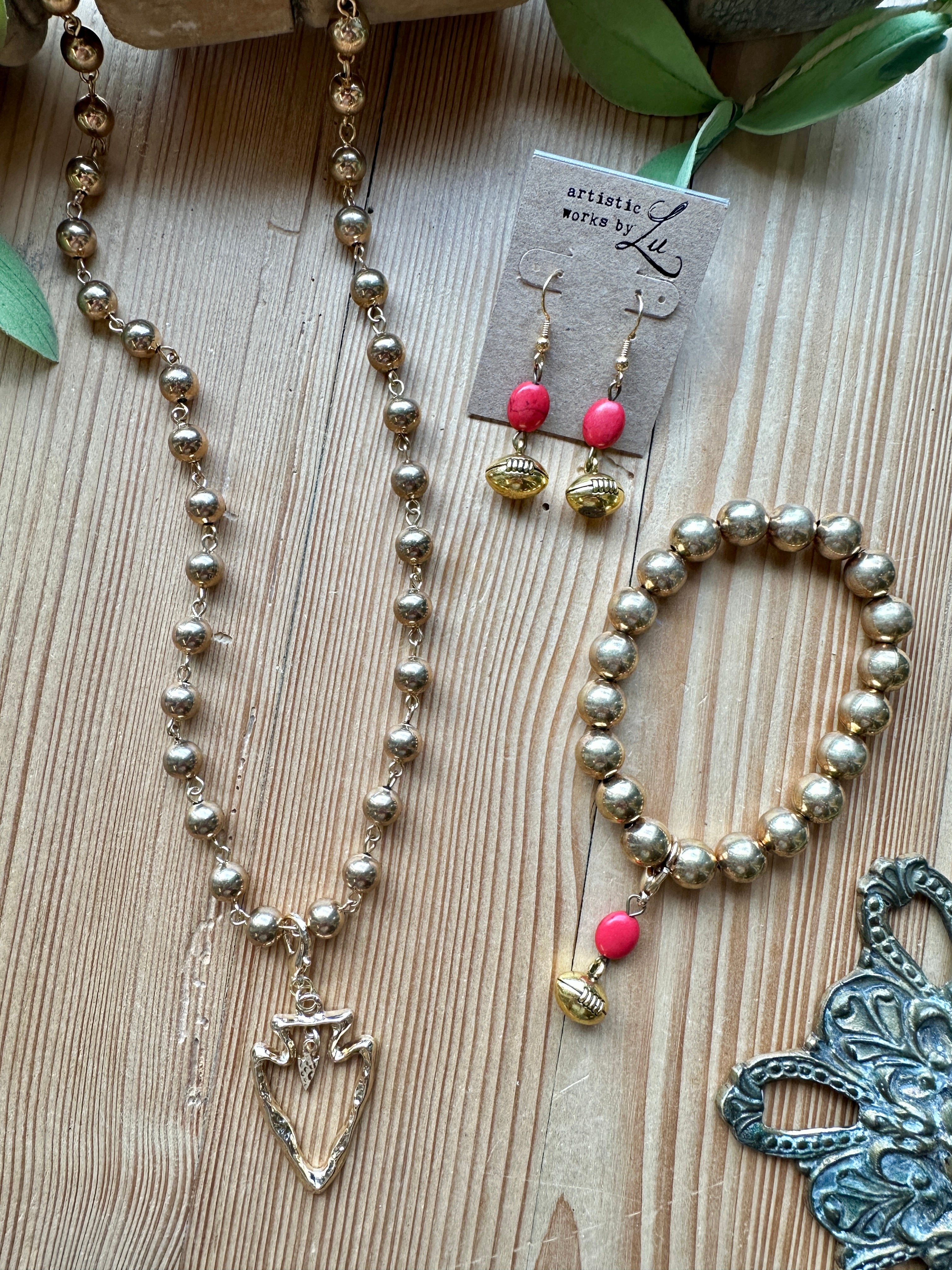 Get game-day ready with Lu’s boutique clothing designed for style and spirit. From bold graphic t-shirts and casual layers to standout accessories, our collection makes cheering on your team effortless and chic. Pair your look with handmade artisan jewelry like a handmade bracelet or unique necklace design to show off your personal flair.