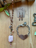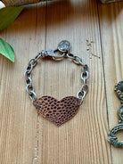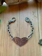 Wear your heart on your wrist with our Copper Heart Bracelet! This unique piece features a hammered copper heart, accented with a silver chain and etched clasp. Show off your playful side with this quirky accessory.