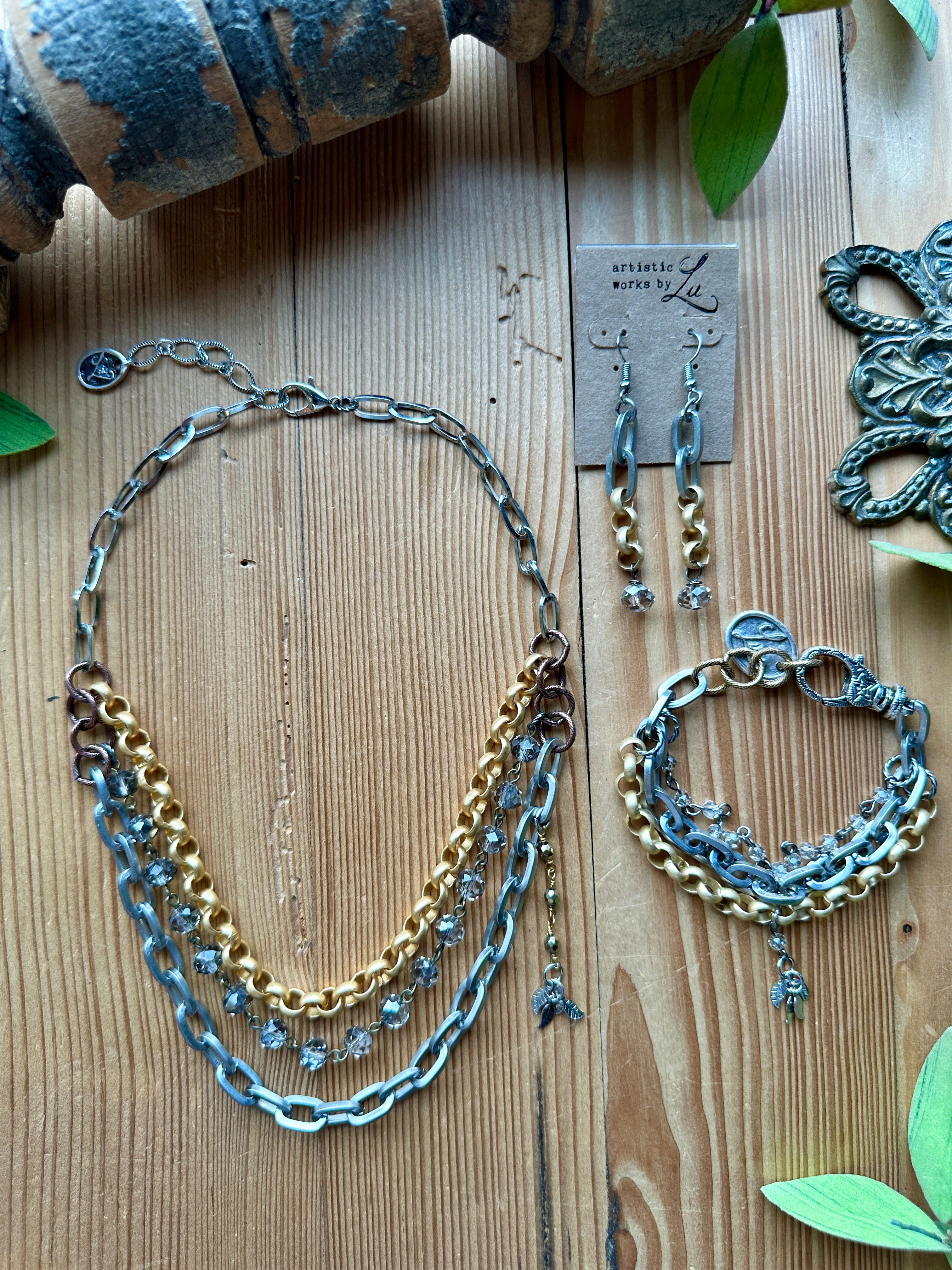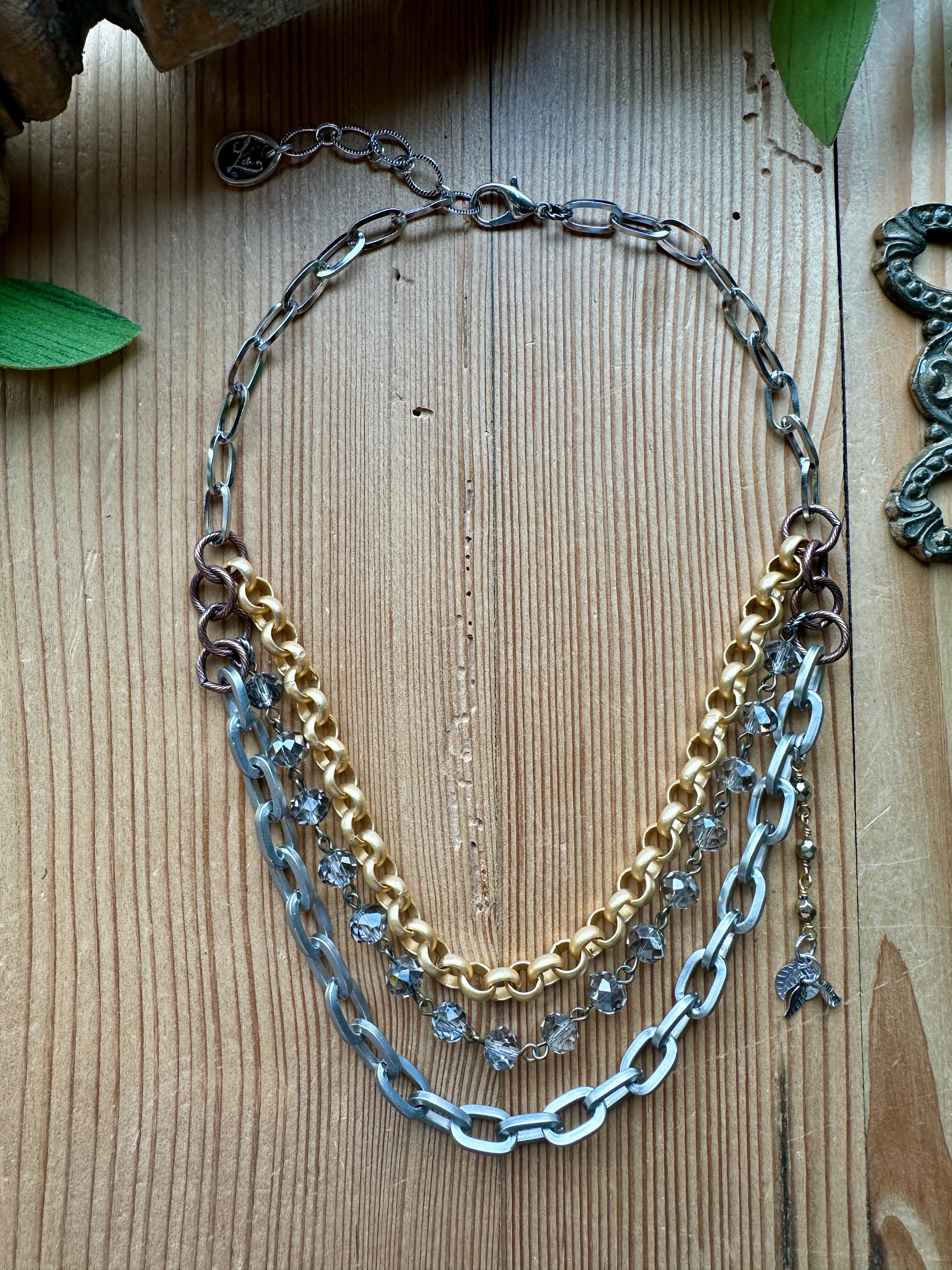 *Showcases a harmonious blend of silver-tone, gold-tone, and bronze-tone chains.