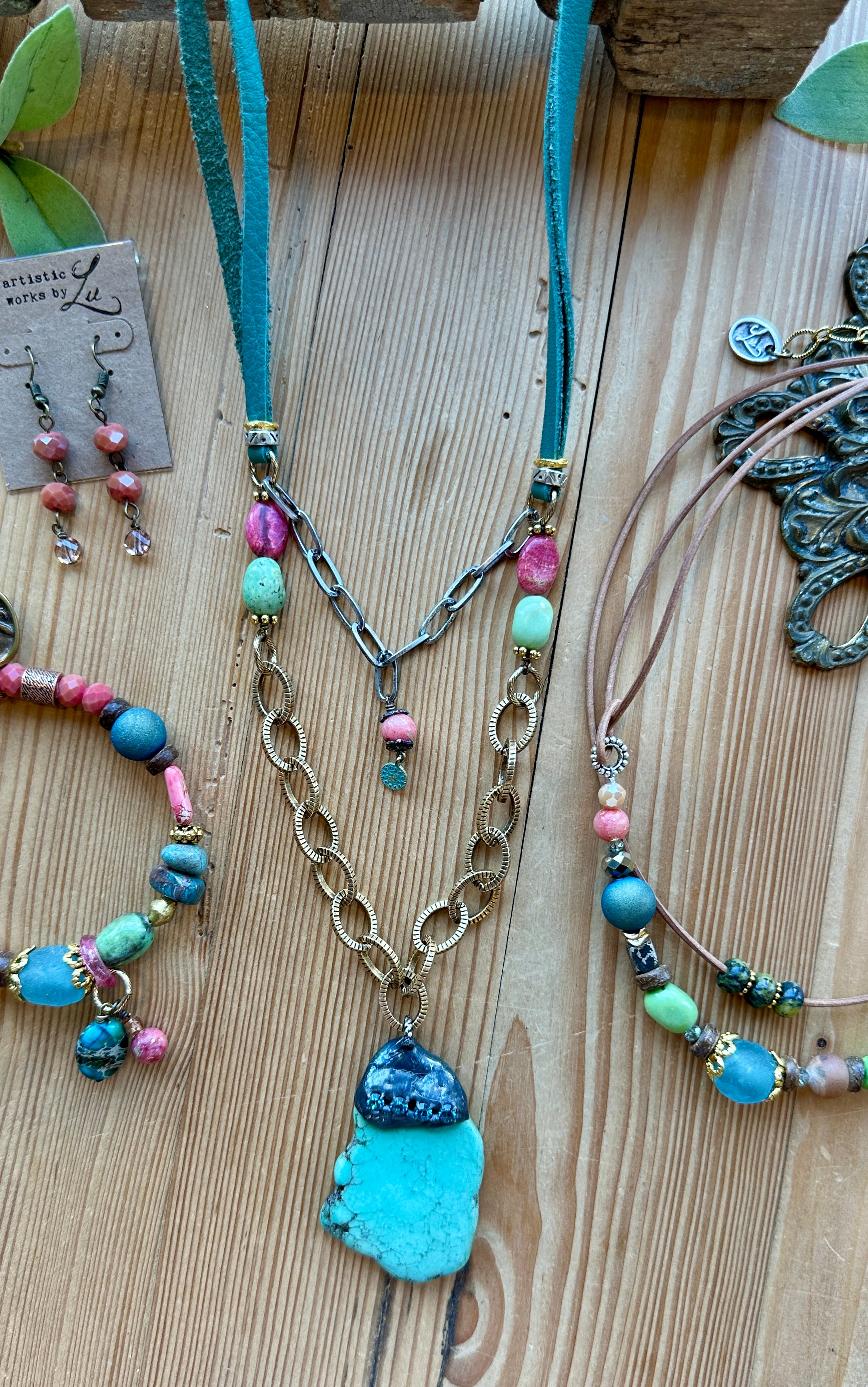 Lu's handmade necklace designs are handmade locally in our Studio Boutique located in Leavenworth, KS.