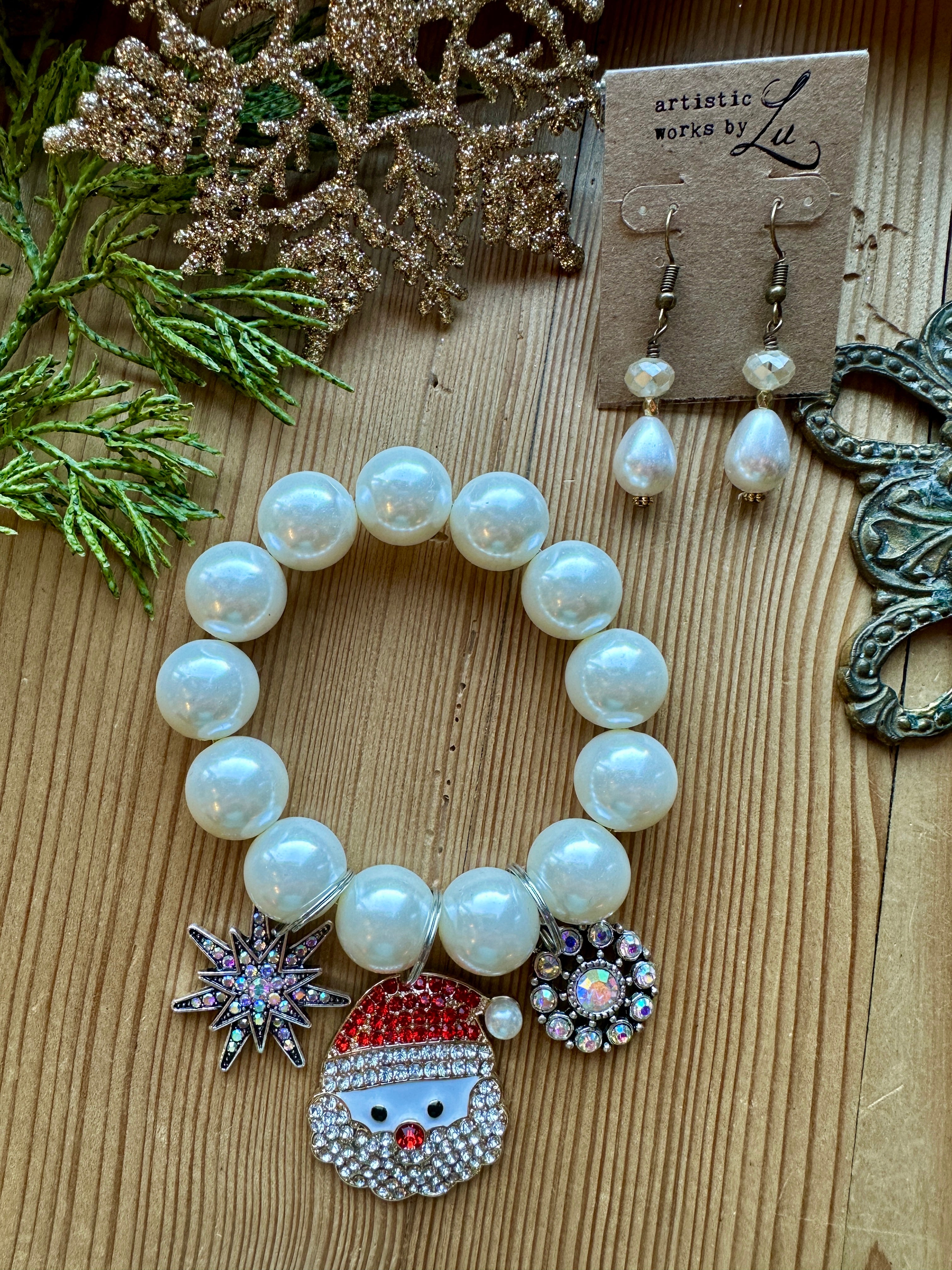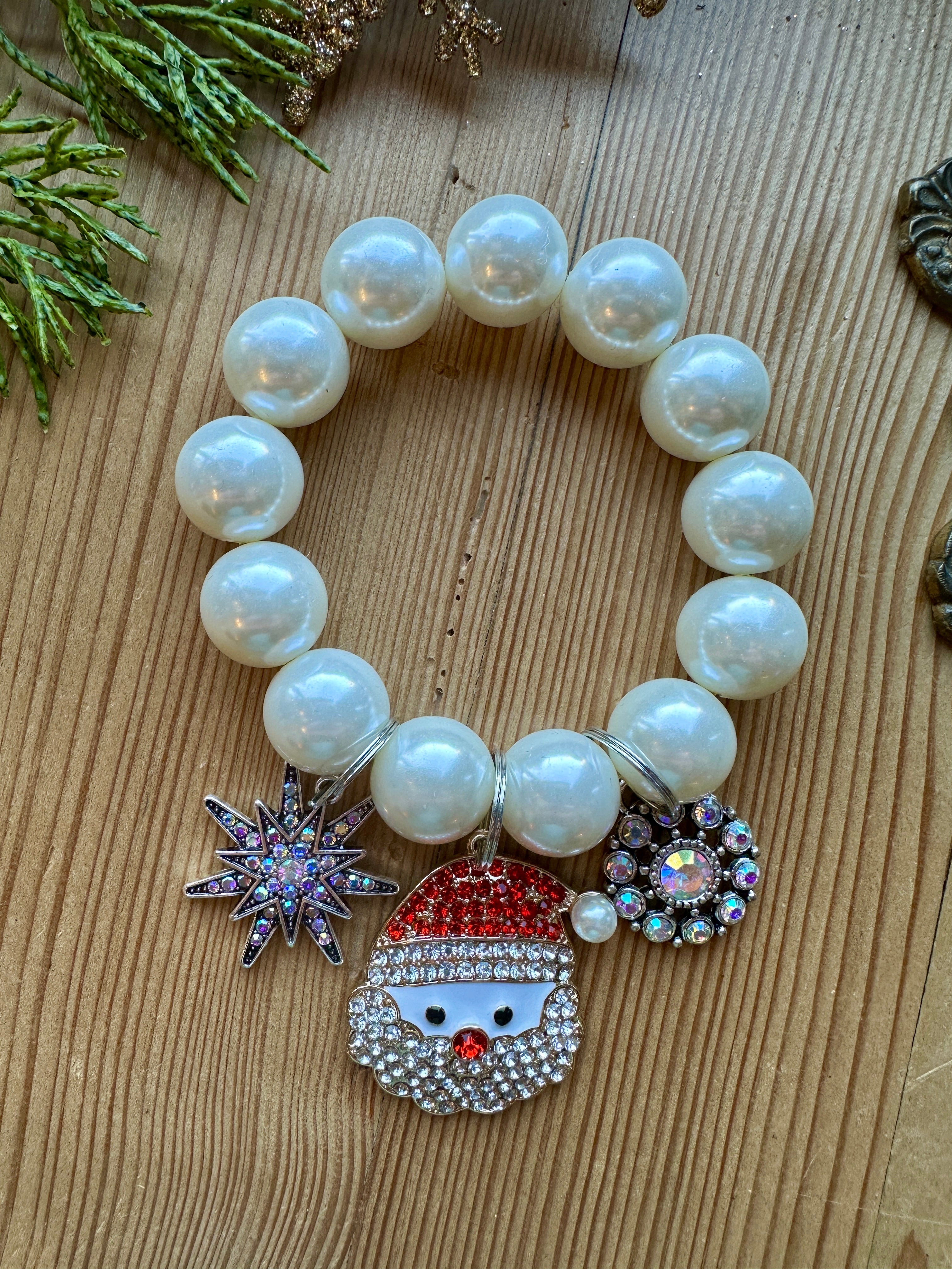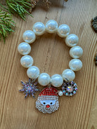 This festive stretch bracelet from Artistic Works by Lu brings instant holiday joy to your wrist. Oversized luminous pearl beads create a classic, dressy base while a cluster of sparkling charms adds playful Christmas personality. A crystal covered Santa, radiant starburst, and shimmering crystal medallion catch the light beautifully, giving you just the right amount of sparkle for holiday parties, family gatherings, and cozy movie nights at home.