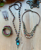 What's the spice of life? Our Autumn Spice Interchangeable Necklace, of course! With vibrant red leaf jasper beads, paired with smooth brown leather and brass cincher beads, you'll be the talk of the fall fashion scene. There are 3 easy ways to wear this necklace ( you will receive a diagram card that shows you the ways it can be worn). Attach any Lu designed pendants to bring it to another level. Spice up your wardrobe with this versatile accessory!