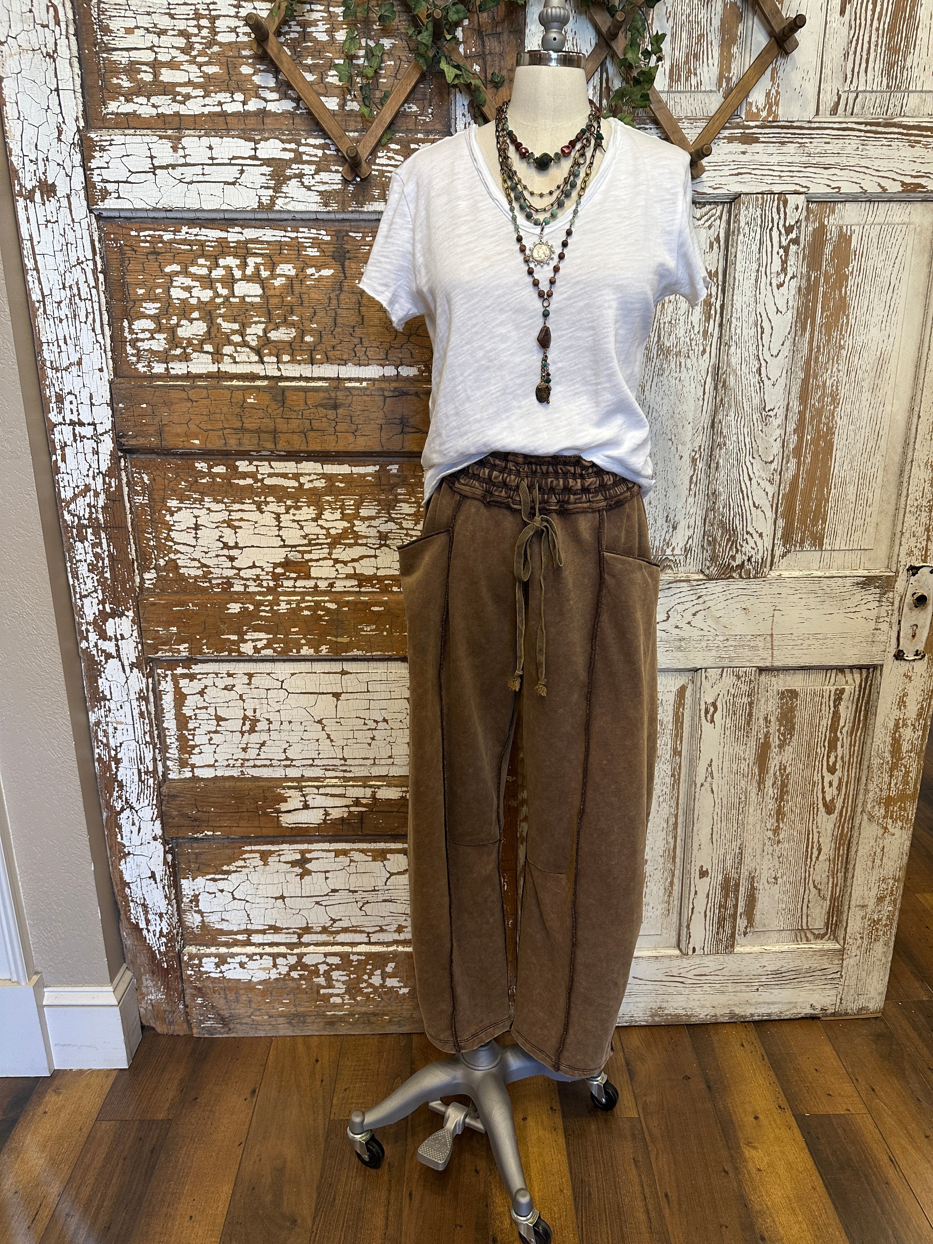 Stay effortlessly stylish and comfortable with our Washed Barrel Lu Leisure Pants, designed with a modern boutique-inspired edge. Crafted from ultra-soft sweatshirt material, these pants feature a relaxed barrel-leg silhouette, an elastic waistband with adjustable drawstring, and raw seam details for an elevated casual look. The back pocket adds functionality while keeping the design sleek and minimal.