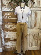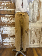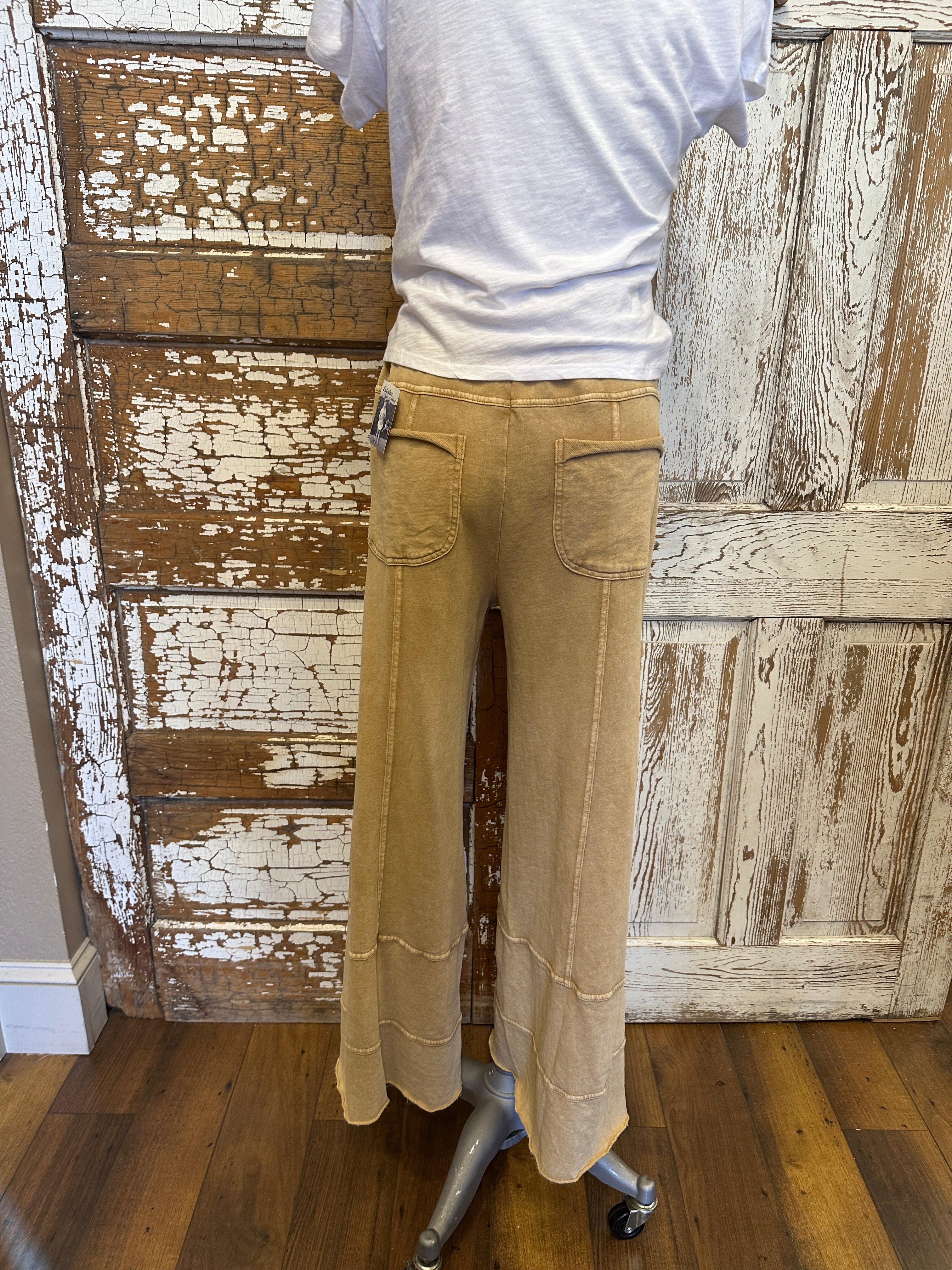 Say hello to effortless comfort with the Butterscotch Wide Leg Lu Leisure Pants feature a mineral-washed Butter hue, roomy wide-leg silhouette, and stitched seam details that give them a cool, utility-inspired vibe. A comfy elastic waistband with a functional drawstring and oversized front pockets make these the perfect blend of laid-back and functional. Pair them with a tank or sweater for a relaxed look that still makes a statement.