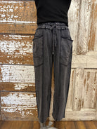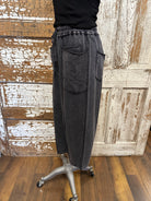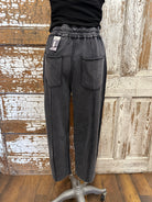 Everyday comfort meets boutique style in these washed black relaxed barrel pants. With their effortless fit and artistic edge, these pants are perfect for pairing with your favorite graphic t-shirts, layering tops, or statement handmade jewelry from Artistic Works by Lu. Designed with roomy front pockets, drawstring waist, and a slightly slouchy fit, they’re as practical as they are chic. Whether you’re shopping at our boutiques in Springfield, MO & Leavenworth, KS or browsing our trendy online clothing boutique, these pants are a must-have for easy, elevated style.