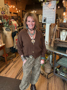 Lounge meets luxe in our Wild Leopard Joggers! These soft, lightweight pants feature a relaxed fit with an adjustable drawstring waist and gently elasticized cuffs for the perfect blend of comfort and style. The muted taupe and black leopard print adds just the right touch of boutique flair — playful yet polished.