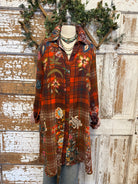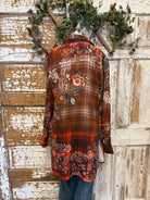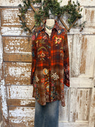 A true standout for the season, the Kelly Mixed print Tunic blends rustic charm with artistic elegance. This longline button-down features a warm, rich plaid base layered with beautifully placed floral motifs—creating that signature Lu look you can dress up or wear casually.