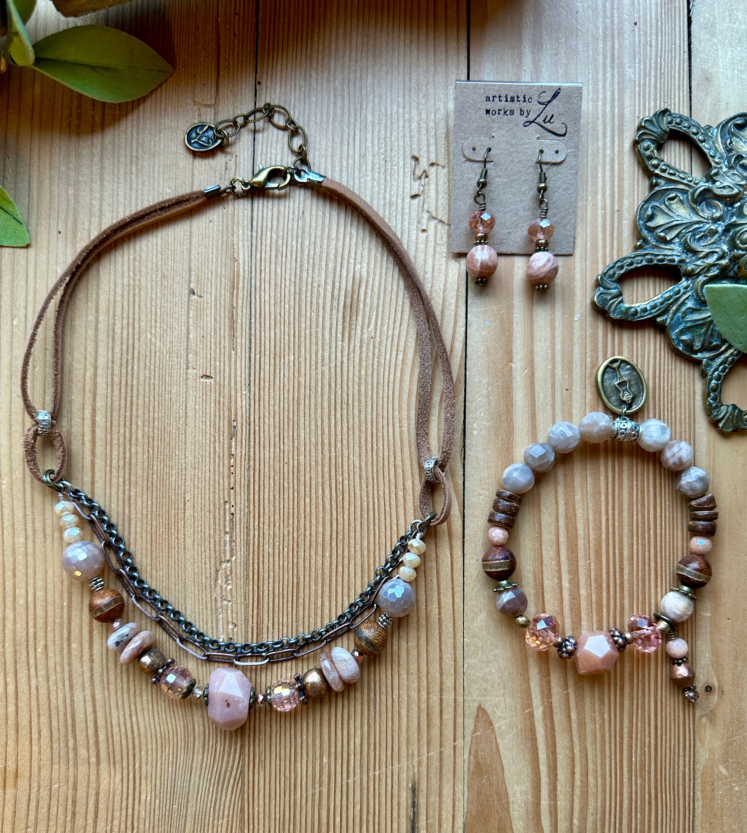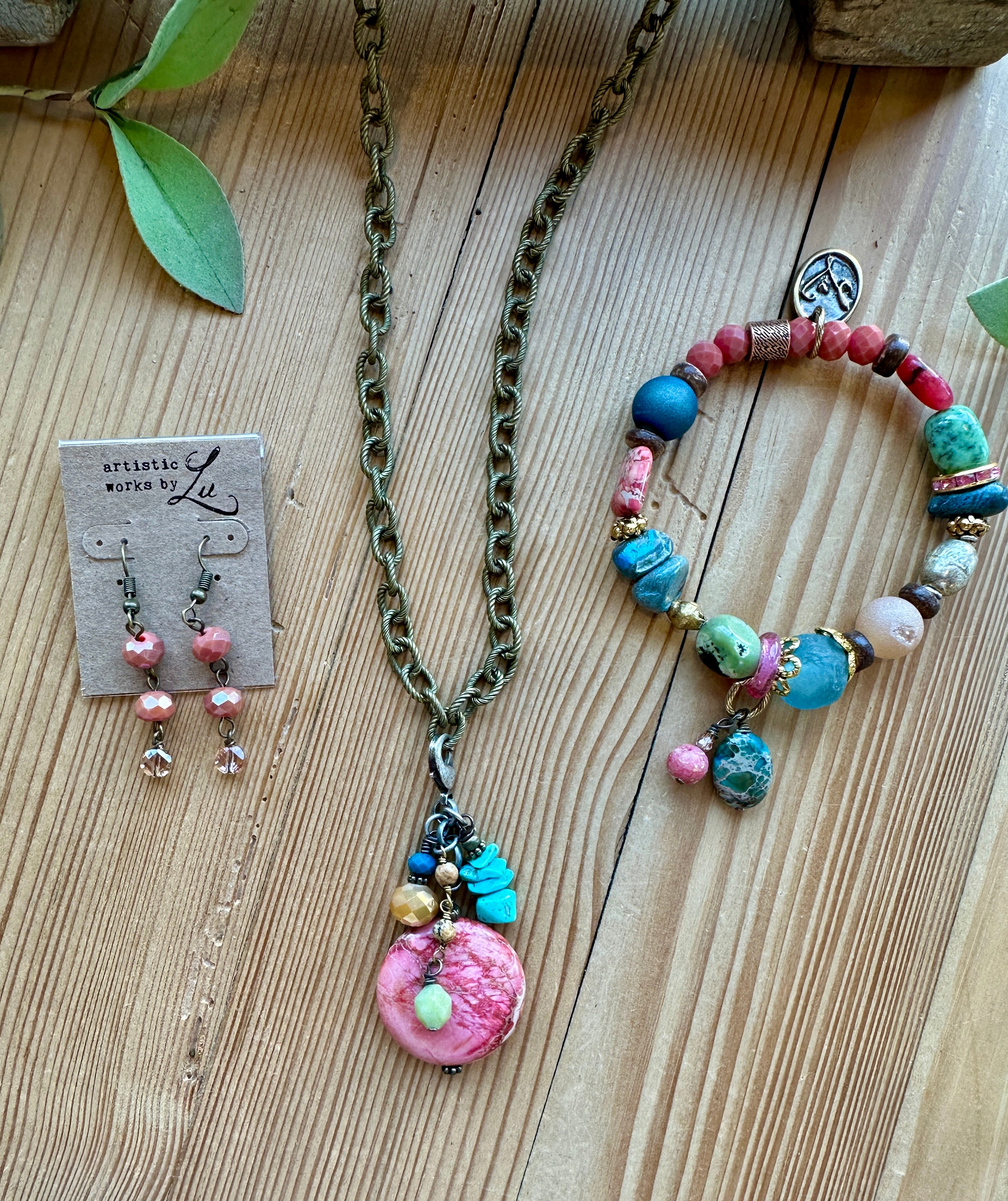 Made with natural gemstones, mixed metals and unique hand-beaded work.