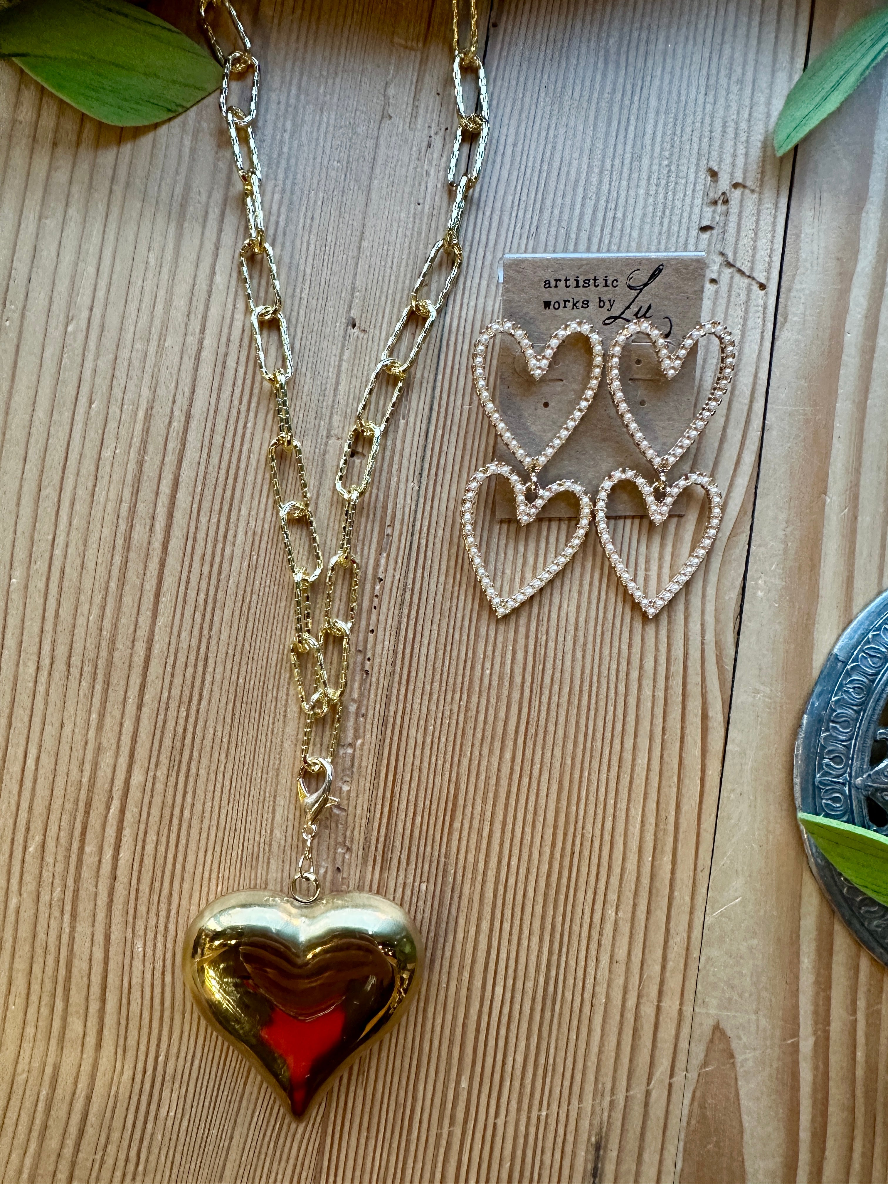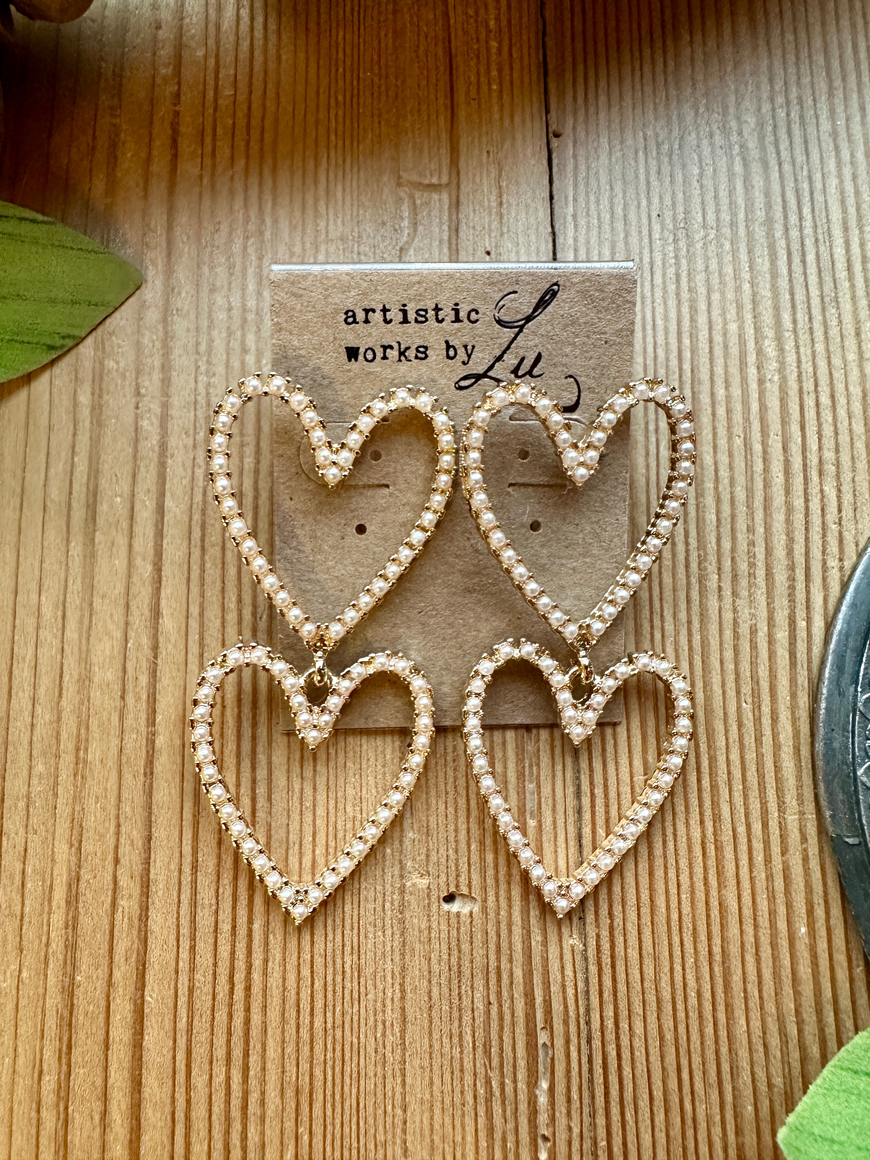 Sweet, feminine, and timeless, these heart-shaped earrings feature a delicate outline accented with tiny pearls for the perfect touch of elegance. Lightweight and eye-catching, they’re a beautiful choice for date night, weddings, Valentine’s Day, or everyday wear.