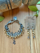 Elevate your wrist game with our exquisite Boho Chic Mixed Metal Layered Bracelet. This stunning piece masterfully combines multiple strands of diverse chains, creating a rich tapestry of texture and shine. Its versatile design effortlessly blends bohemian flair with contemporary elegance, making it an essential accessory for any fashion-forward individual. Designed by Lu and crafted with attention to detail, this bracelet features a captivating blend of matte gold-tone and polished silver-tone flat link and rounded link chains. Interspersed are delicate strands of sparkling faceted crystal beads, adding a touch of glamorous shimmer. A charming assortment of delicate leaf-shaped pendants in varying metallic finishes, including a subtle rose gold accent, along with a distinctive etched silver medallion, complete its unique aesthetic. Whether you're dressing up a casual outfit or adding a statement piece to an evening look, this multi-layered bracelet is sure to draw admiration. Its secure and ornate lobster claw clasp ensures comfortable wear while providing an additional touch of intricate design. Embrace effortless style and showcase your individuality with this truly captivating accessory.