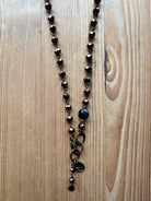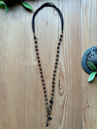 This Brown Sparkle Interchangeable Necklace features a rondel bronze crystal rosary link that is attached to a supple chocolate brown leather cord. Enjoy the versatility of this necklace as you can effortlessly switch between a casual or formal look. There are 3 easy ways to wear this necklace ( you receive a diagram card that shows you the easy ways to wear). Attach any Lu designed pendants to bring it to another level.