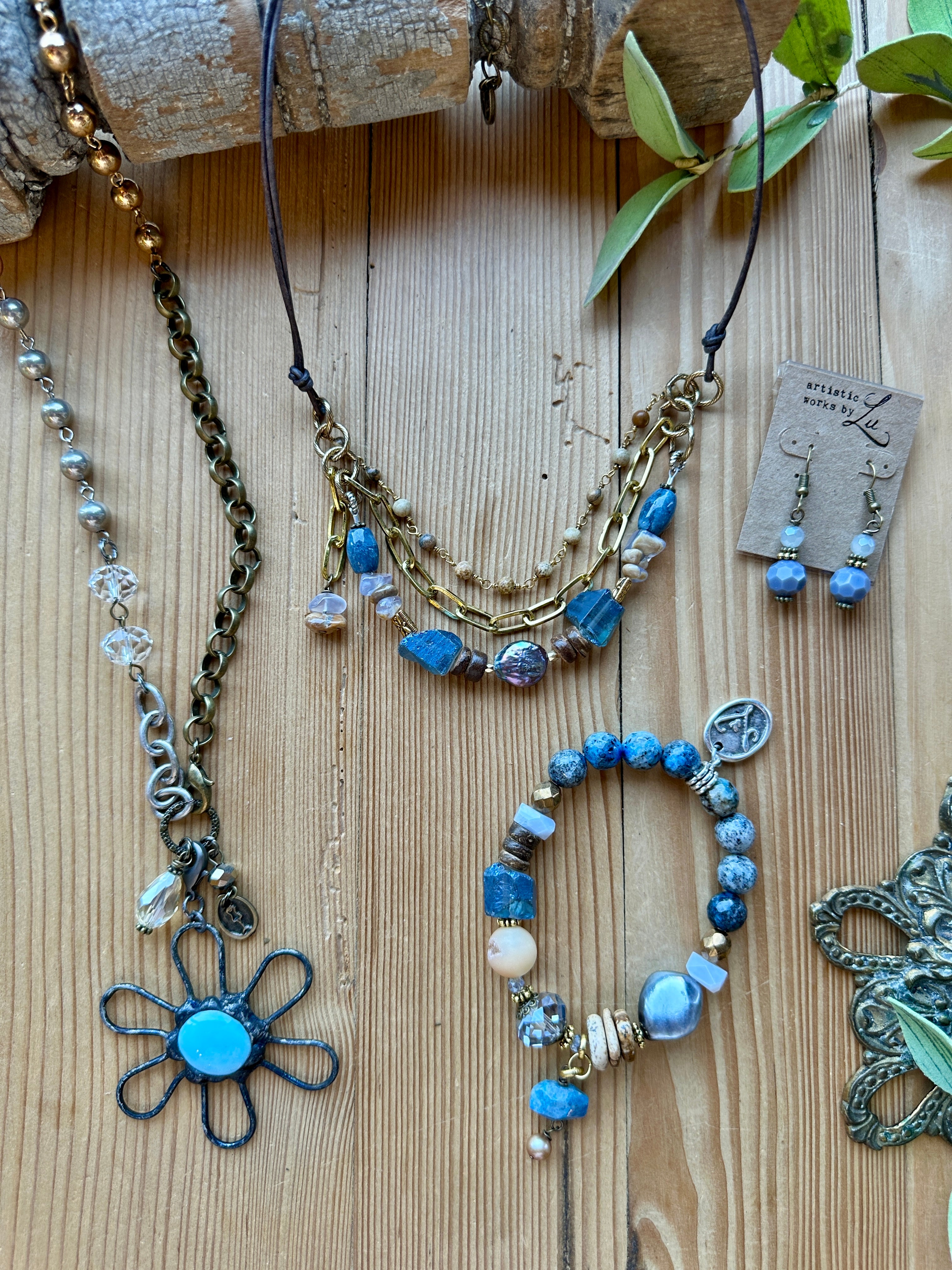 These Deja Blue Double Bead Earrings feature a faceted light blue bead and a smaller faceted blue bead with gold accents. Elevate your style with a touch of elegance and sophistication. Perfect for any occasion, these earrings will add a pop of color to your ensemble and compliment any of our Deja Blue necklaces.