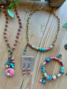 These Earthy Brights Rosary Earrings feature two soft coral rosary style beads and a small soft coral crystal bead that adds a subtle sparkle. The delicate design adds a touch of elegance to any outfit.