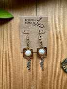 The Gypsy Pearl Window Earrings feature a chic gold square frame that beautifully showcases a faceted pearl-inspired bead. Finished with a delicate silver chain dangle, these earrings are perfect for adding a touch of refined charm and subtle movement to any outfit.