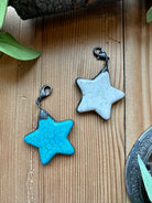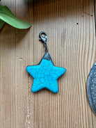 Shine like a star with our hand soldered pendant! Available in ivory or turquoise, this unique piece will elevate any outfit. Perfect for those who want to add a touch of fun and quirkiness to their style. Measuring 1 1/2" in size, it looks stunning on a classic chain or any Lu designed interchangeable necklaces.