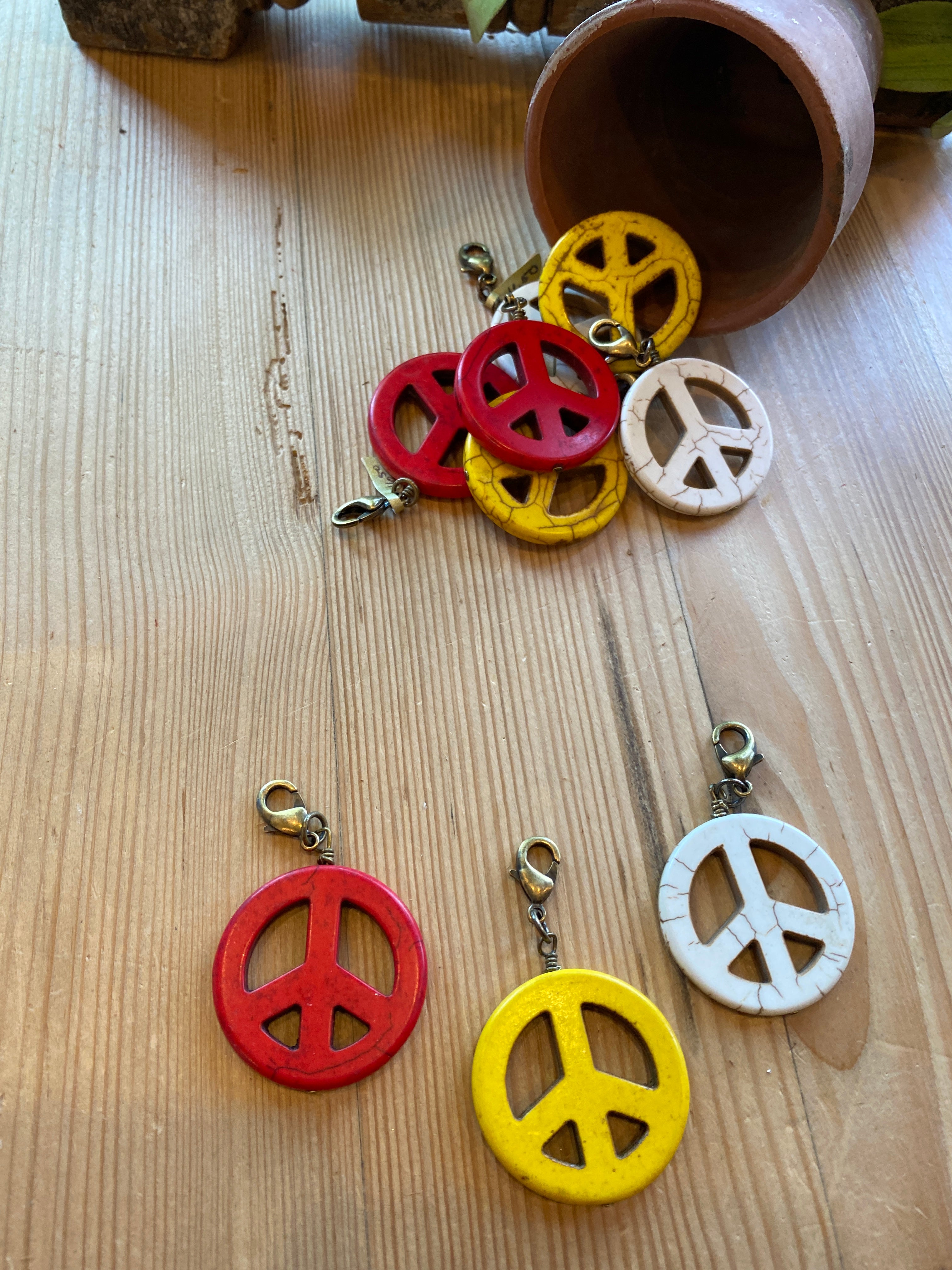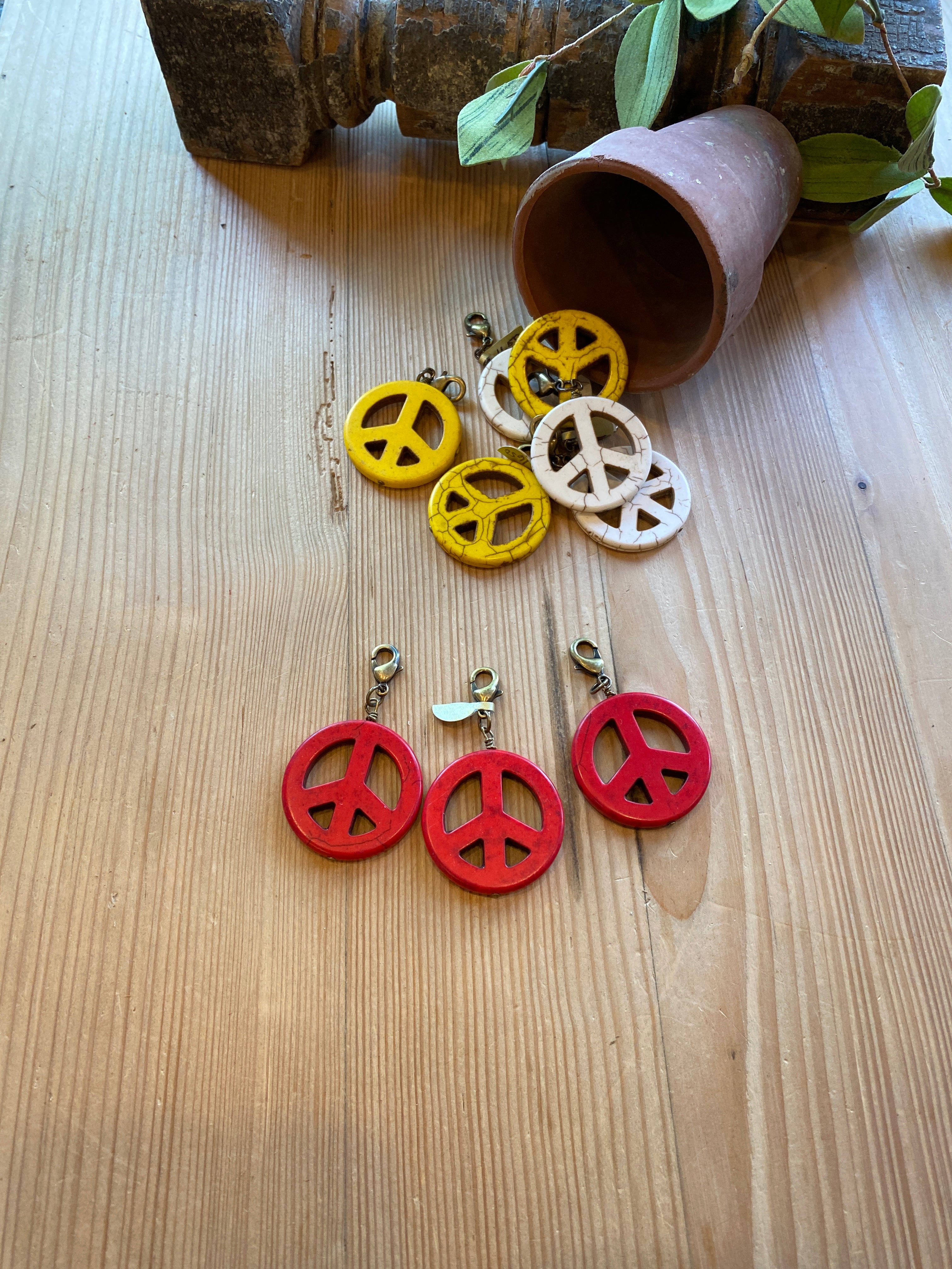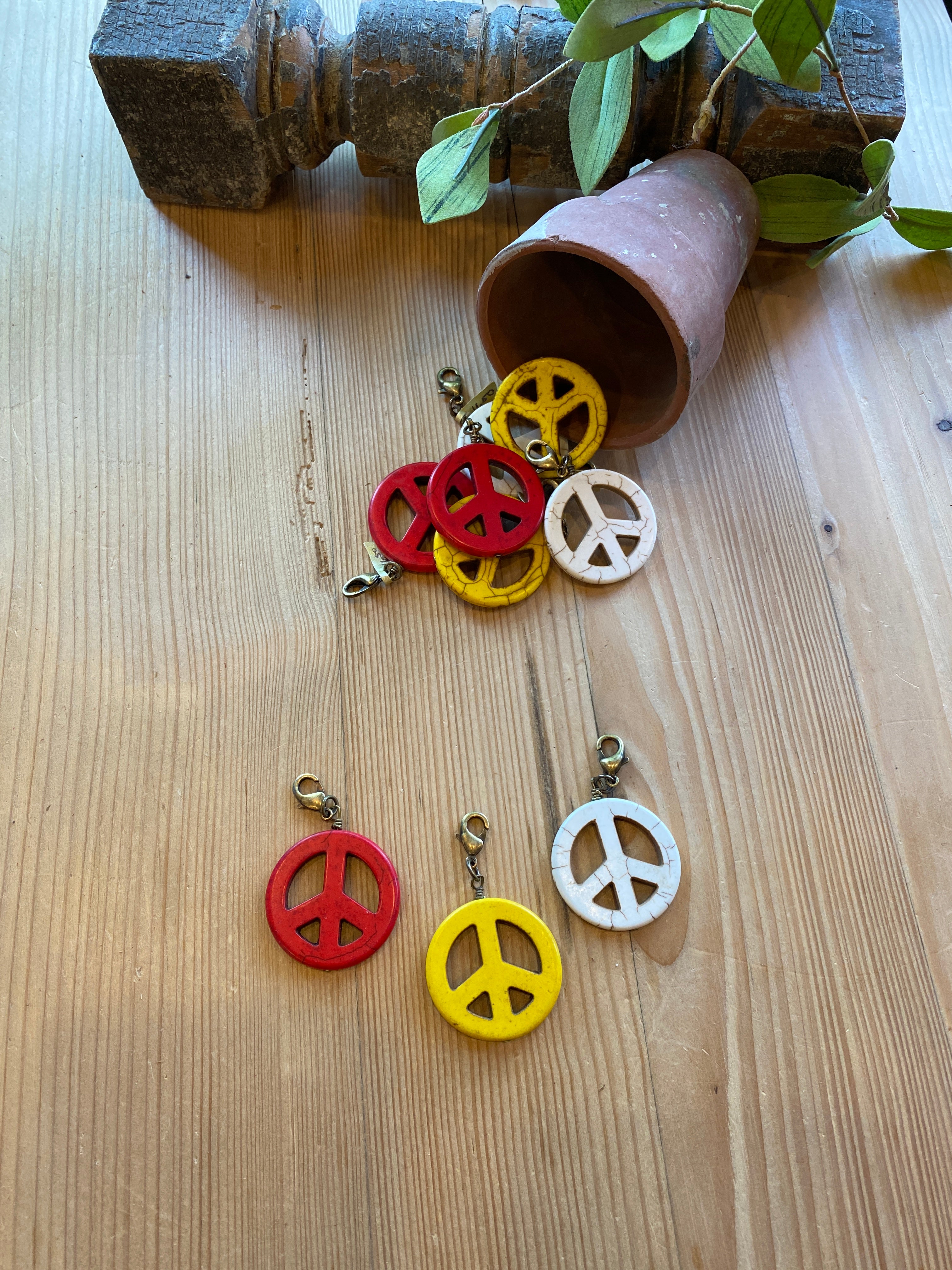 Fun peace sign pendants with lobster clasp to attach to any of your Lu designs or wear on a leather!