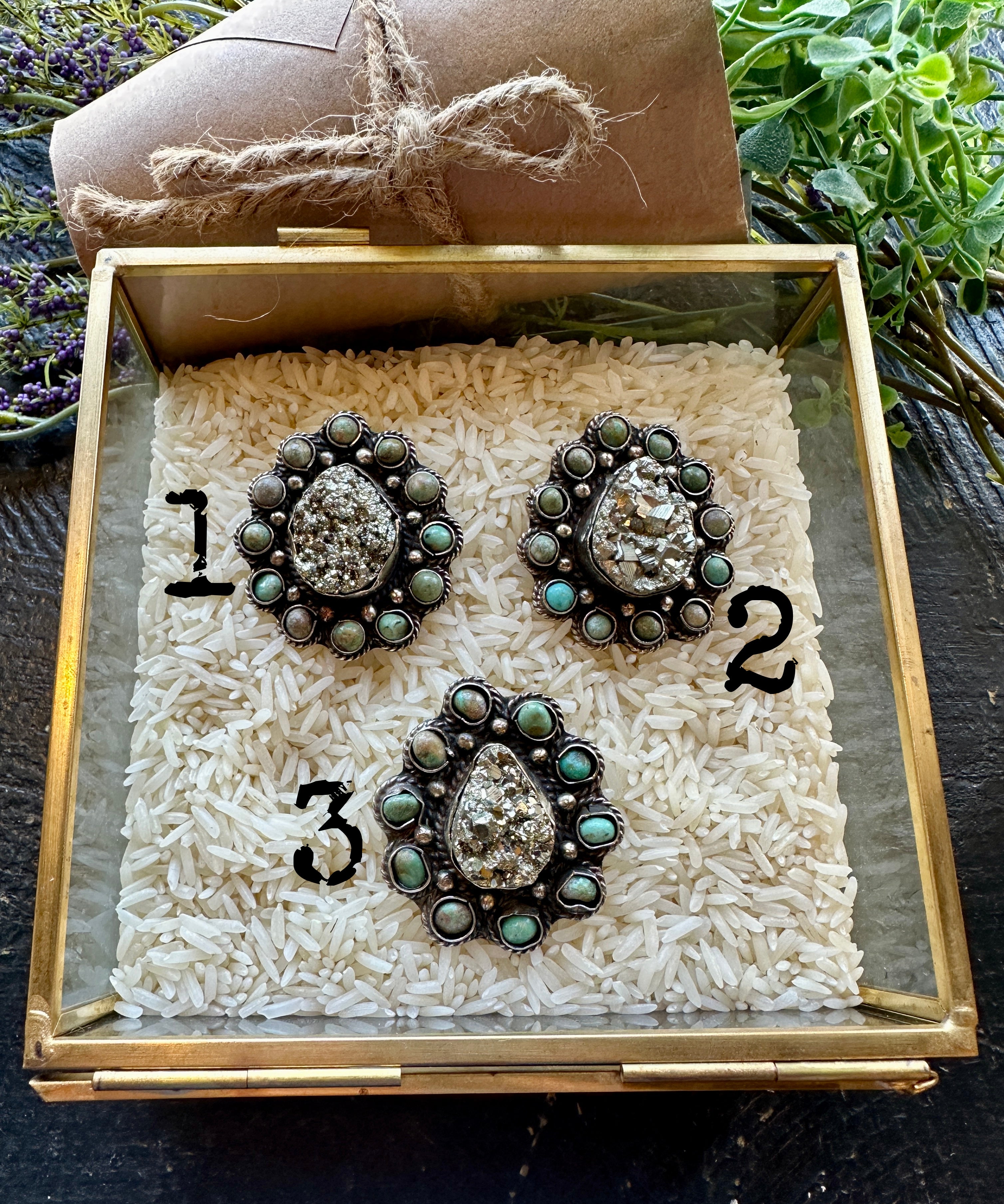 This Pyrite and Turquoise Tibetan Ring features a genuine Pyrite stone surrounded by African Turquoise, adjustable size, and crafted beautifully.