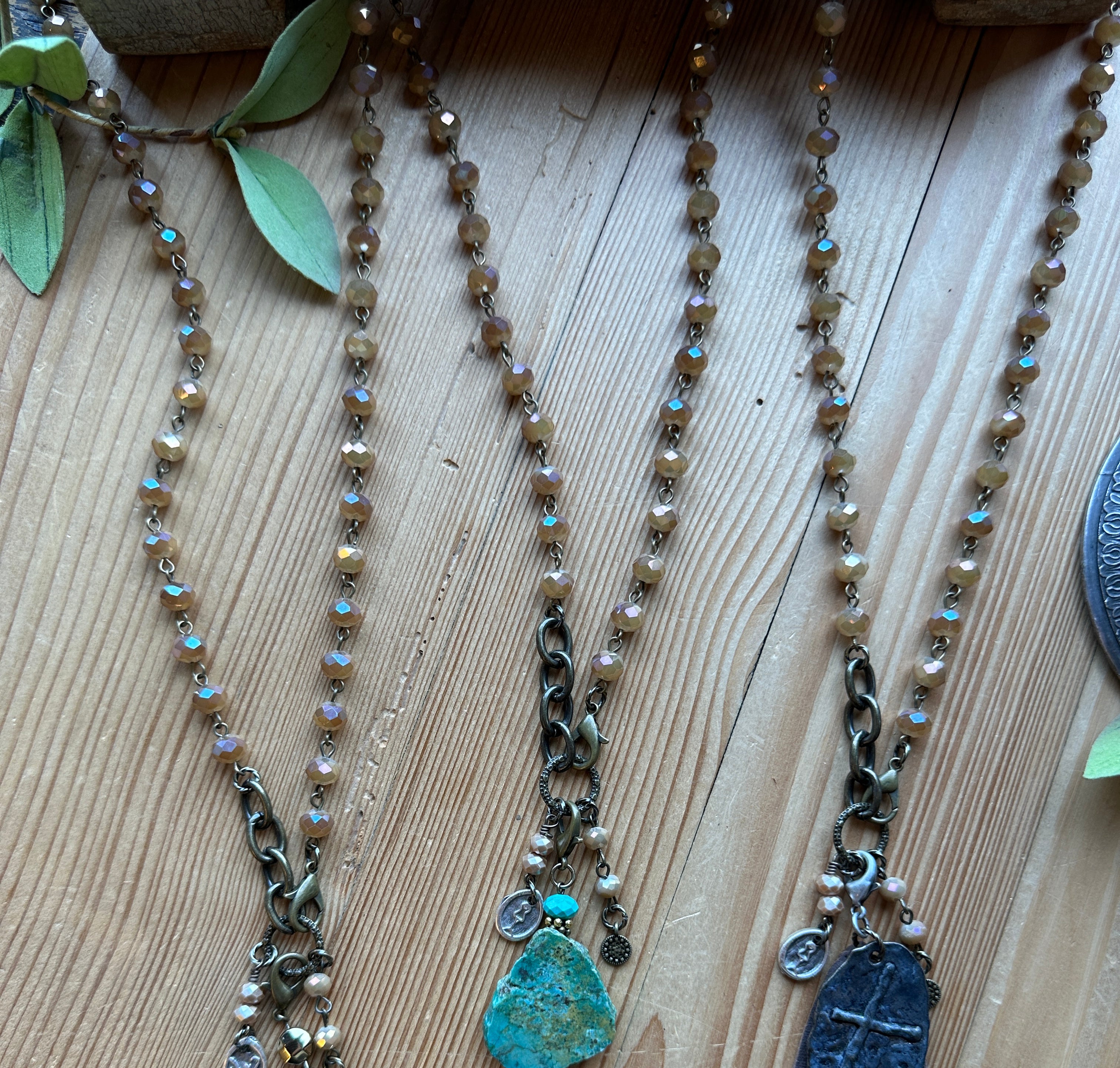 My Iowan country roots and urban soul combine to create one-of-a-kind handmade jewelry I began designing jewelry using gemstones, leather, chain and other natural materials over 20 years ago and it's still a huge part of my jewelry inspiration.