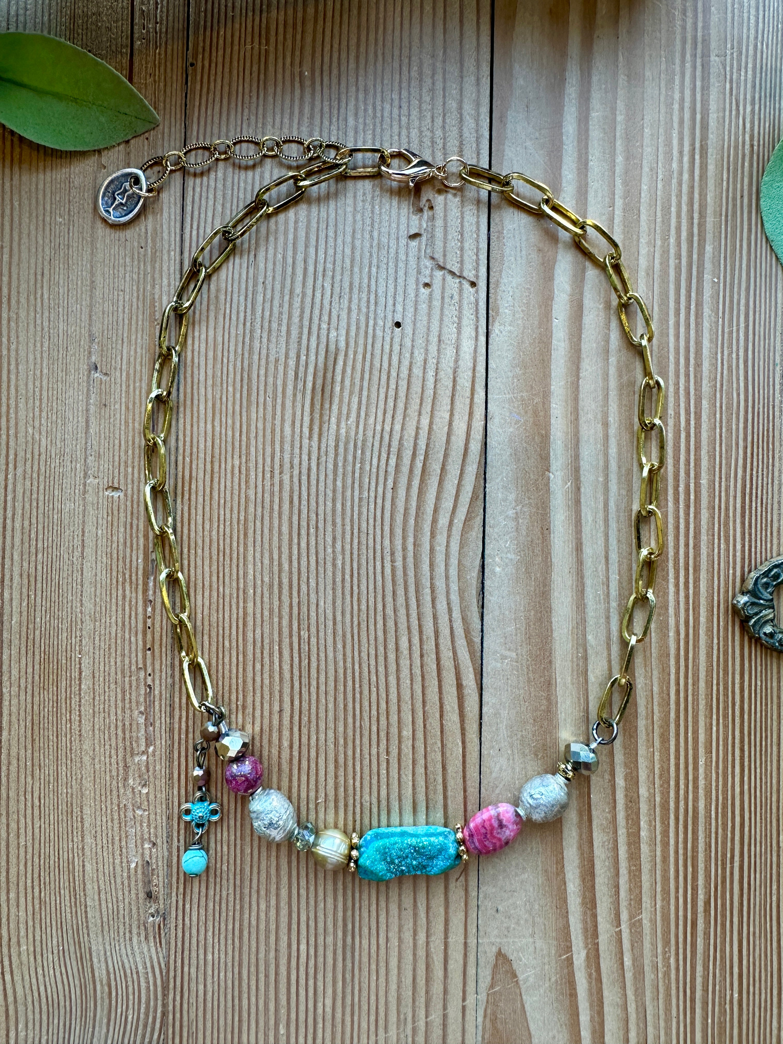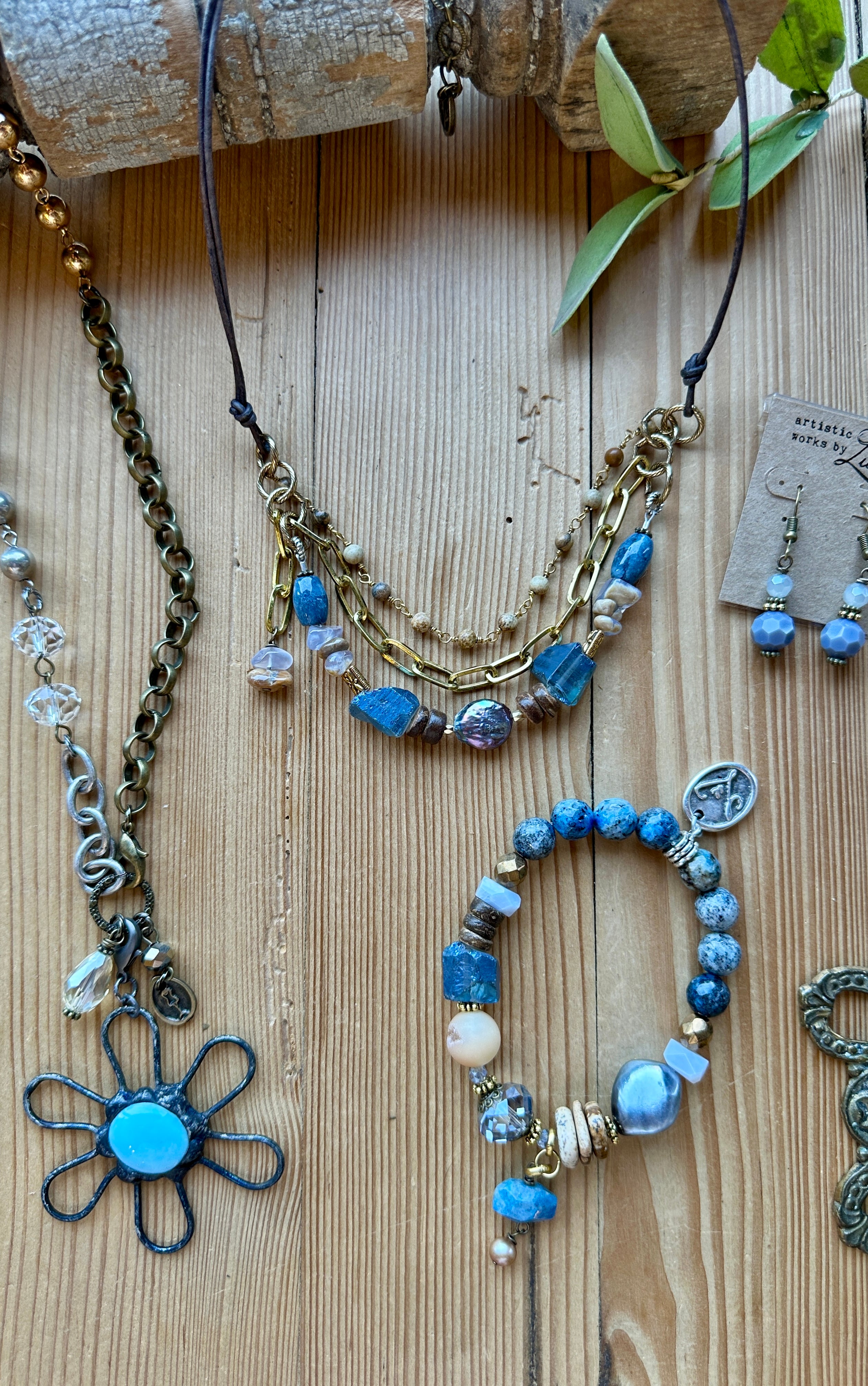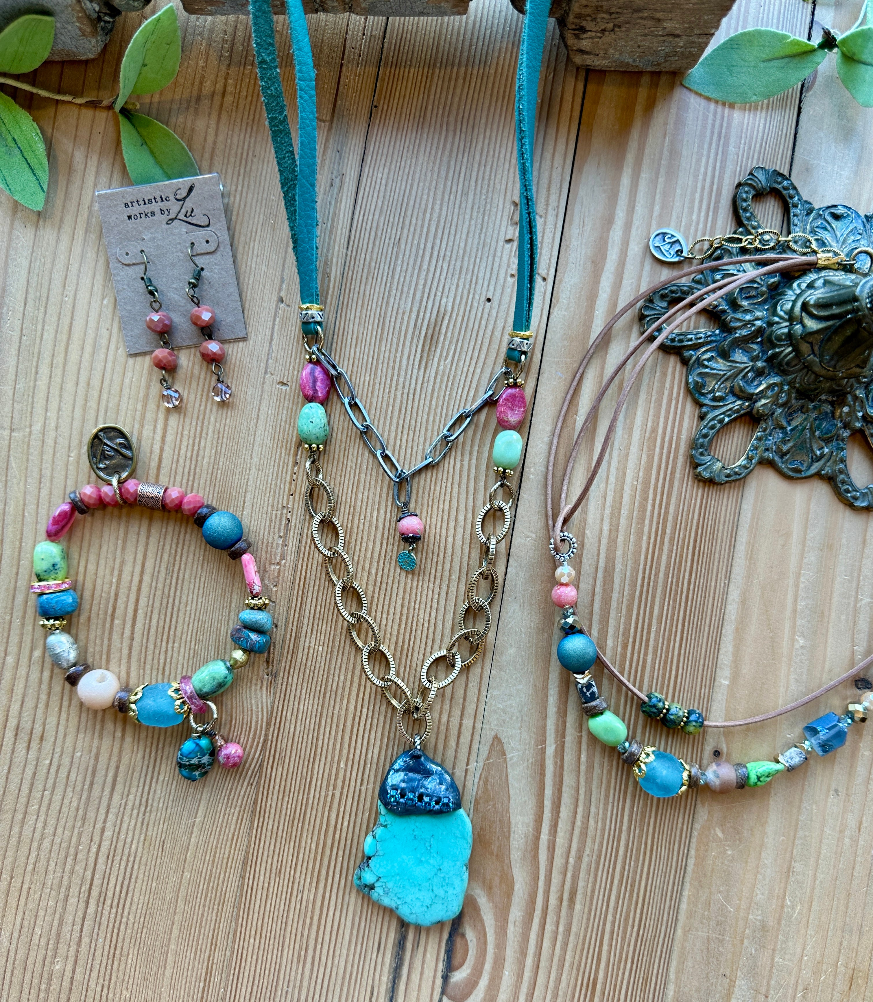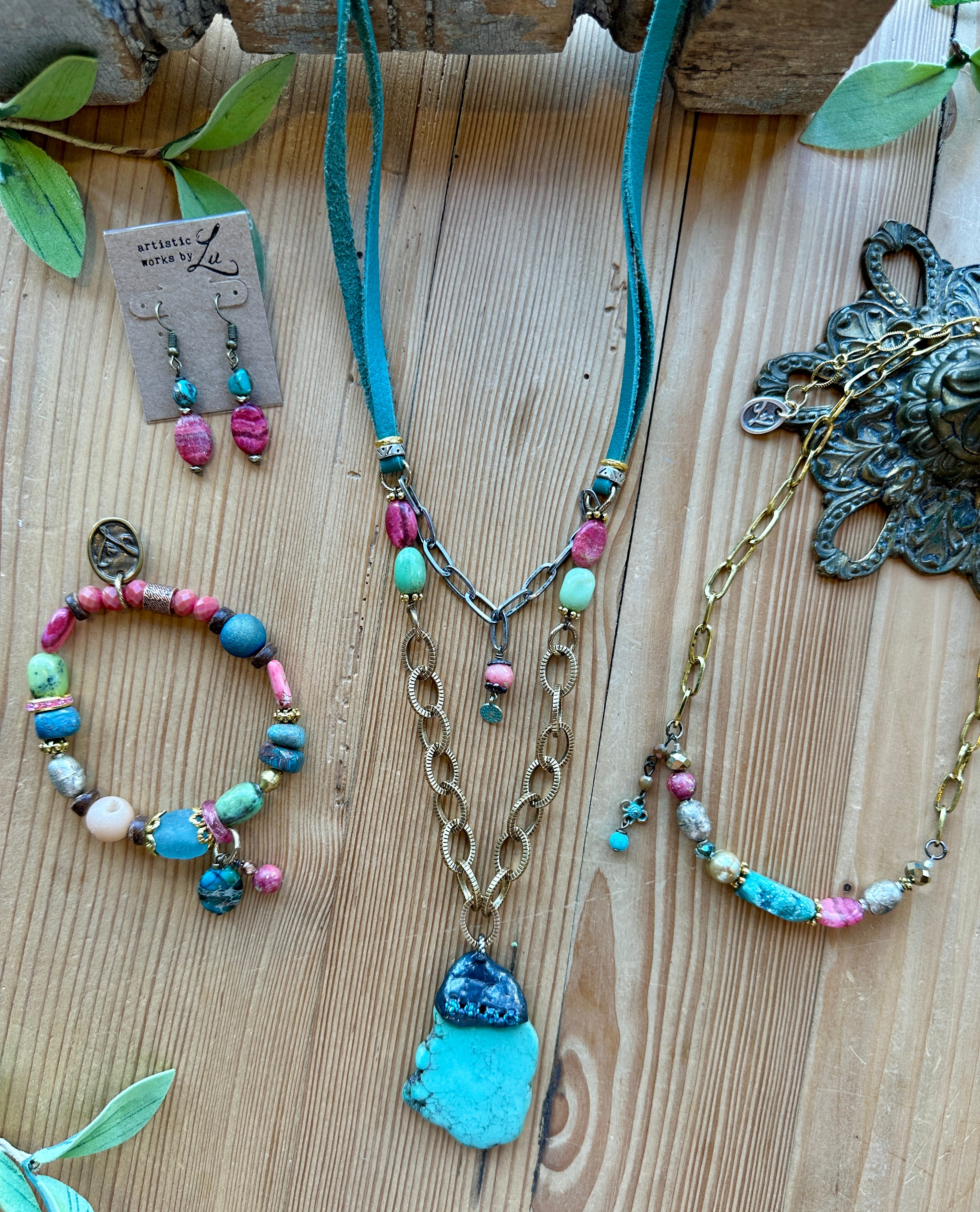 My Iowan country roots and urban soul combine to create one-of-a-kind handmade jewelry I began designing jewelry using gemstones, leather, chain and other natural materials over 20 years ago and it's still a huge part of my jewelry inspiration.