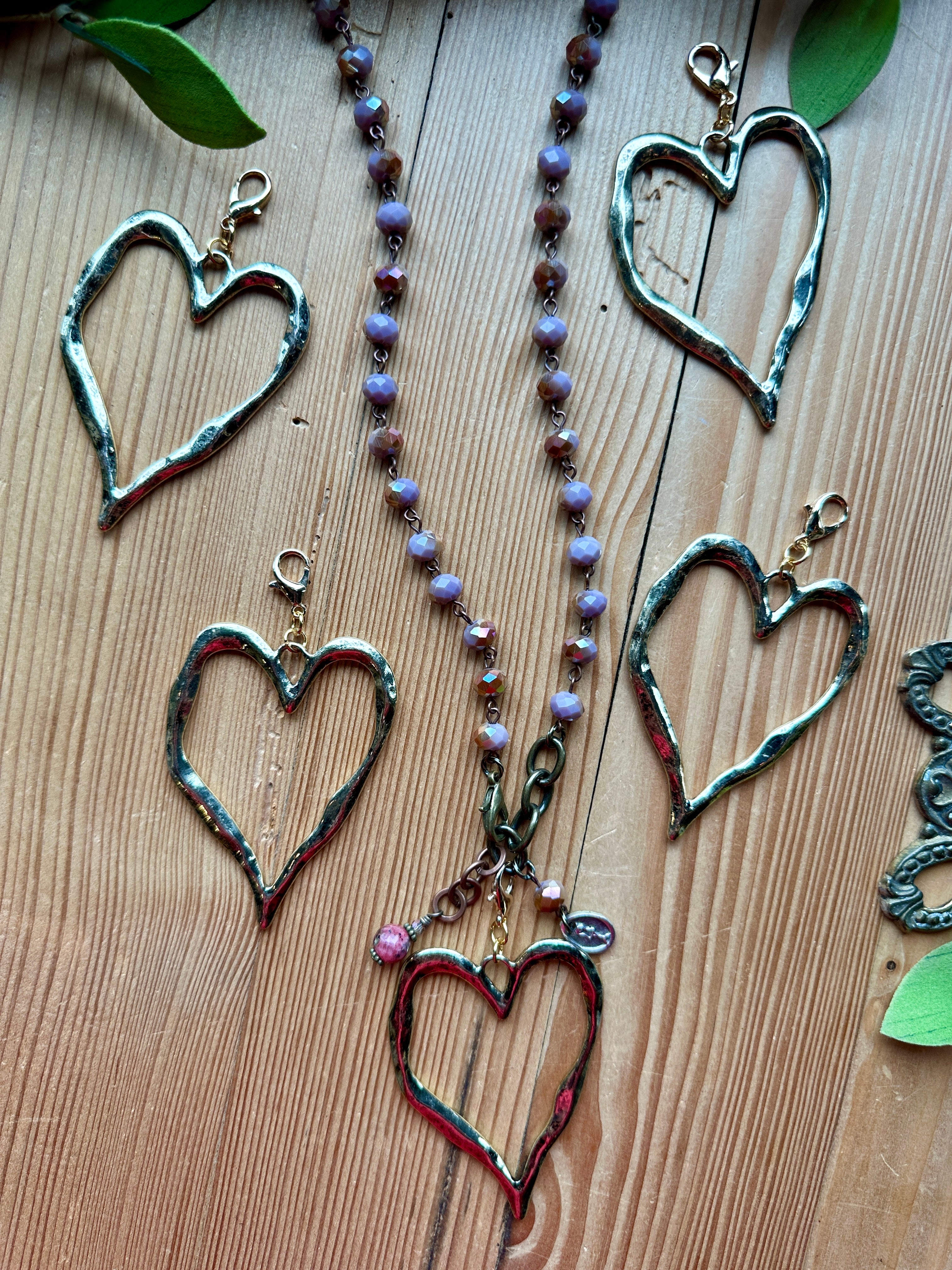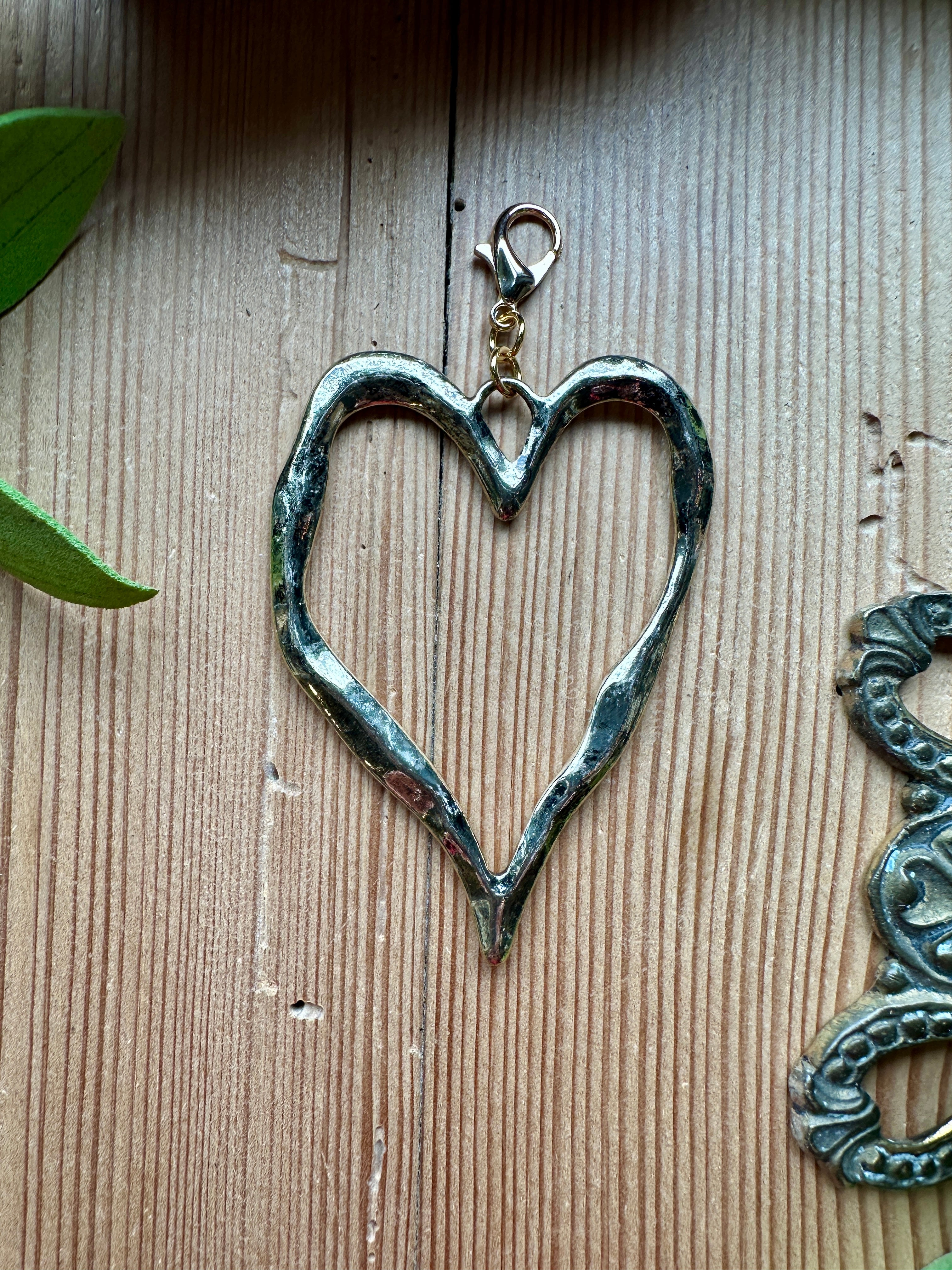 Celebrate love with bold, effortless style with this Hammered Gold Open Heart Pendant. Featuring a beautifully textured open-heart silhouette, this pendant adds the perfect touch of shine and charm to any outfit. Clip it onto your favorite Lu designed necklace or interchangeable chain for an instant statement look.
